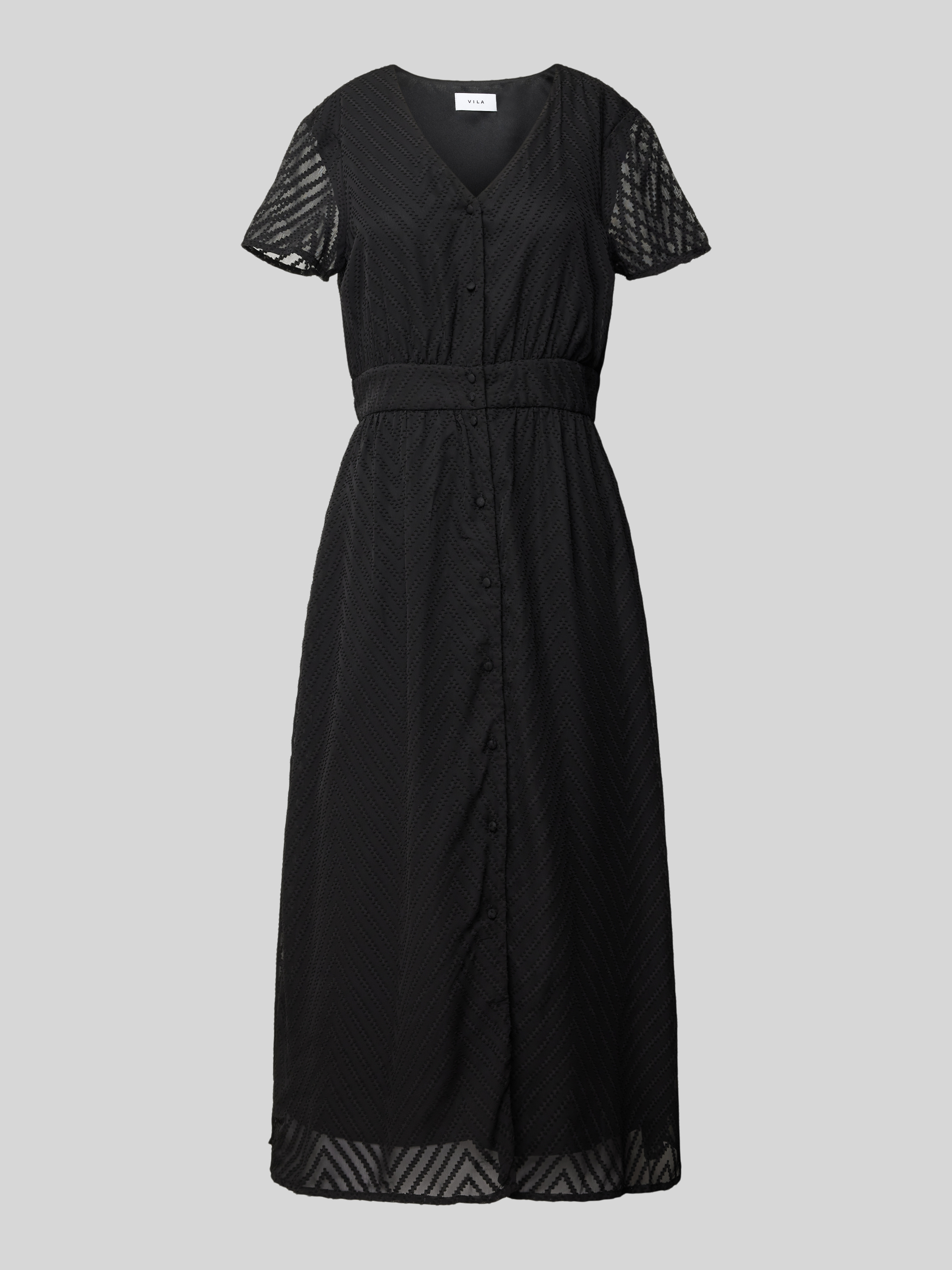 Das Damen Midikleid von VILA, Modell 'MICHELLE', beeindruckt mit seiner leichten A-Linie und einem stilvollen Double-Layer-Look. Der V-Ausschnitt verleiht dem Kleid eine elegante Note, während die durchgehende Knopfleiste praktische Details bietet. Dieses Kleid eignet sich ideal für vielfältige Anlässe.