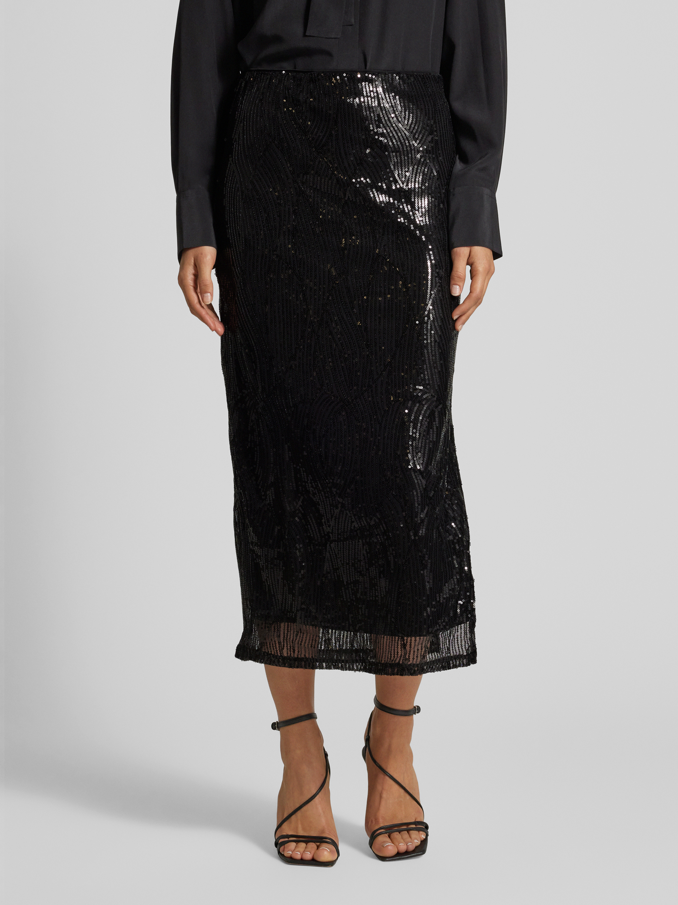 Der Midirock 'ZIKKI' von VILA kombiniert einen geraden Schnitt mit einem auffälligen Paillettenbesatz, der jedem Outfit einen Hauch von Eleganz verleiht. Der Material-Mix mit Stretch-Anteil sorgt für angenehme Bewegungsfreiheit. Ein stilvoller Begleiter für besondere Anlässe und alltägliche Eleganz.