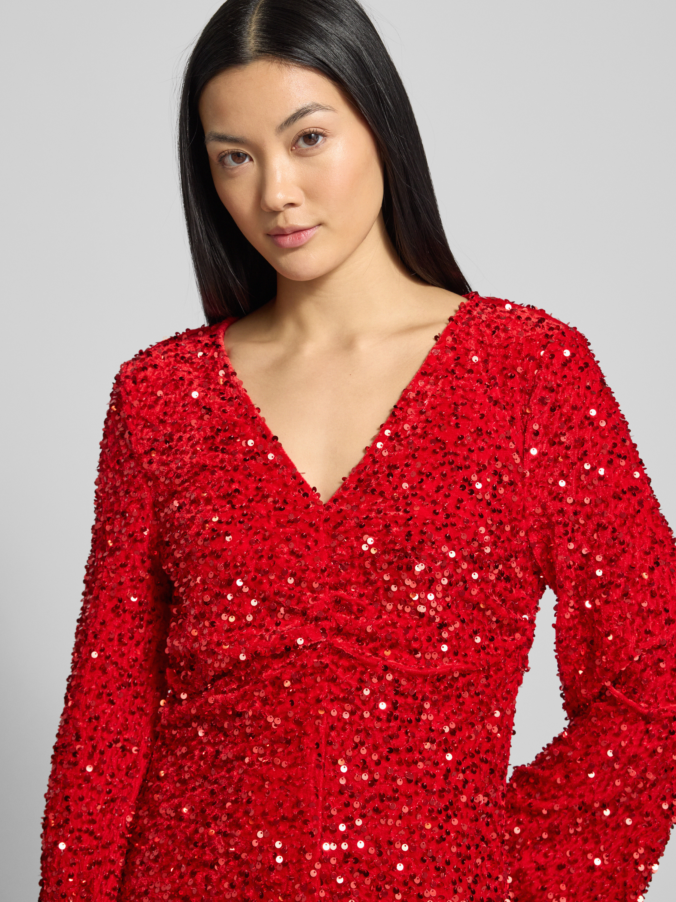 Das Damen Minikleid von Vila, Modell 'BARINA', fällt durch seine A-Linie locker und sorgt so für angenehme Bewegungsfreiheit im Alltag oder bei besonderen Anlässen. Pailletten verleihen dem Stoff eine dezente Struktur, während der V-Ausschnitt das Gesamtbild auflockert. Durch die langen Ärmel entsteht eine ausgewogene Silhouette, die sich vielseitig kombinieren lässt.