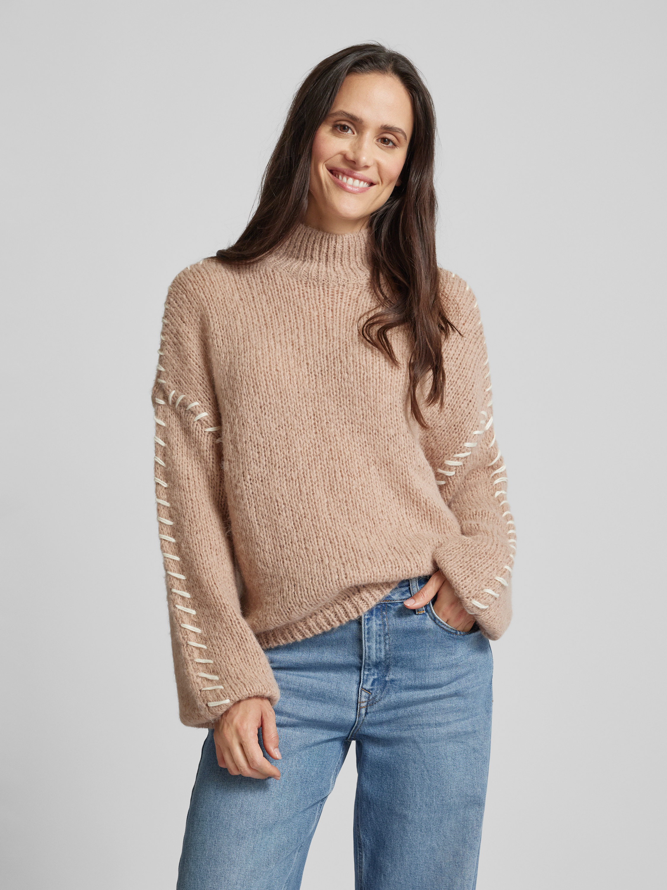Der Strickpullover Modell 'CHOCA' von VILA besticht durch seinen geraden Schnitt und den hochwertigen Material-Mix mit Lanawoll-Anteil, der für angenehme Wärme sorgt. Gerippte Abschlüsse und Kontrastnähte verleihen dem Design eine dezente Struktur. Der Stehkragen ergänzt den Look auf stilvolle Weise.