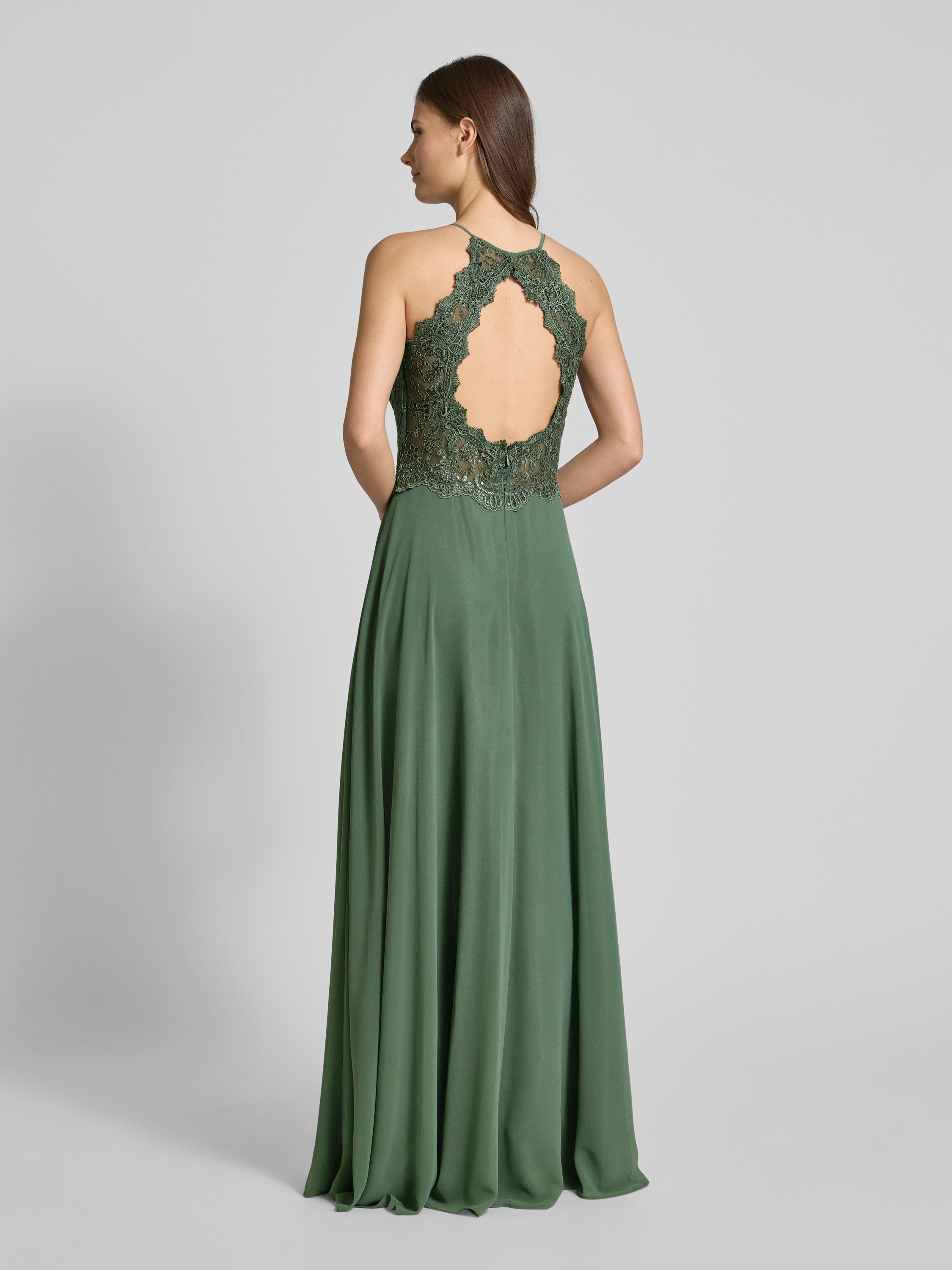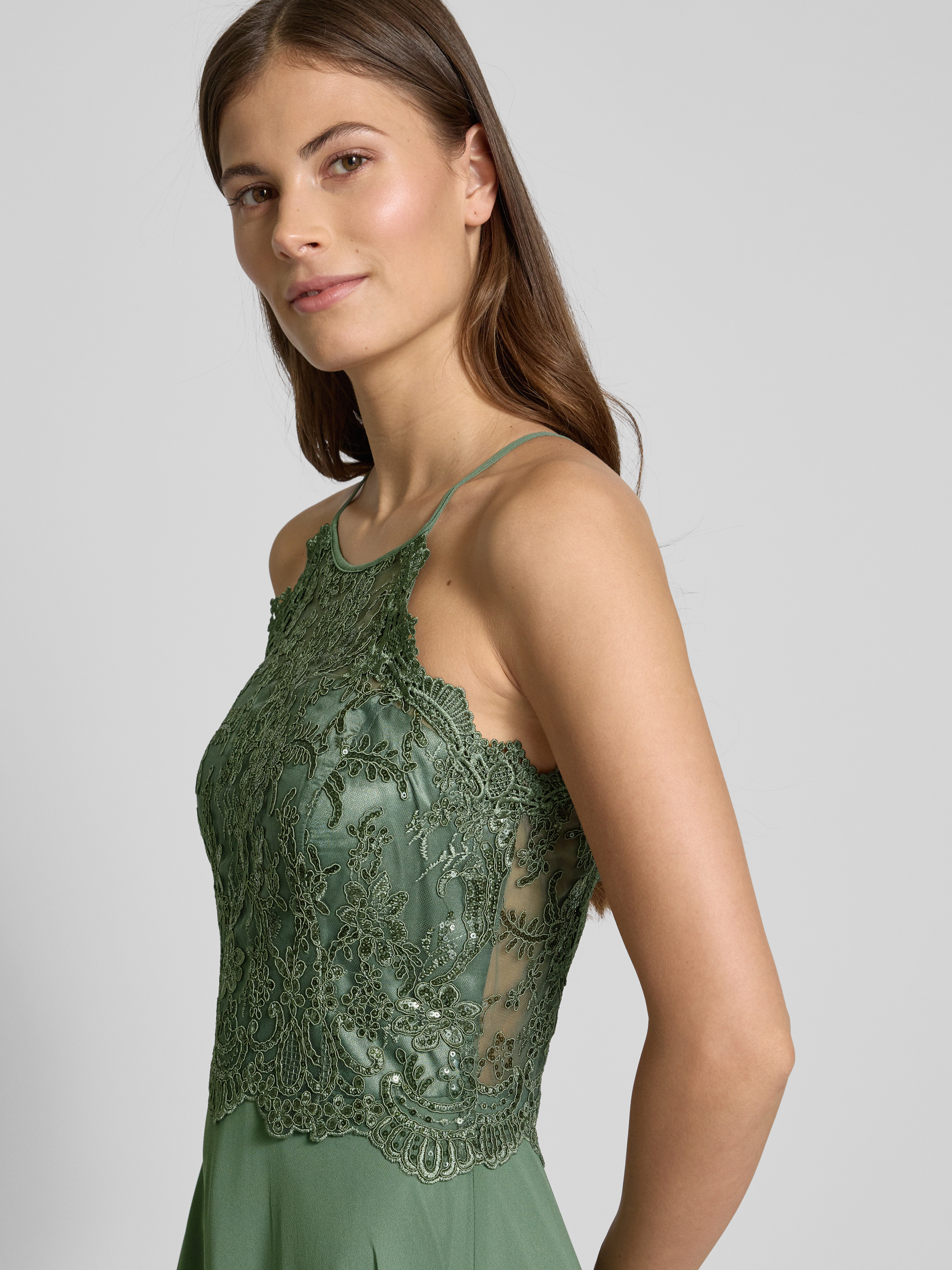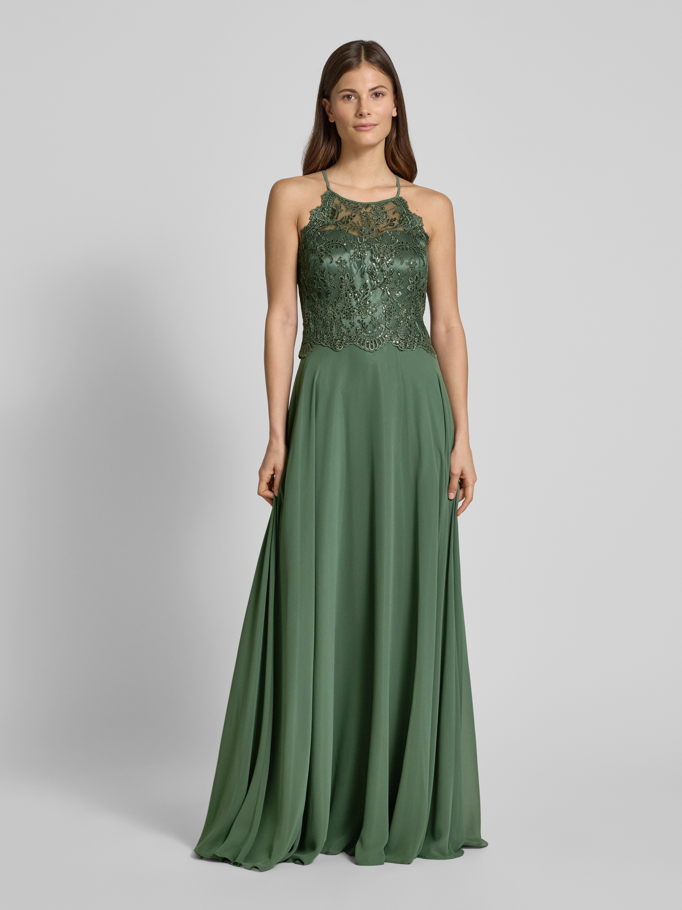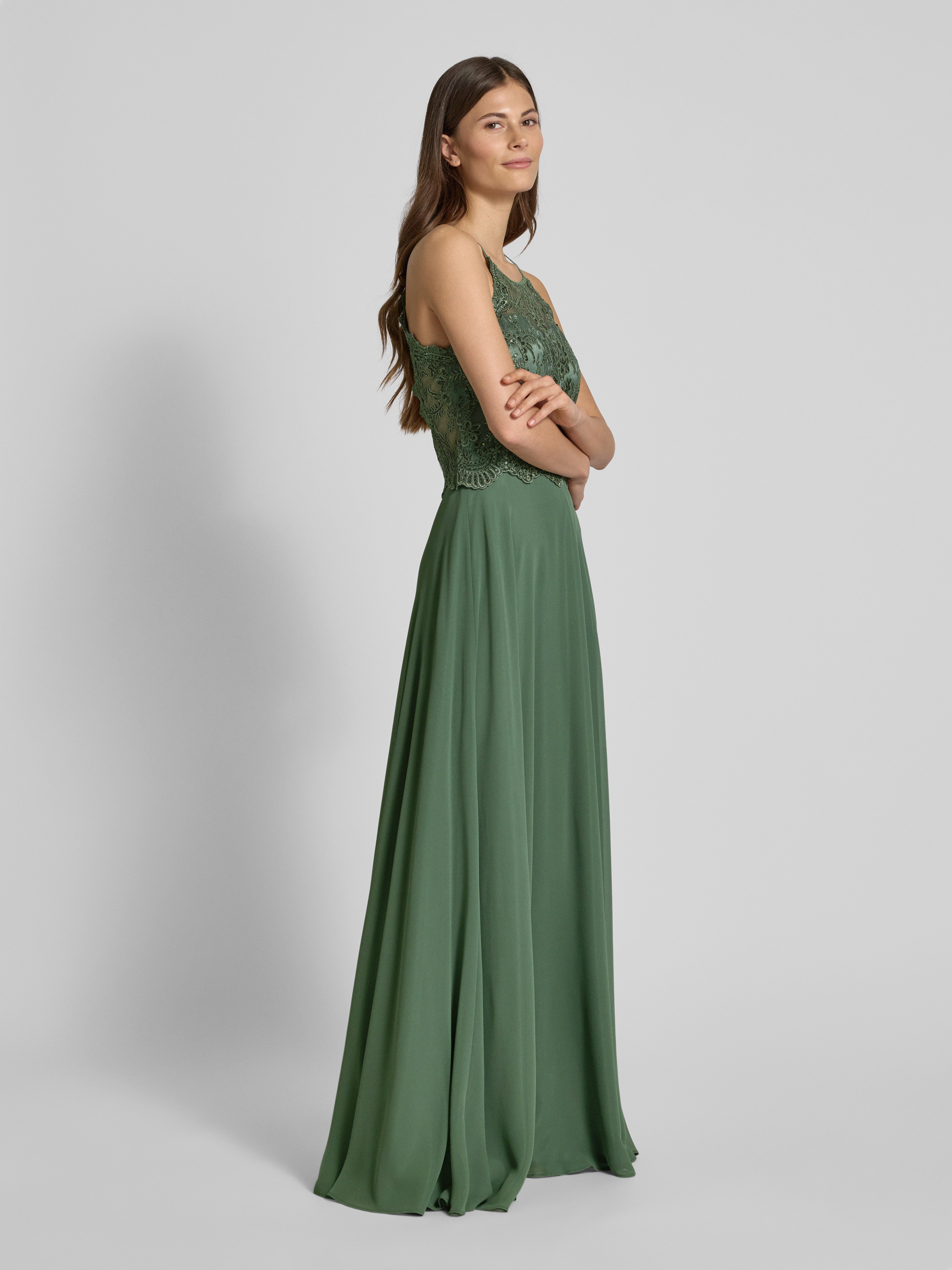 V.M.Abendkleid mit Spitzen- und Paillettenbesatz in gruen