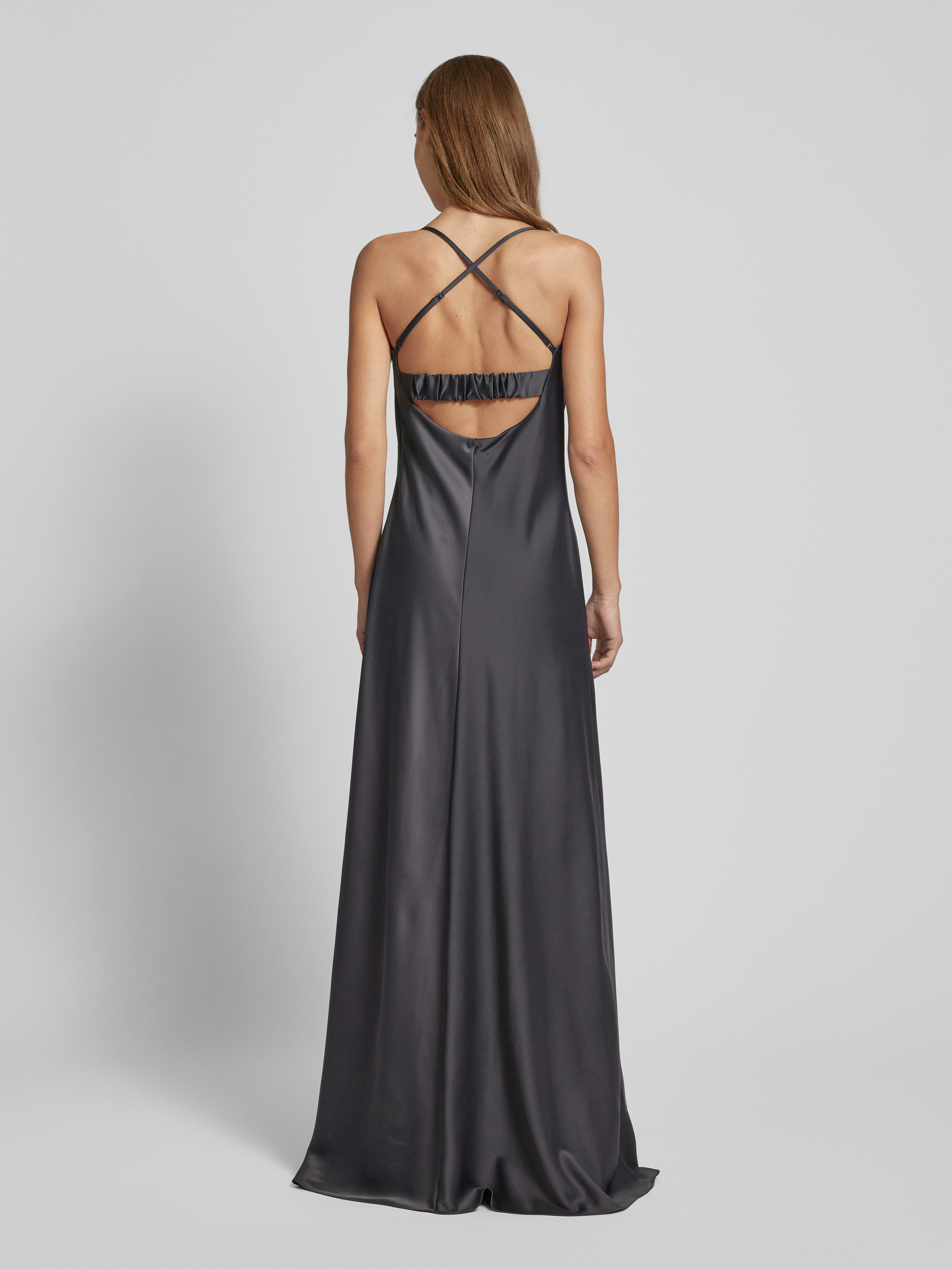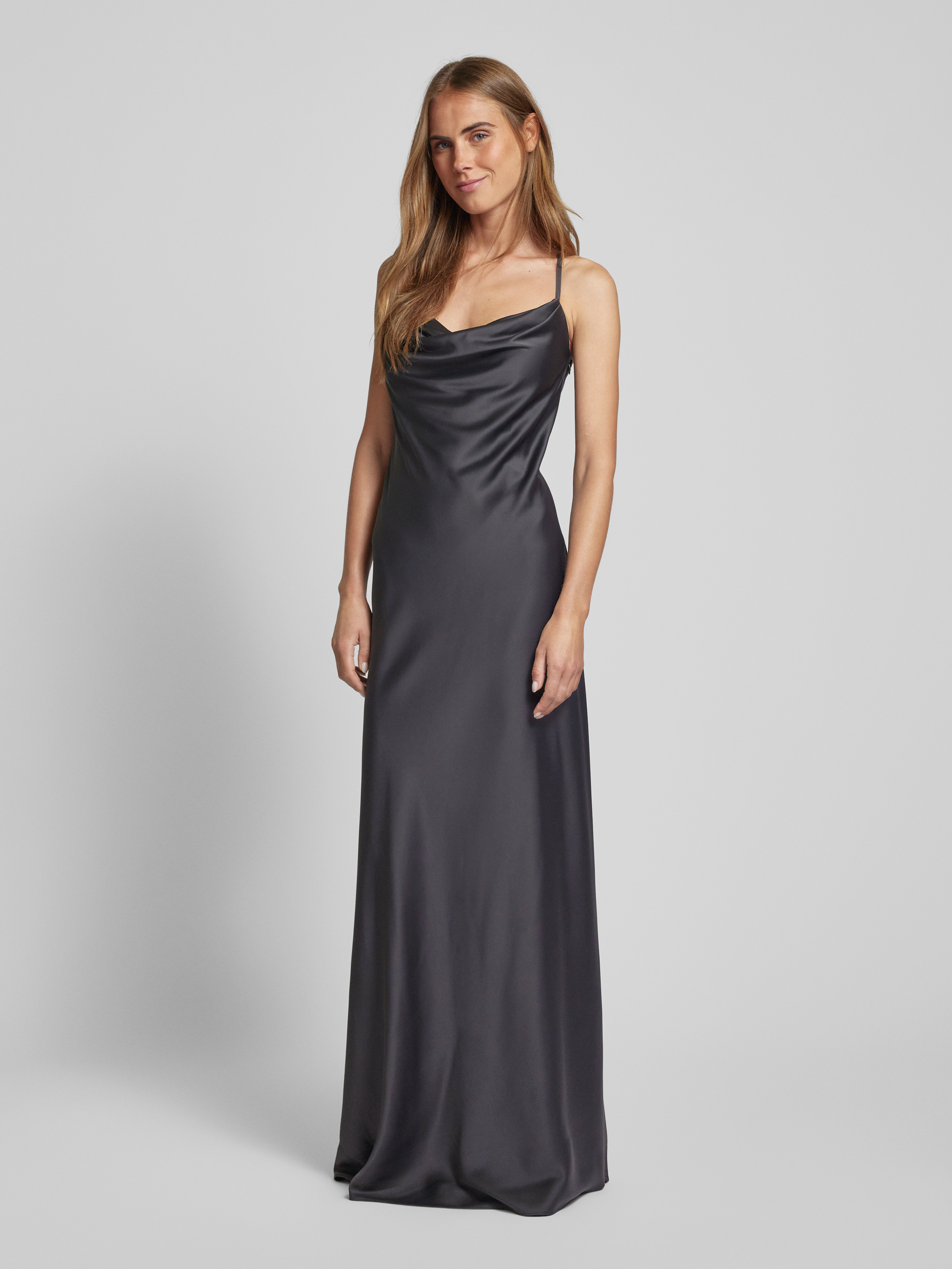 V.M.Abendkleid mit Wasserfall-Ausschnitt in anthrazit