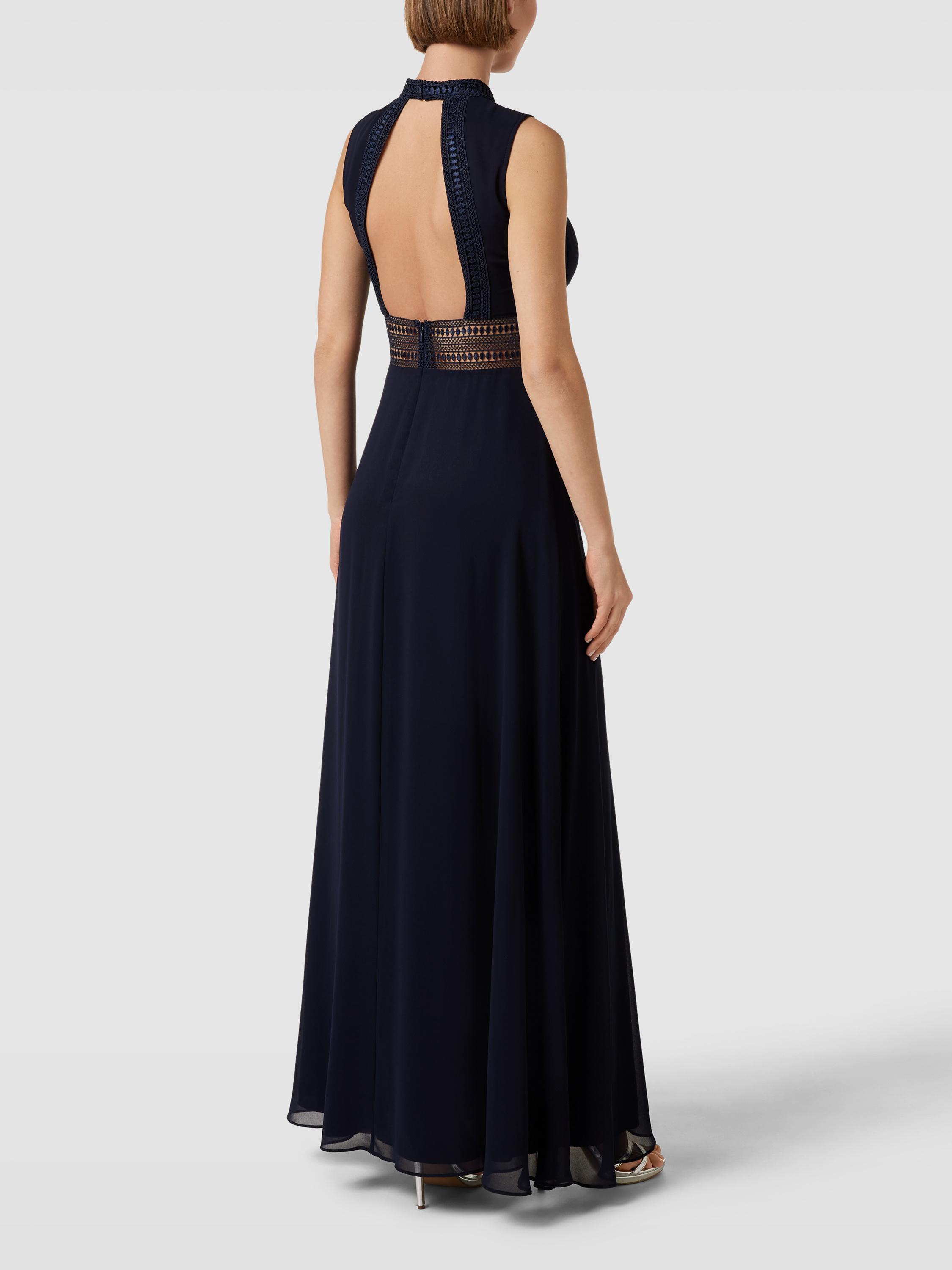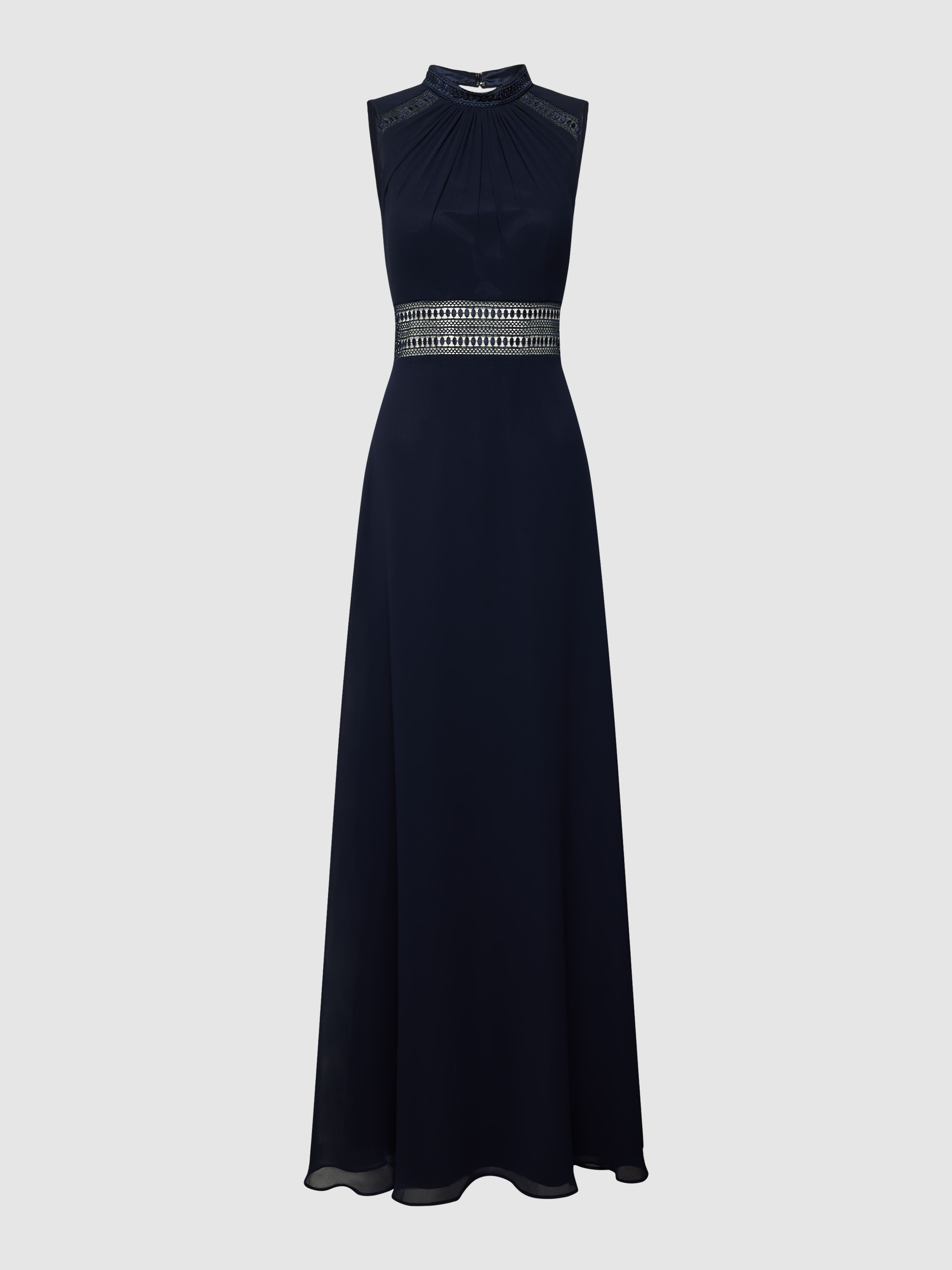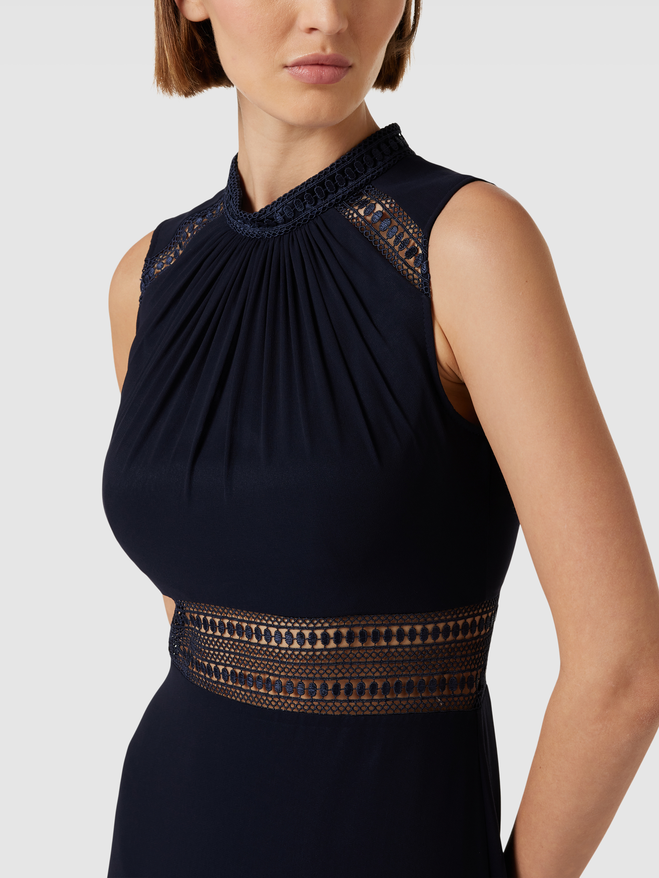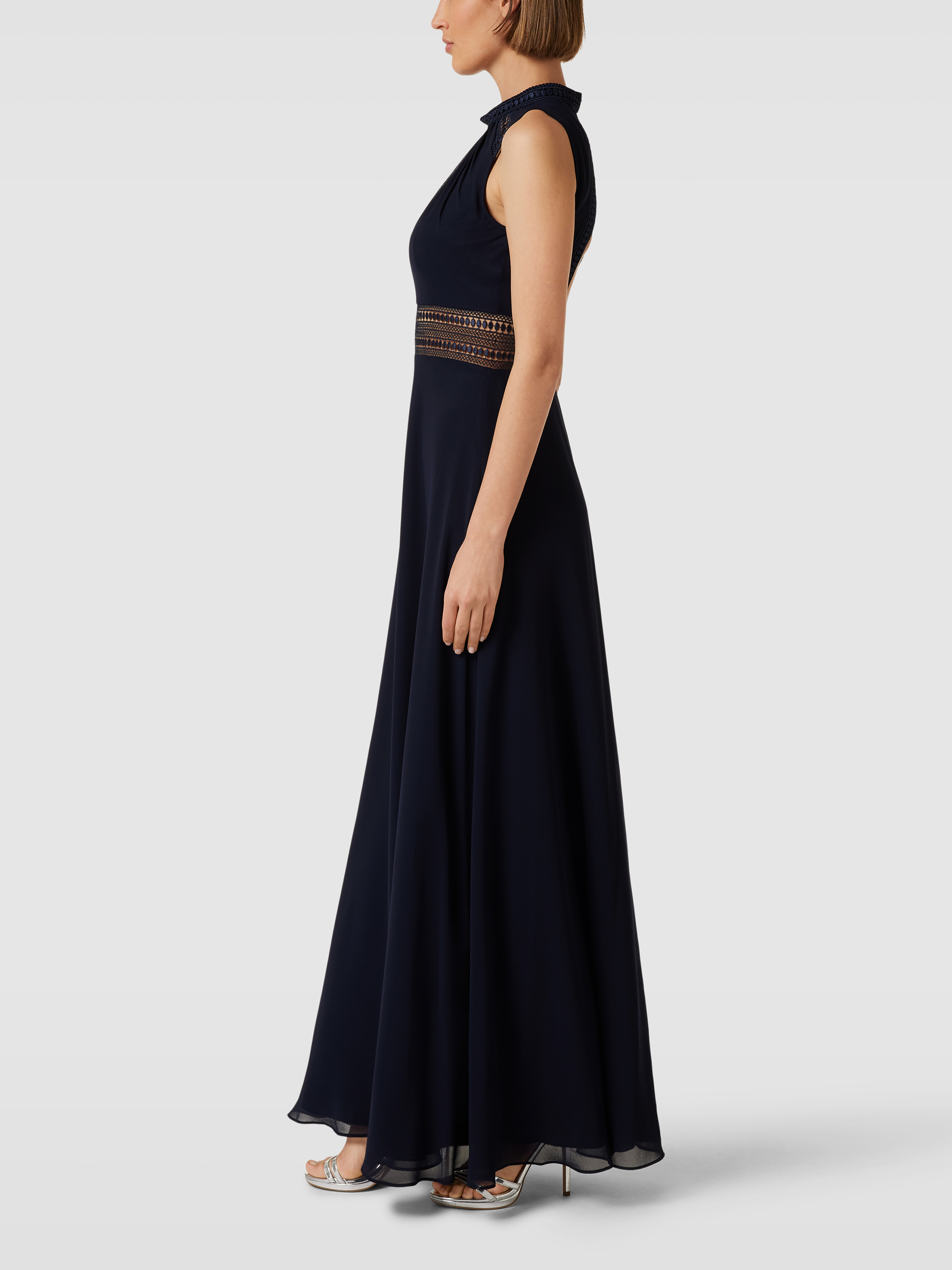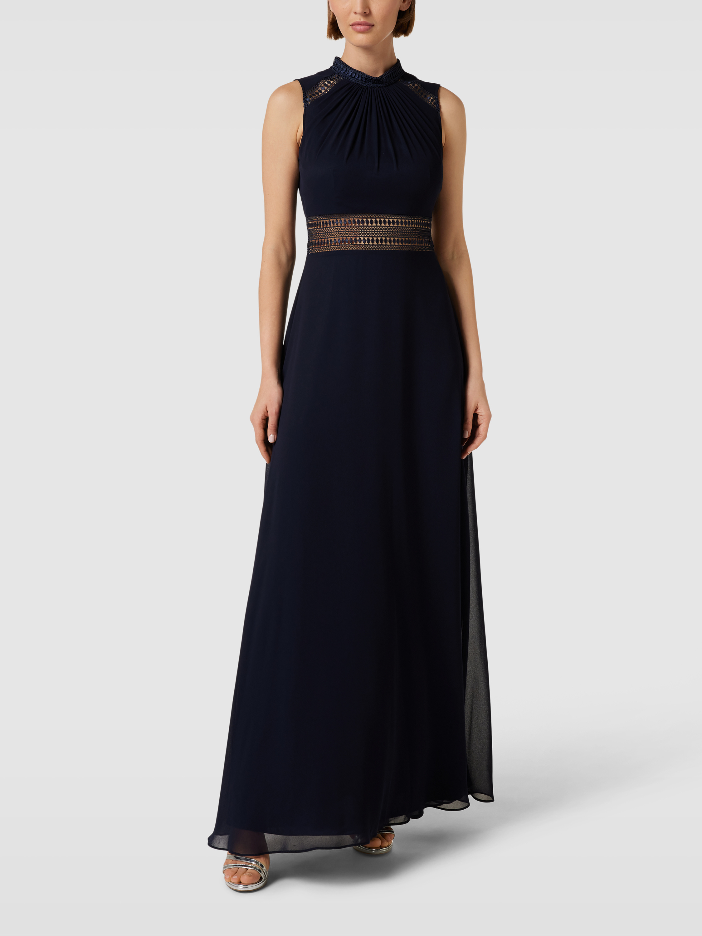 Das Damenkleid von VM Vera Mont fällt durch seine taillierte Passform und die feinen Stickereien am Stehkragen sowie am semitransparenten Bund ins Auge. Dank ärmellosem Schnitt und raffinierten Raffungen wirkt der Look modern und gleichzeitig elegant. Wattierte Cups und ein Unterrock sorgen für angenehmen Tragekomfort.
