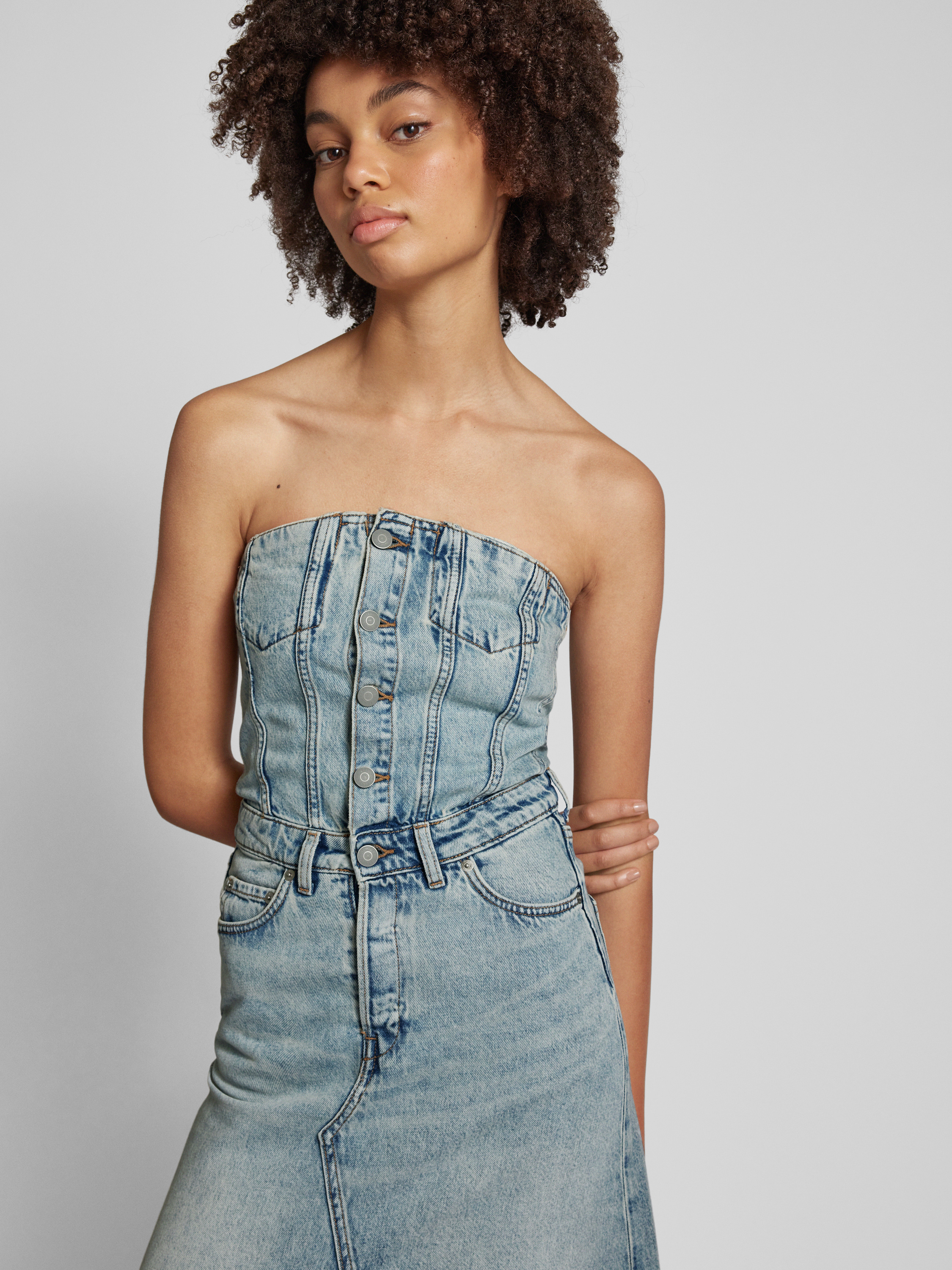 WEEKDAYKleid mit Knopfleiste Modell 'Scottsdale' in jeansblau