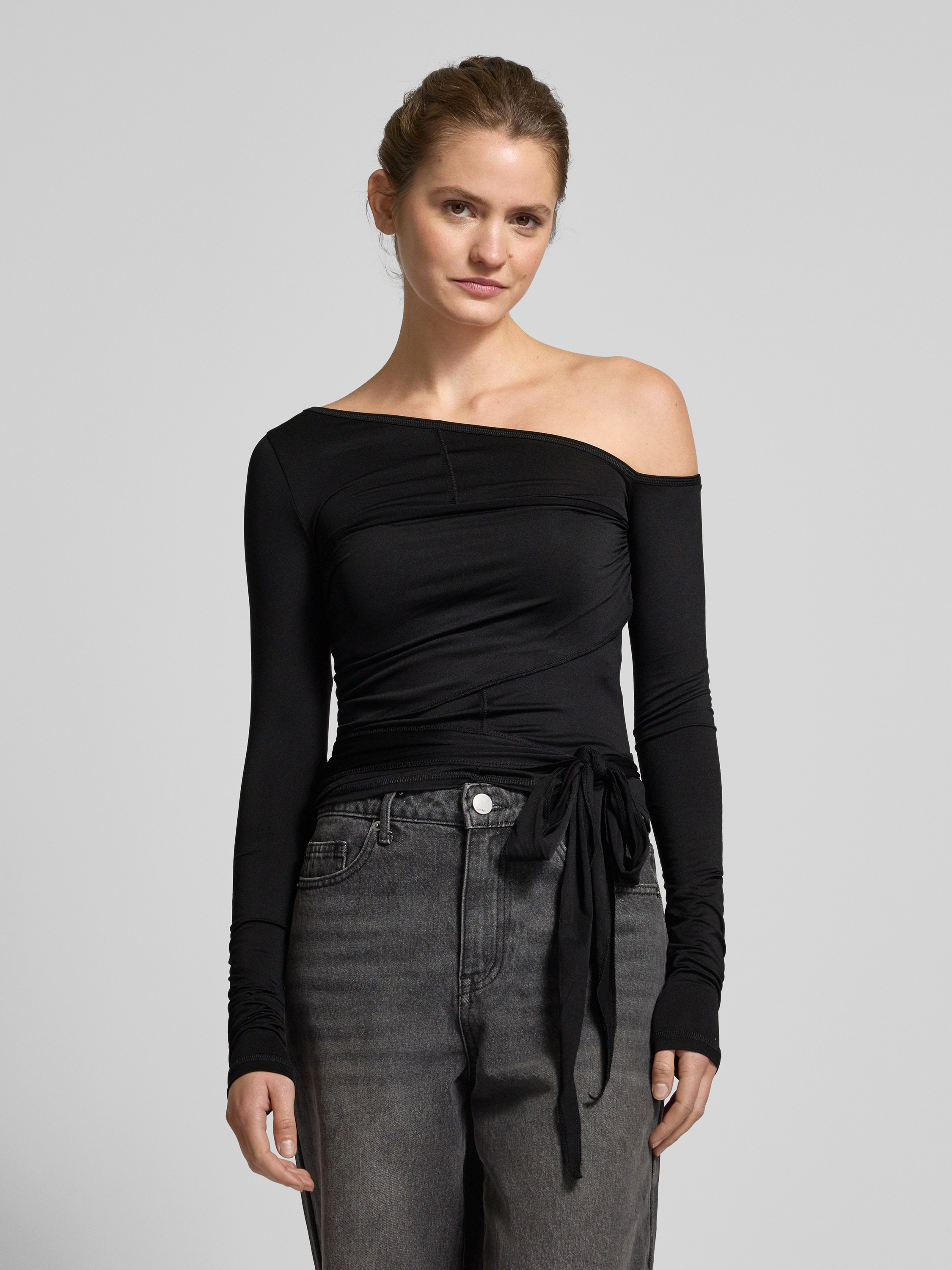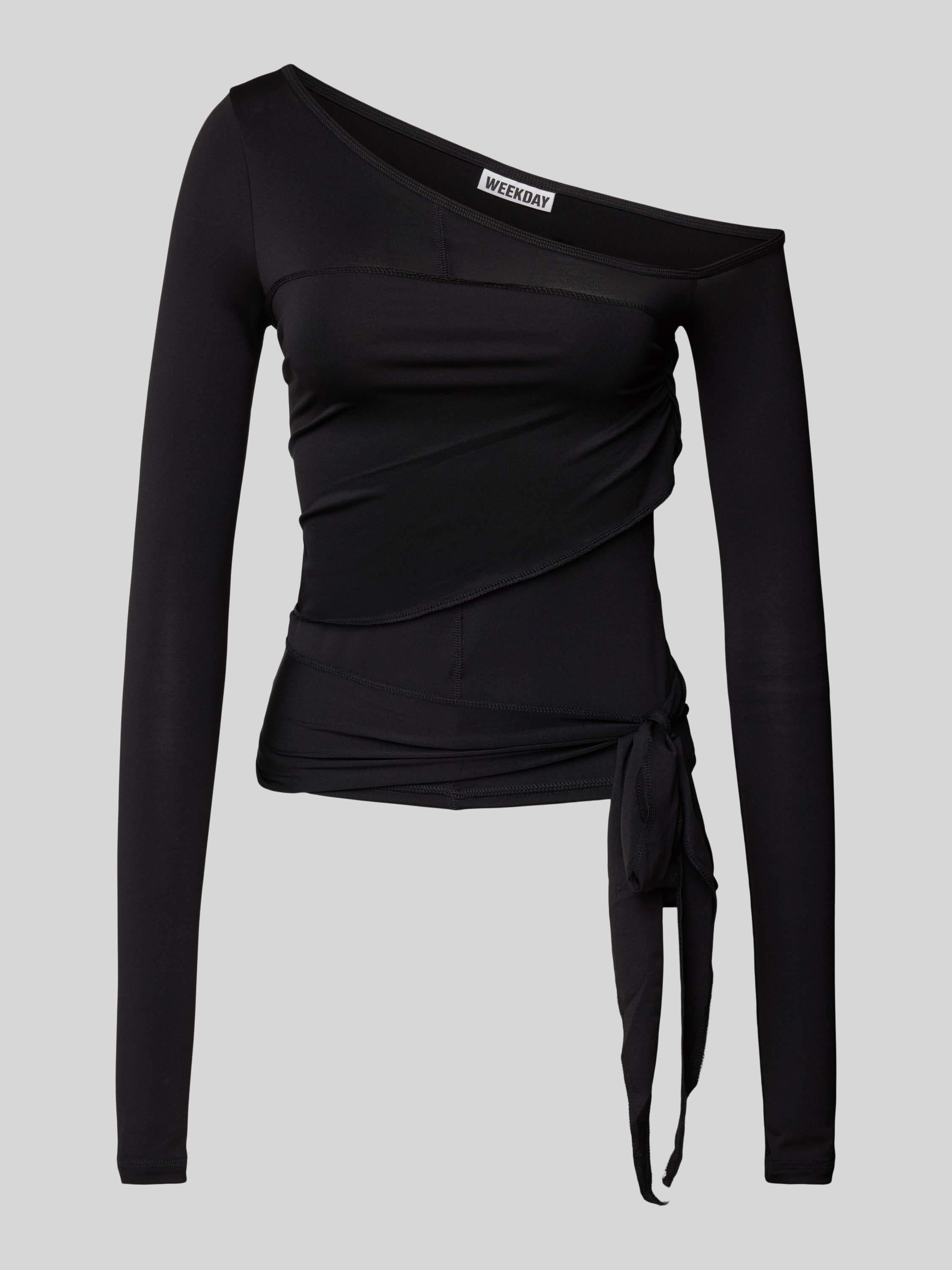 Das Longsleeve von Weekday kombiniert einen geschmeidigen Material-Mix mit einem raffinierten Schleifen-Detail und einem eleganten One-Shoulder-Träger. Der eng anliegende Schnitt betont die Figur und sorgt für eine stilvolle Silhouette. Mit Stretch-Anteil bietet es Bewegungsfreiheit und hohen Tragekomfort.
