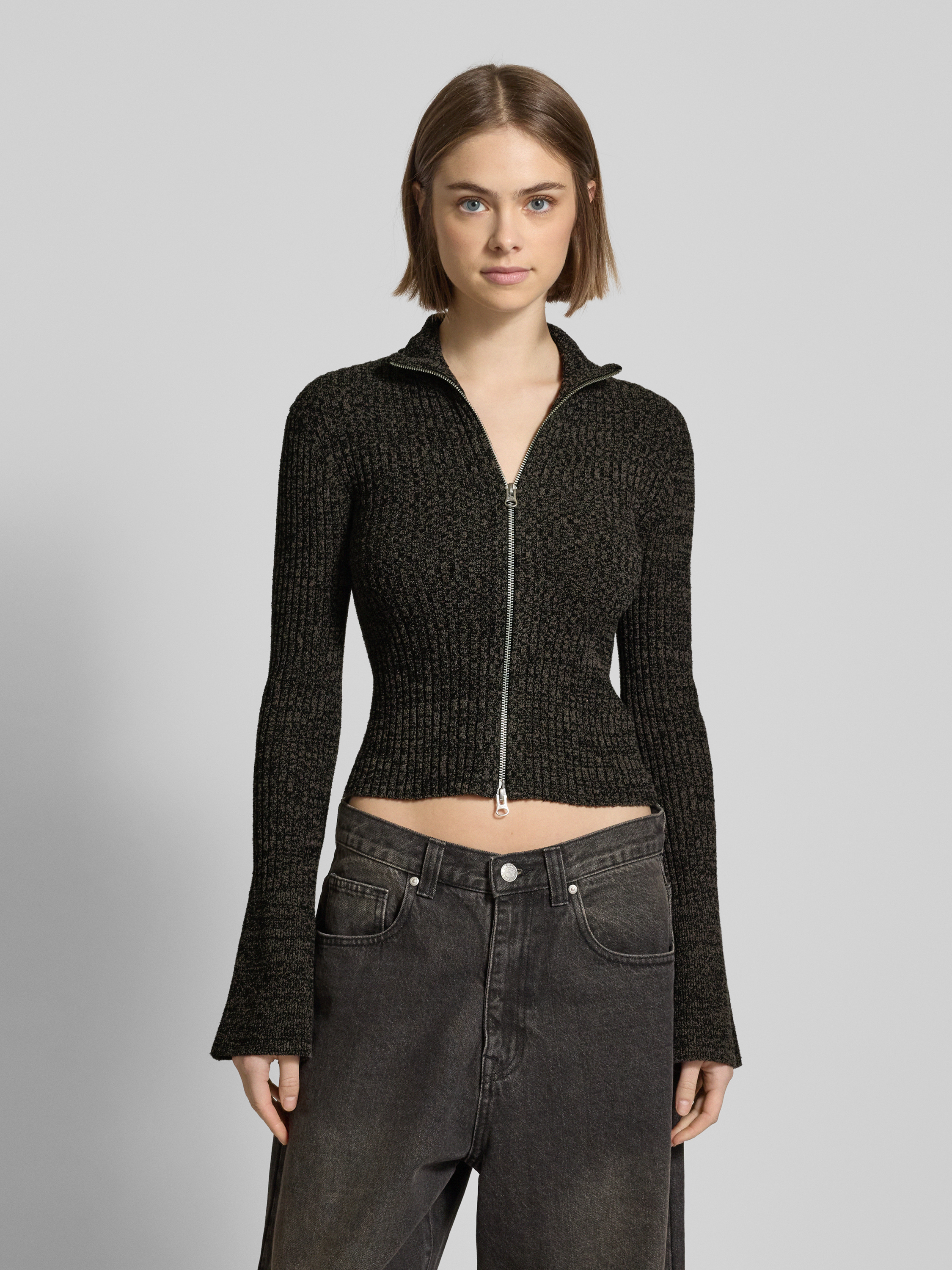 Die Strickjacke von Weekday kombiniert einen Baumwoll-Mix mit einem Hauch von Stretch für angenehmen Tragekomfort. Der gerade Schnitt und die Glockenärmel sorgen für eine ansprechende Silhouette, während der Stehkragen dezent Akzente setzt. Ein vielseitiges Kleidungsstück für verschiedenste Gelegenheiten.