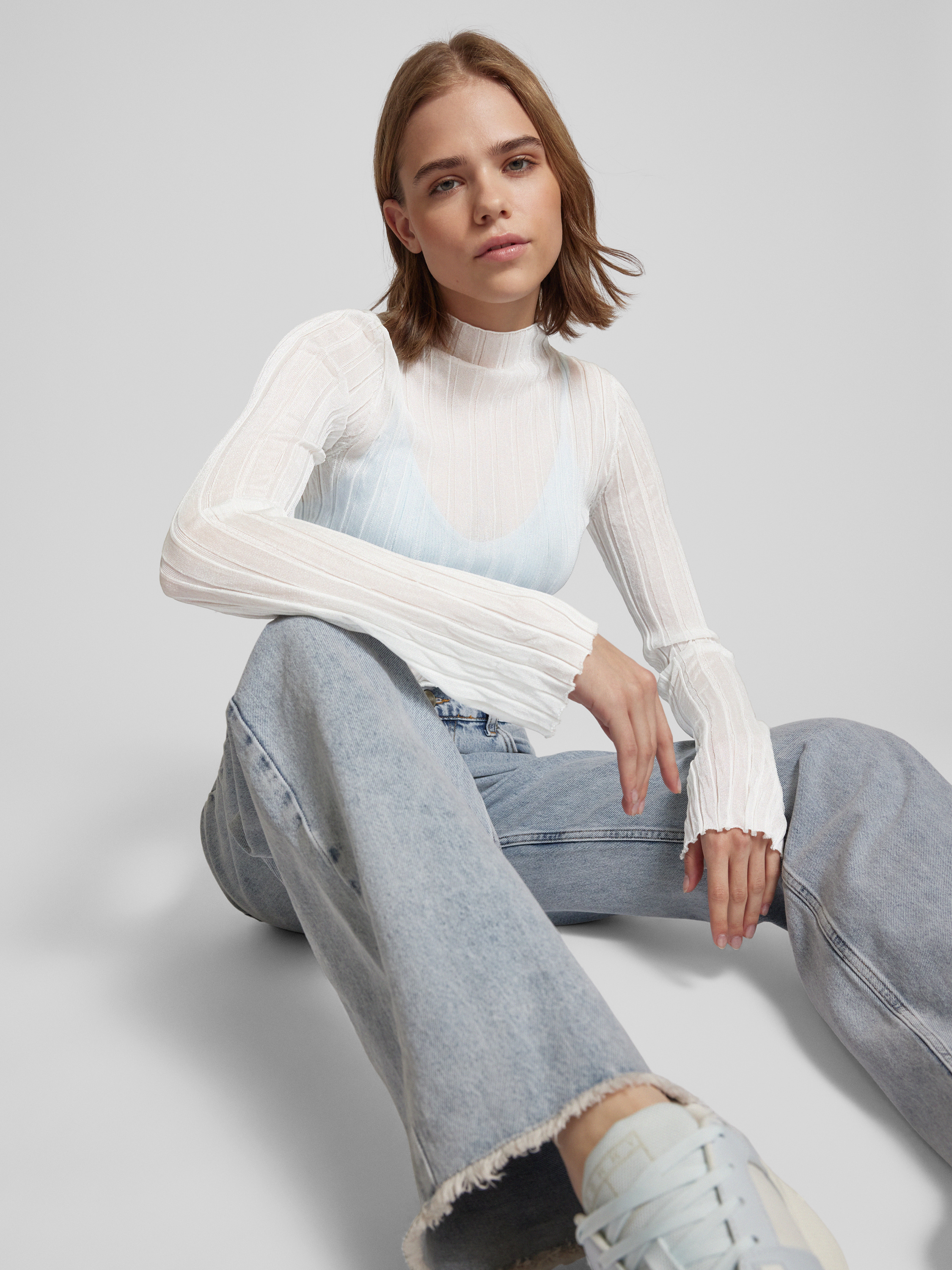 WEEKDAYStrickpullover mit Stehkragen Modell 'Mary' in weiss