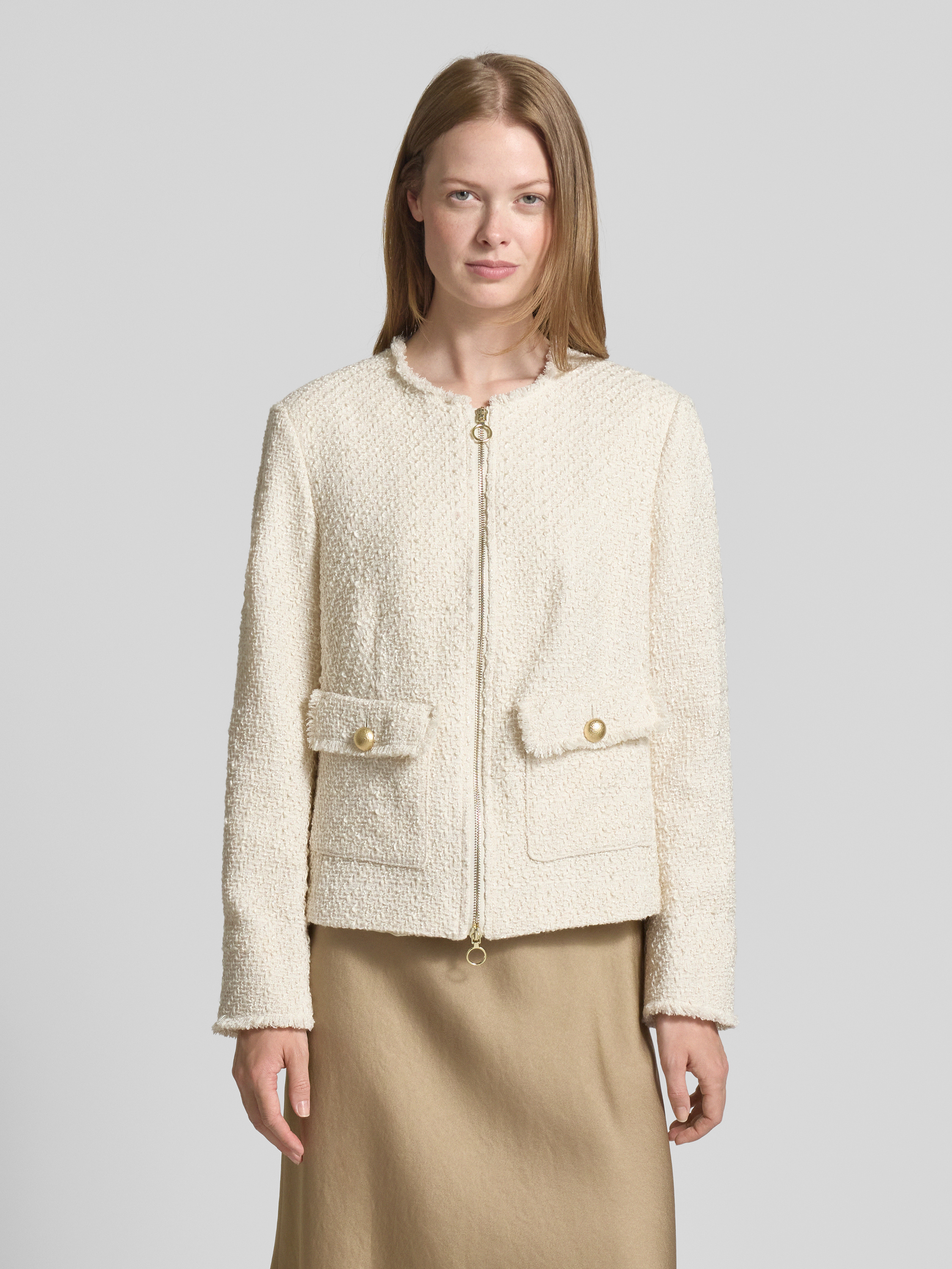 WHITE LABELBlazer in Bouclé-Optik mit Rundhalsausschnitt in ecru