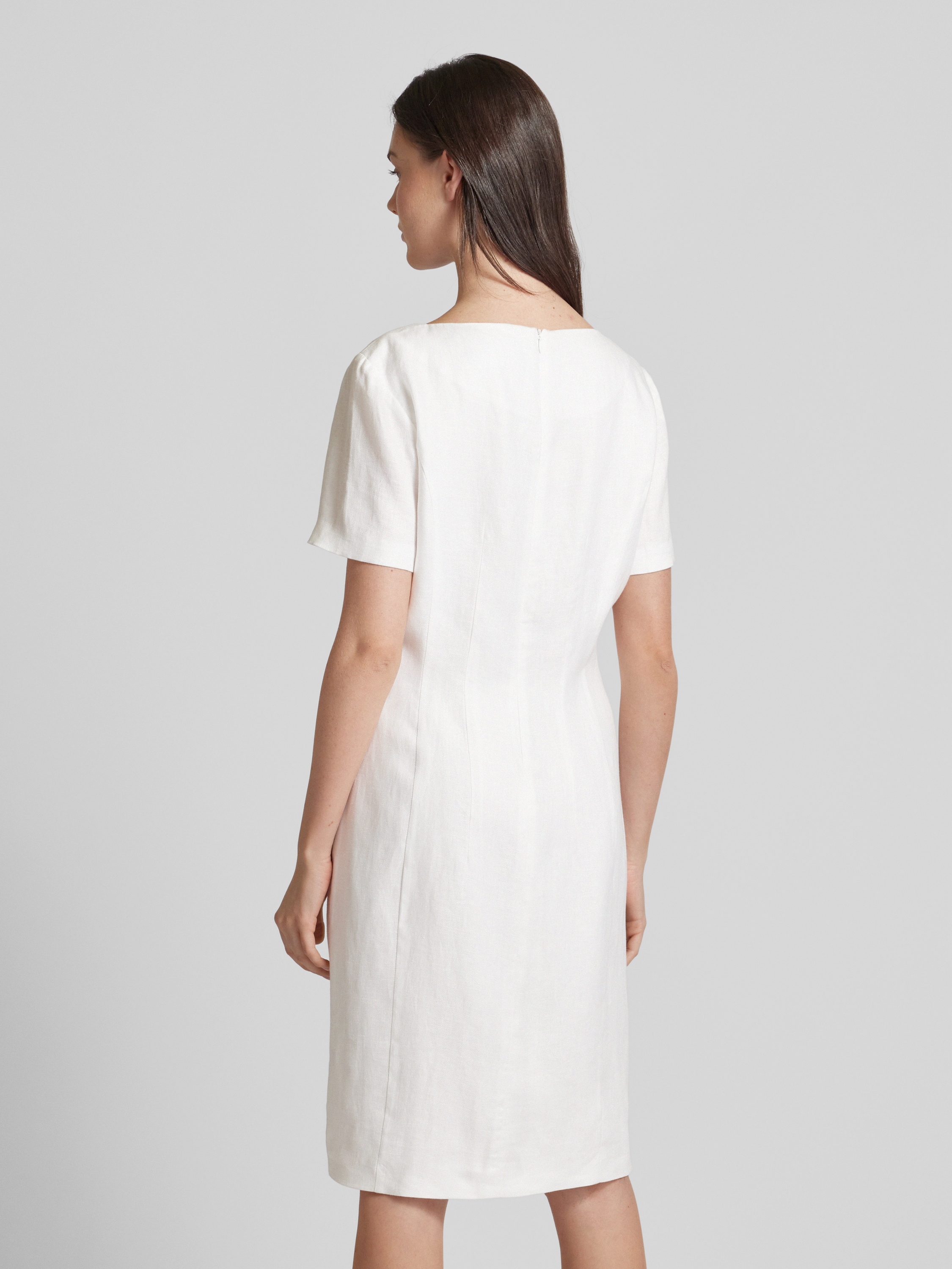 WHITE LABELKnielanges Kleid mit V-Ausschnitt in offwhite