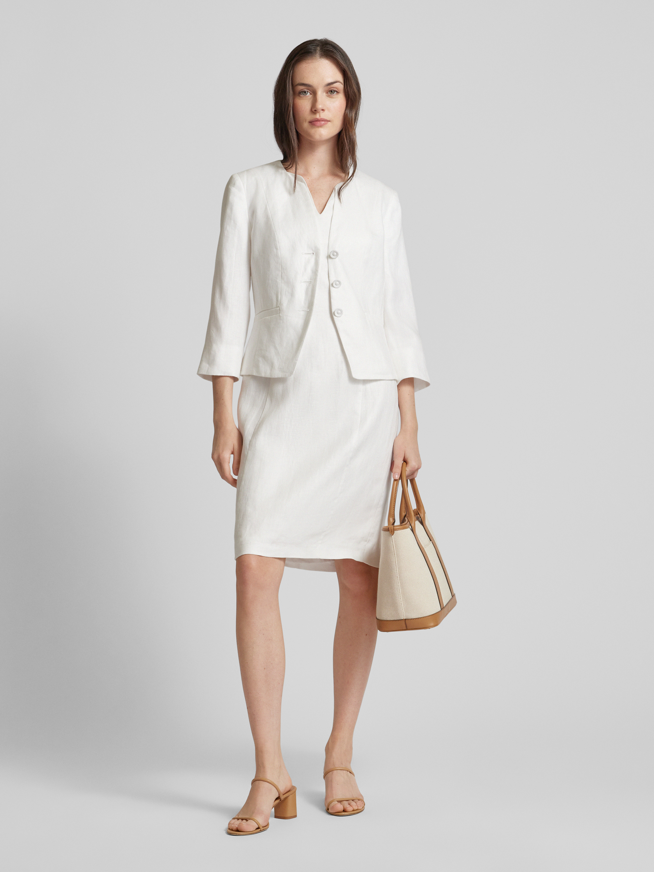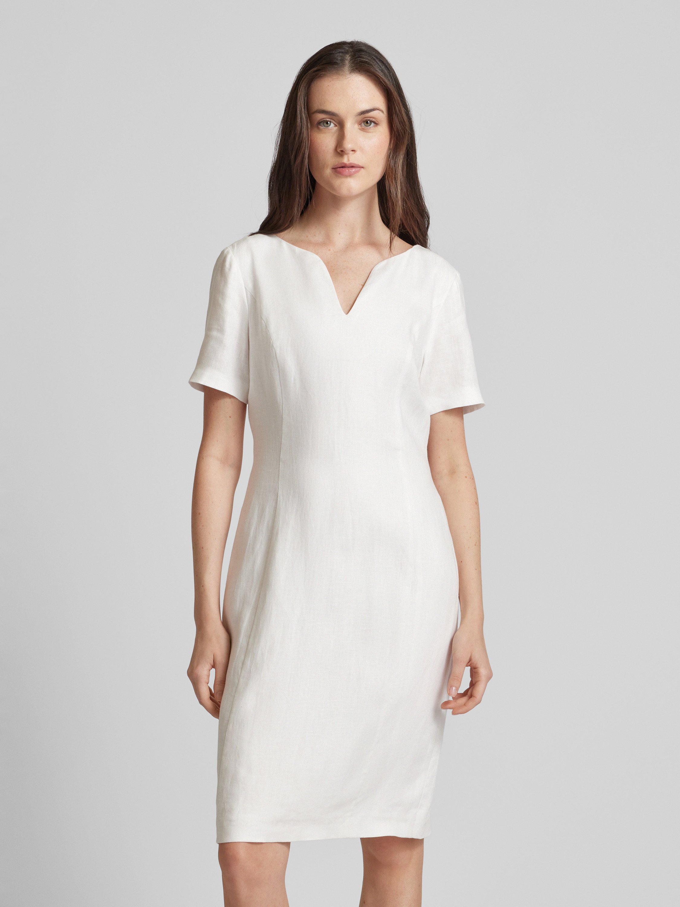 Das knielange Kleid von White Label, gefertigt aus hochwertigem Leinen, vereint zeitlose Eleganz mit komfortabler Passform. Mit seinem schmeichelhaften V-Ausschnitt und der taillierten Silhouette eignet es sich ideal für verschiedene Anlässe. Der halblange Ärmel ergänzt das dezente, unifarbene Design harmonisch.