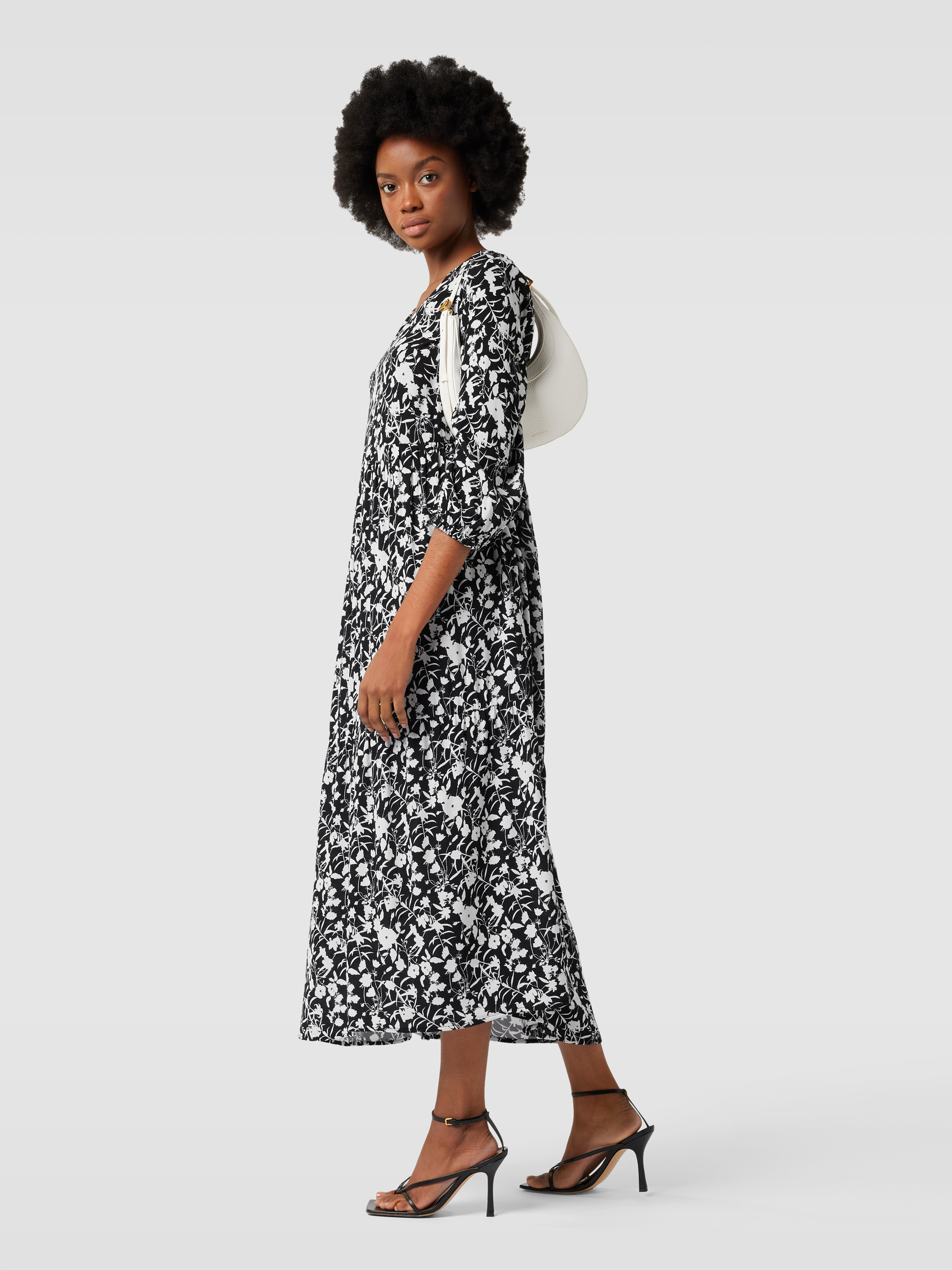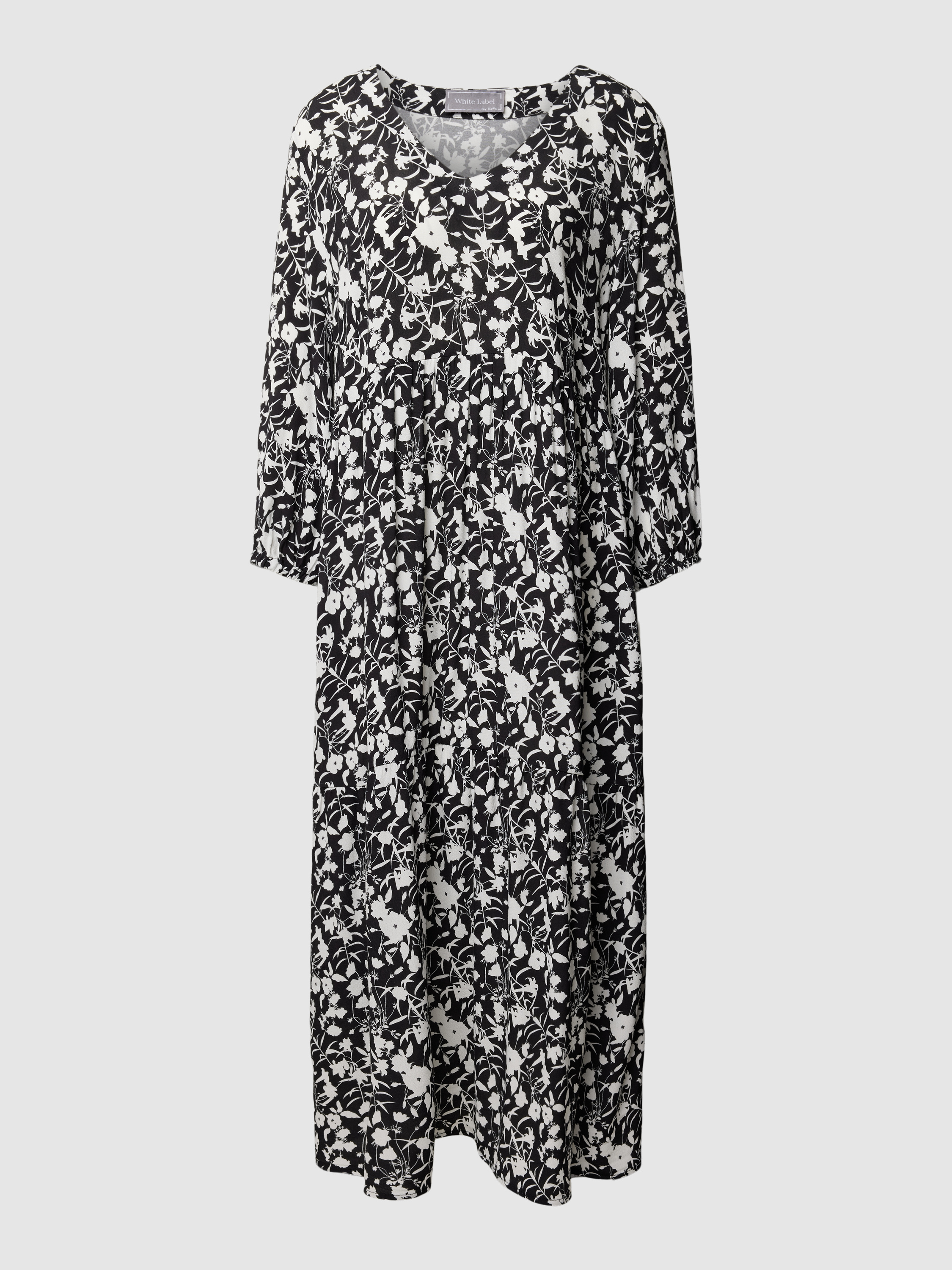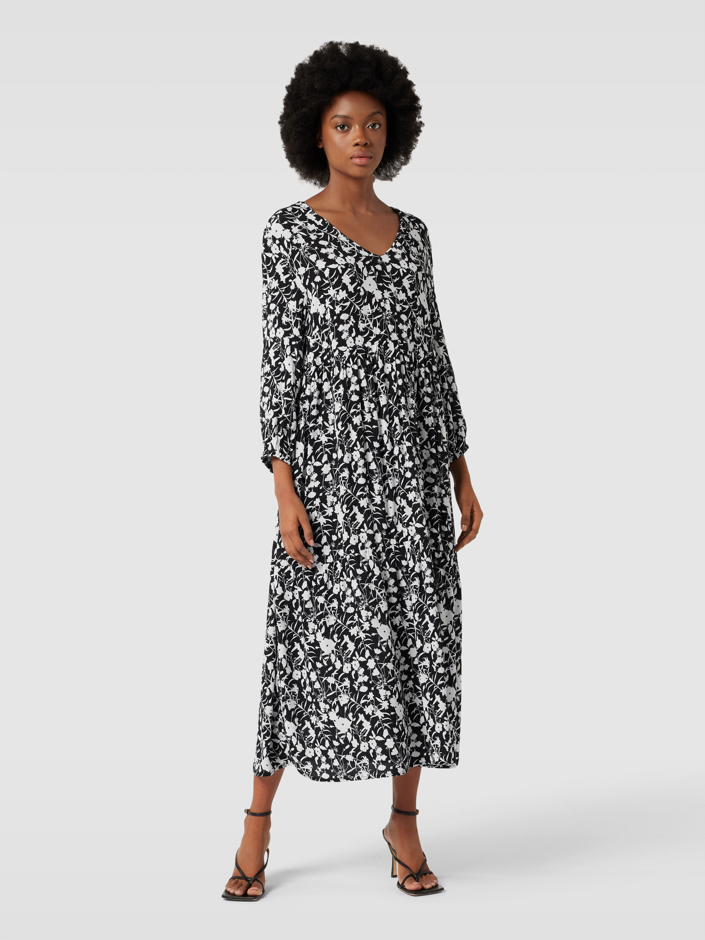 WHITE LABELMidikleid aus Viskose mit floralem Allover-Muster in black