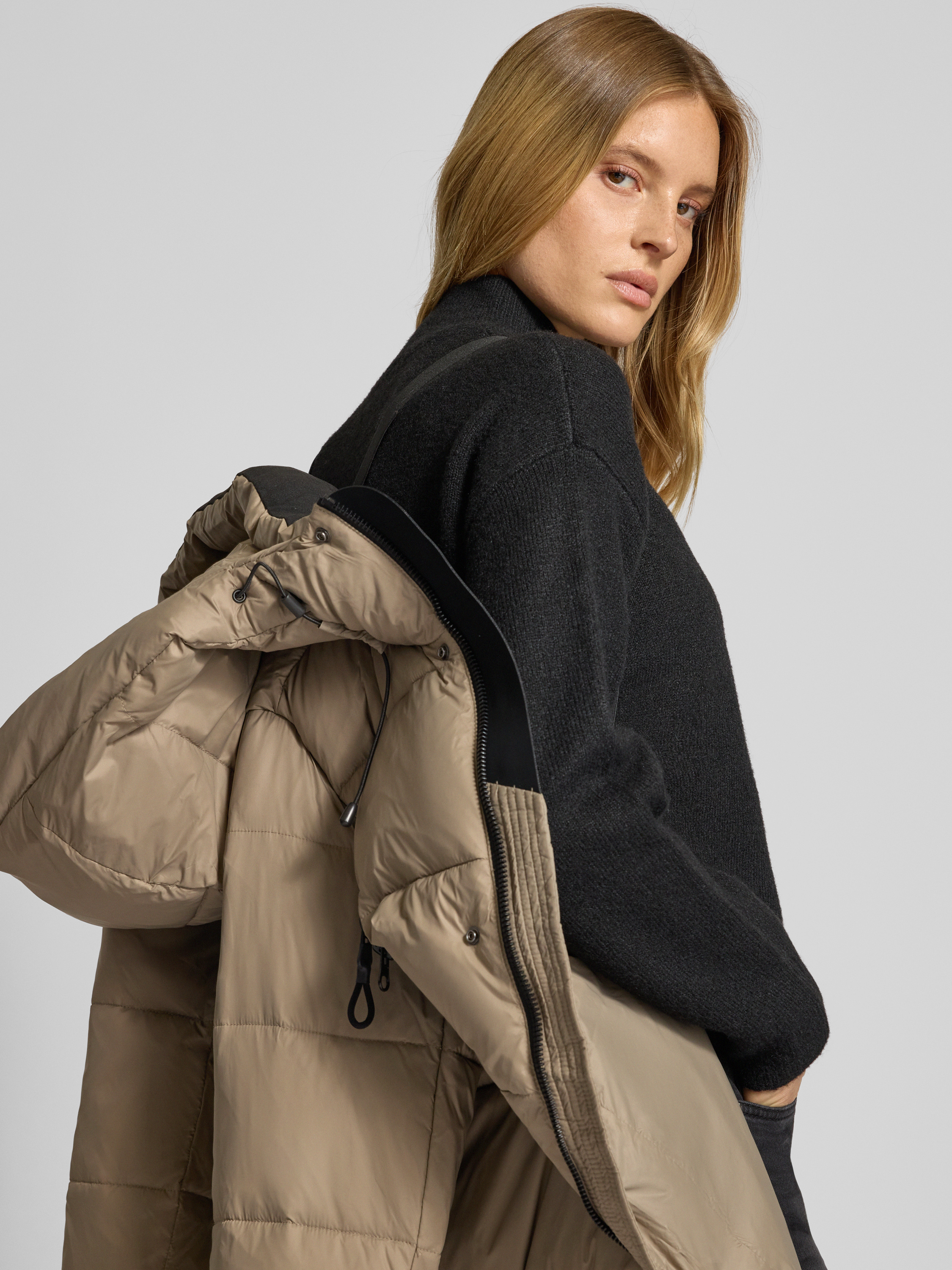WITHBLACKRegular Fit Steppmantel mit Enten-Daunen-Füllung in taupe