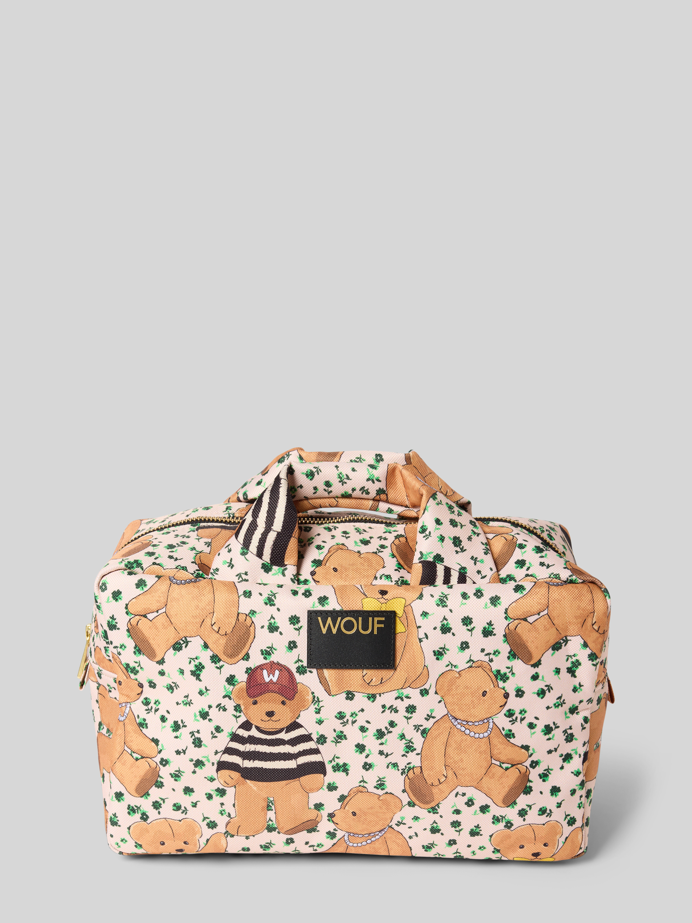 Die Kosmetiktasche Cute von WOUF fällt durch ihren lebendigen Allover-Motiv-Print angenehm ins Auge. Durch das geräumige Hauptfach lässt sich Make-up oder Pflege griffbereit aufbewahren, während der praktische Tragehenkel unterwegs für flexiblen Komfort sorgt. So eignet sich die Tasche für verschiedene Situationen.