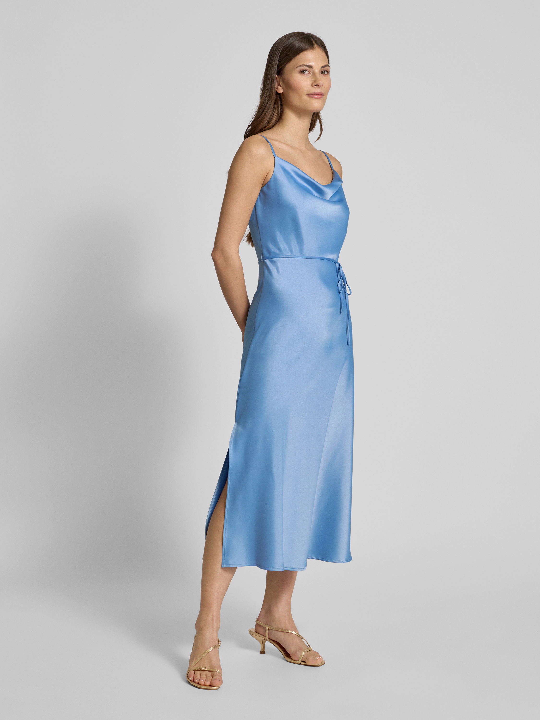 Das Cocktailkleid 'Thea' von Y.A.S. vereint einen eleganten Wasserfall-Ausschnitt mit einem taillierten Schnitt, der durch den Bindegürtel betont wird. Der Material-Mix mit Stretch-Anteil sorgt für angenehmen Tragekomfort und Bewegungsfreiheit. Die Spaghettiträger verleihen dem Midikleid eine zarte Note.