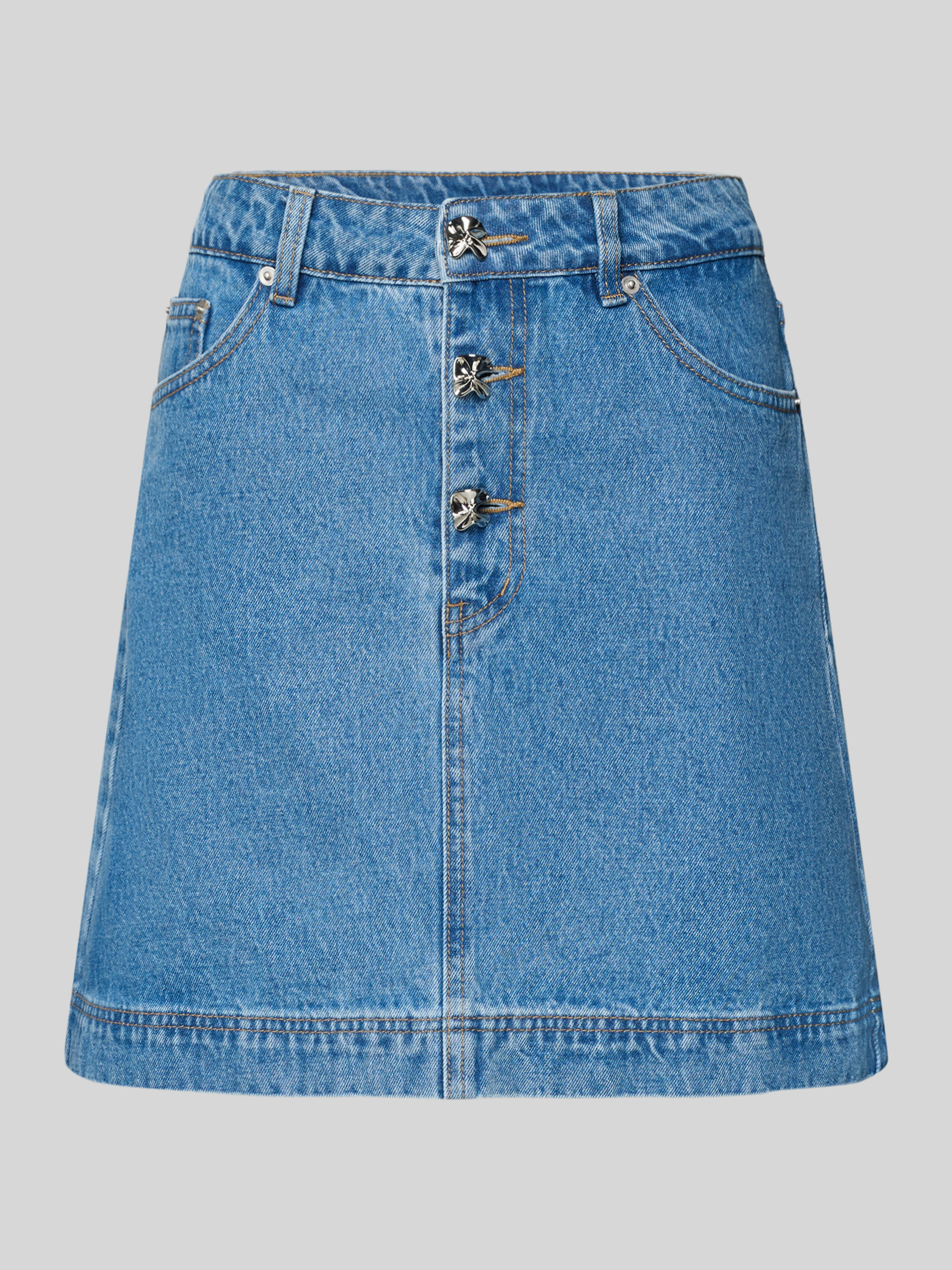 Der Damen Jeansrock von YAS, Modell 'CECI', kombiniert klassische A-Linien-Silhouette mit der angenehmen Haptik reiner Baumwolle. Die Eingrifftaschen bieten praktischen Stauraum, während die Minirock-Länge für eine frische Note sorgt. Dieser Rock eignet sich hervorragend für vielfältige Alltagskombinationen.