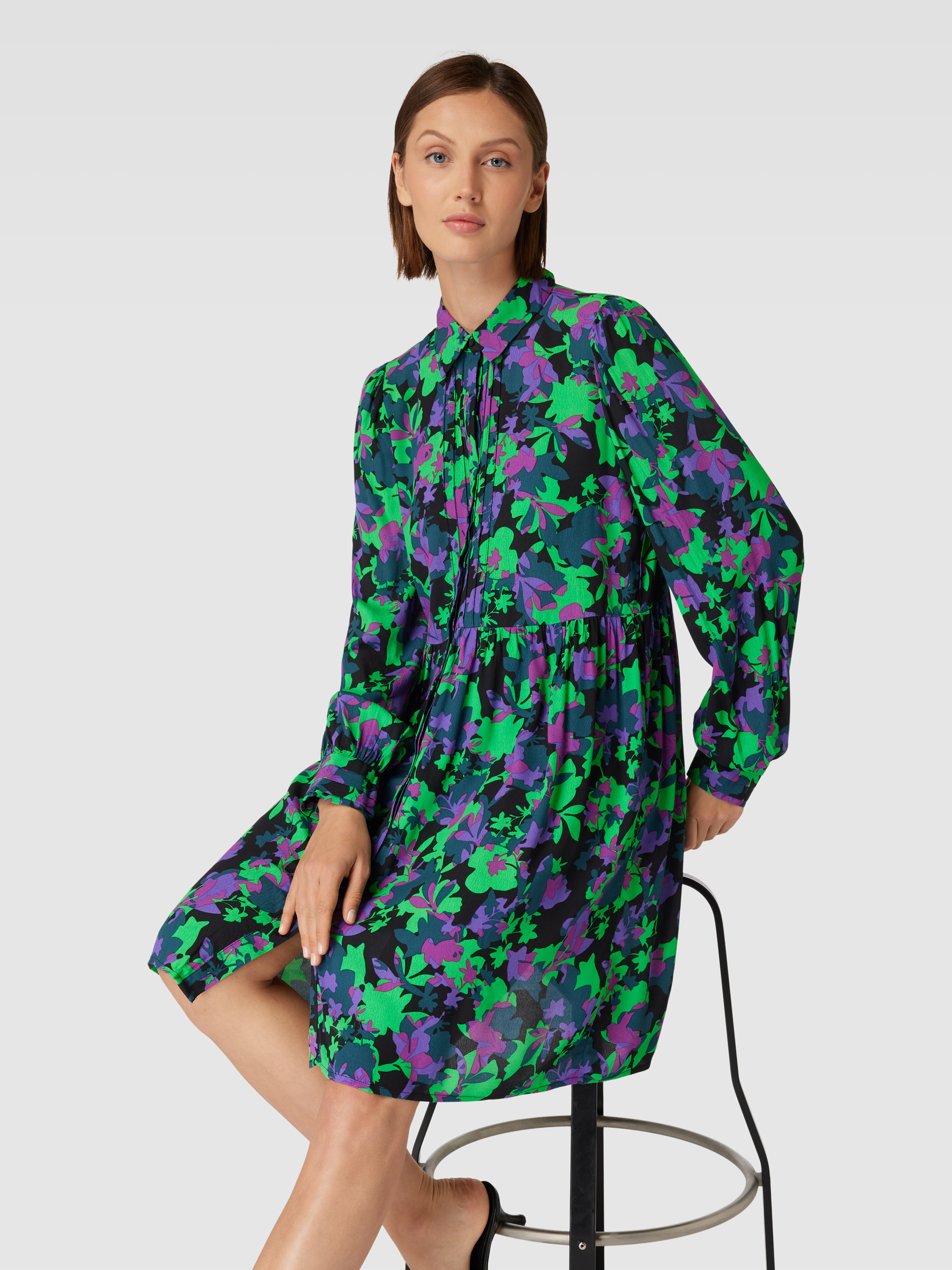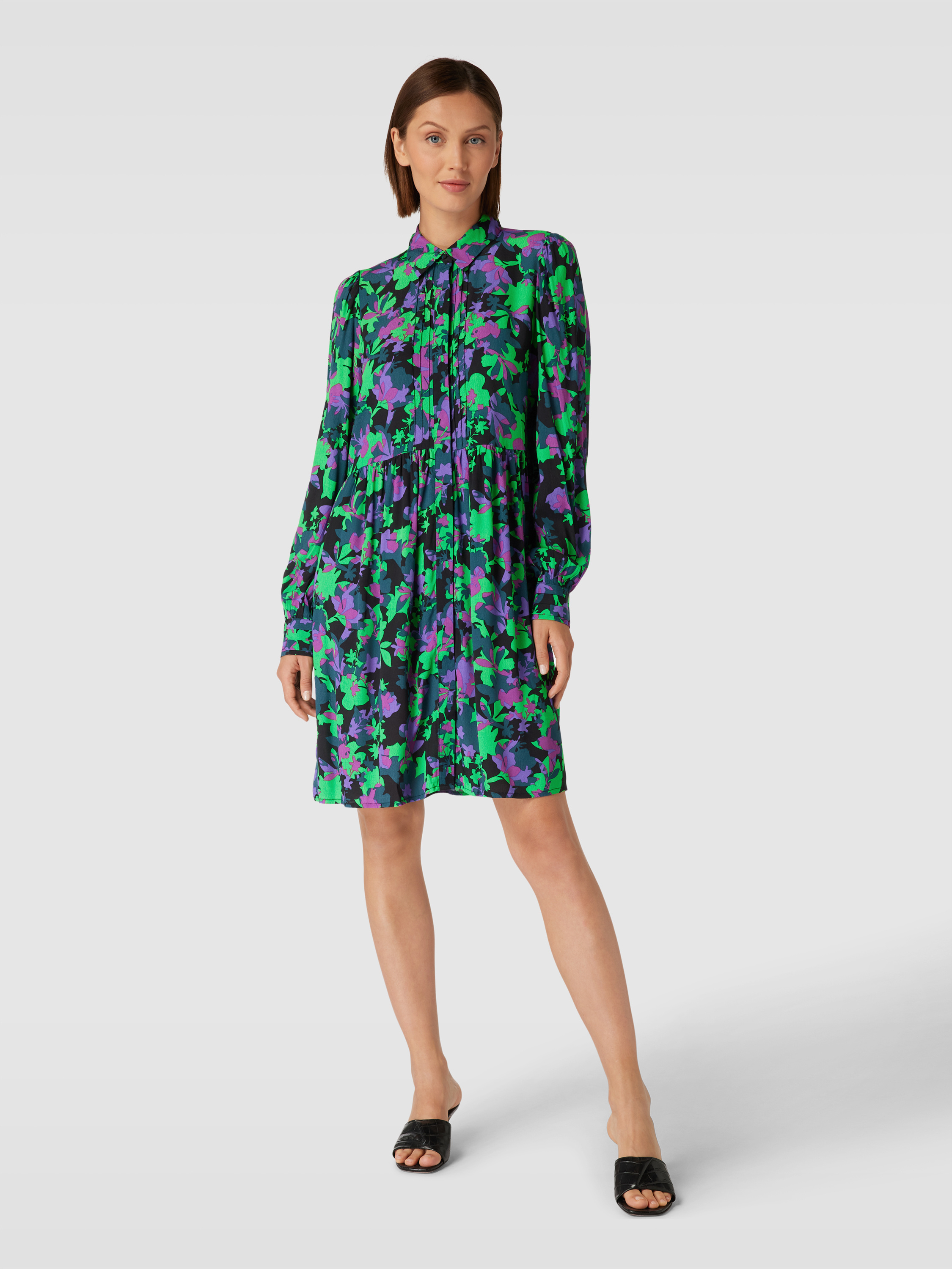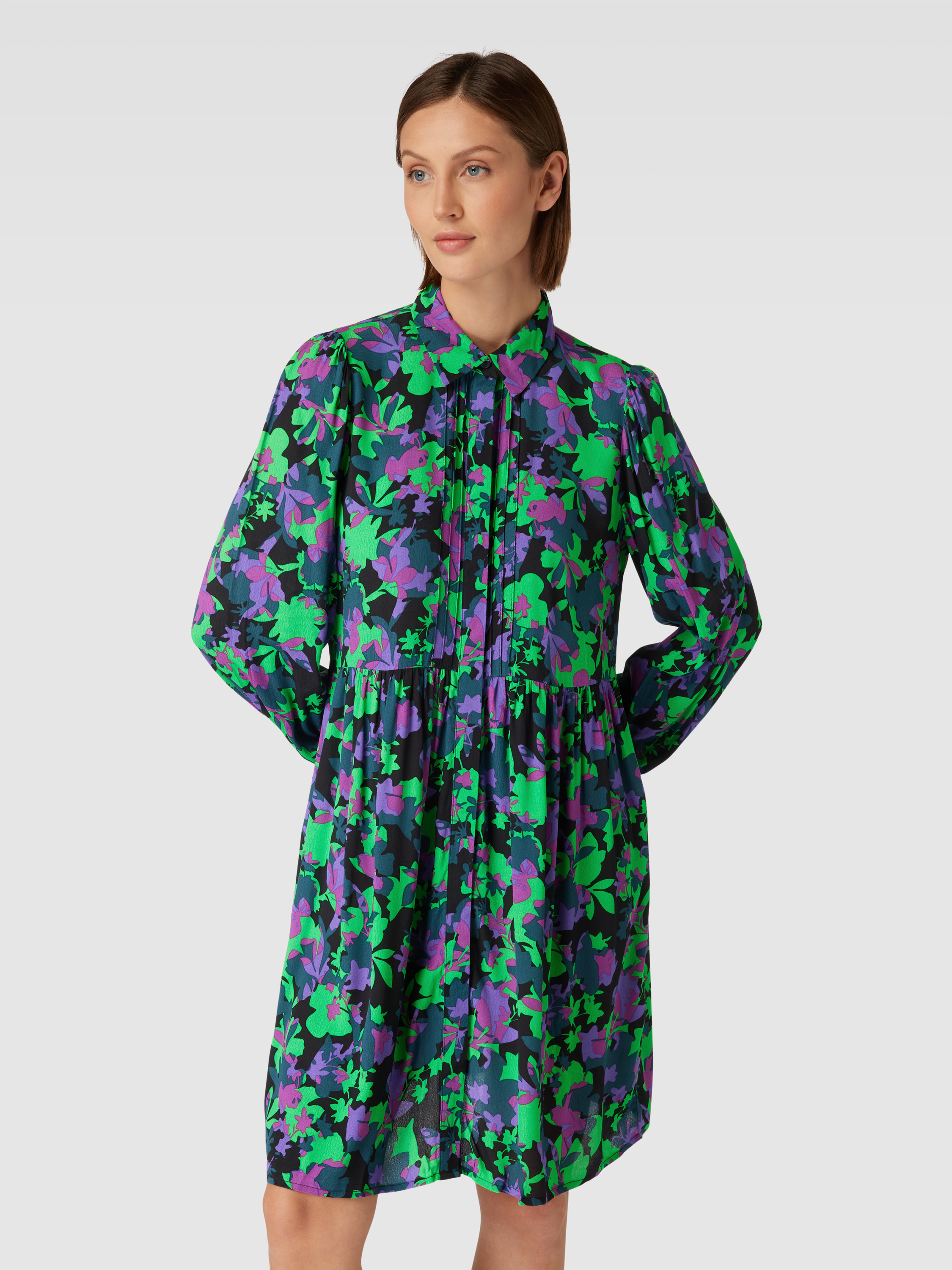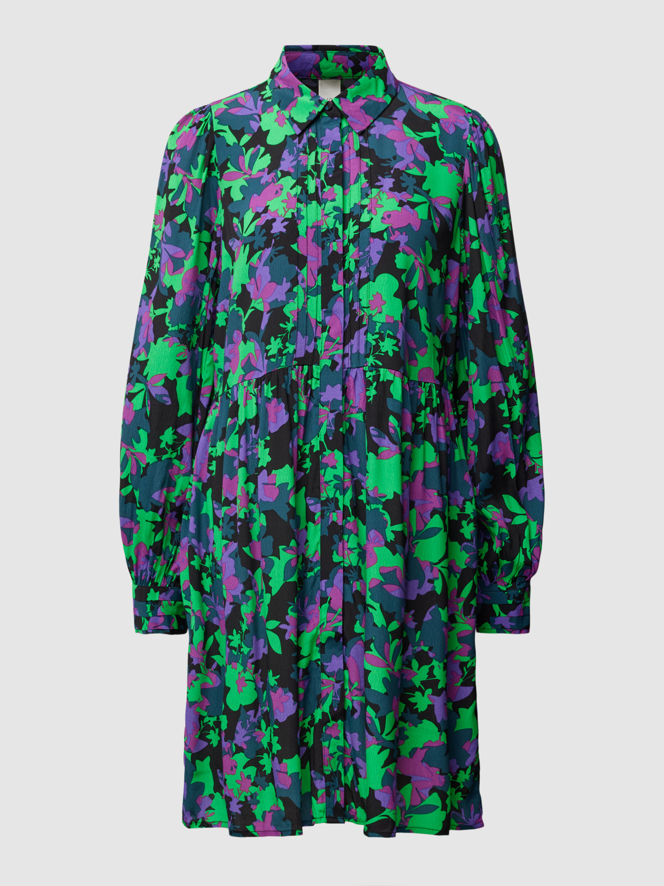 Das knielange Kleid 'LICCO' von Y.A.S. kombiniert einen taillierten Schnitt mit einem floralen Muster, das für eine feminine Silhouette sorgt. Gefertigt aus reiner Viskose, bietet es ein angenehmes Tragegefühl. Der Umlegekragen und die Raffungen verleihen dem Kleid eine elegante Note.