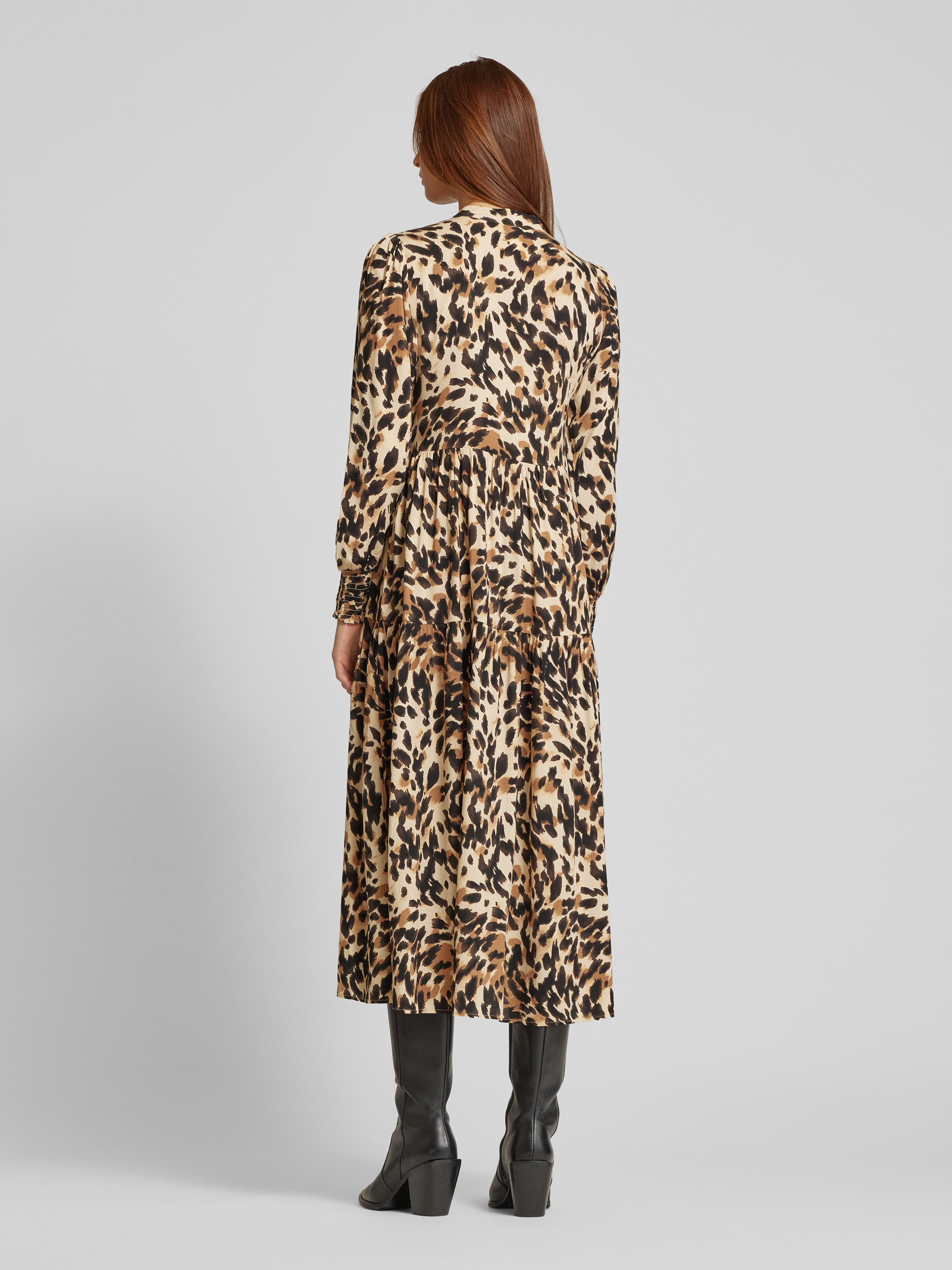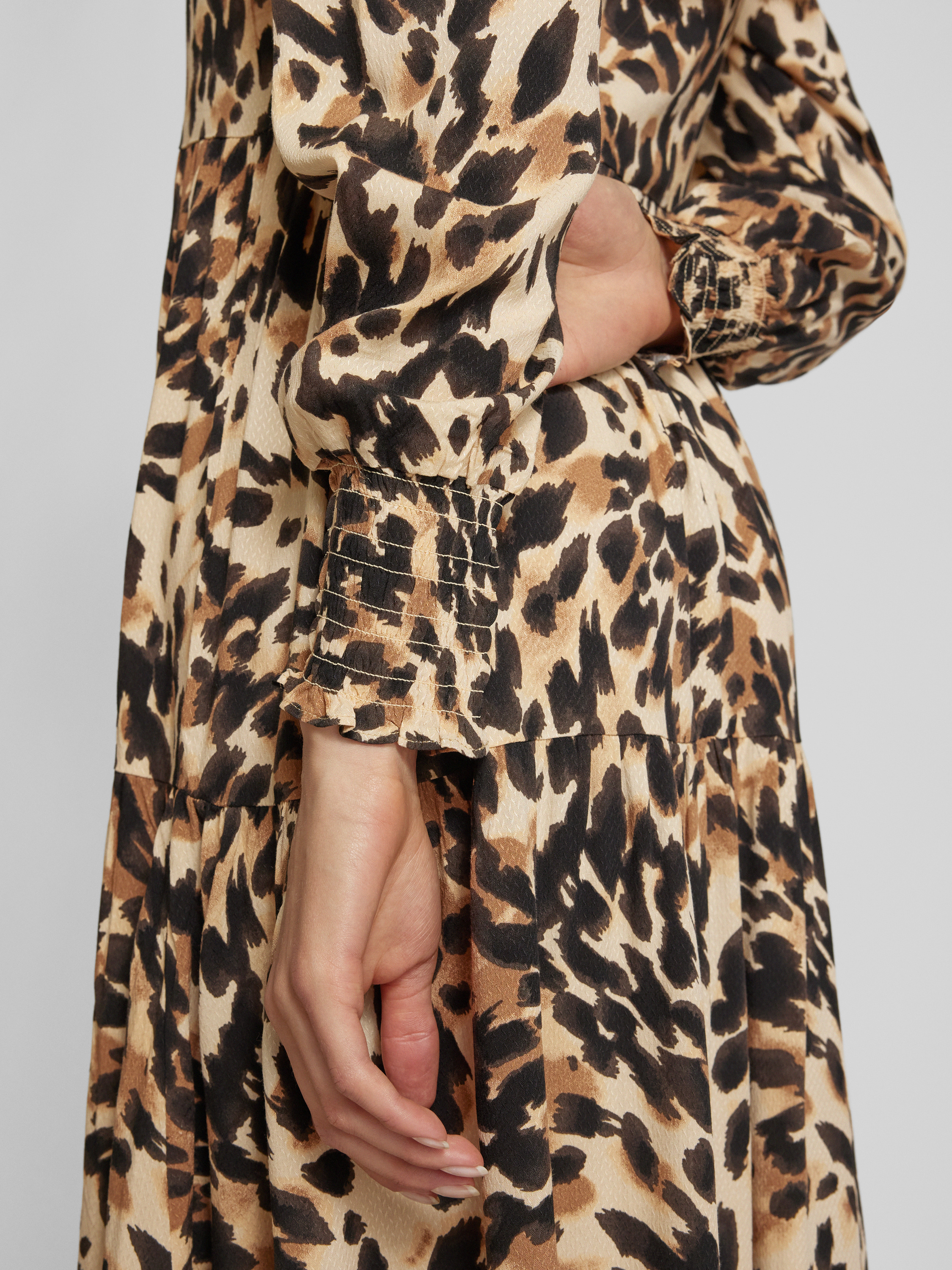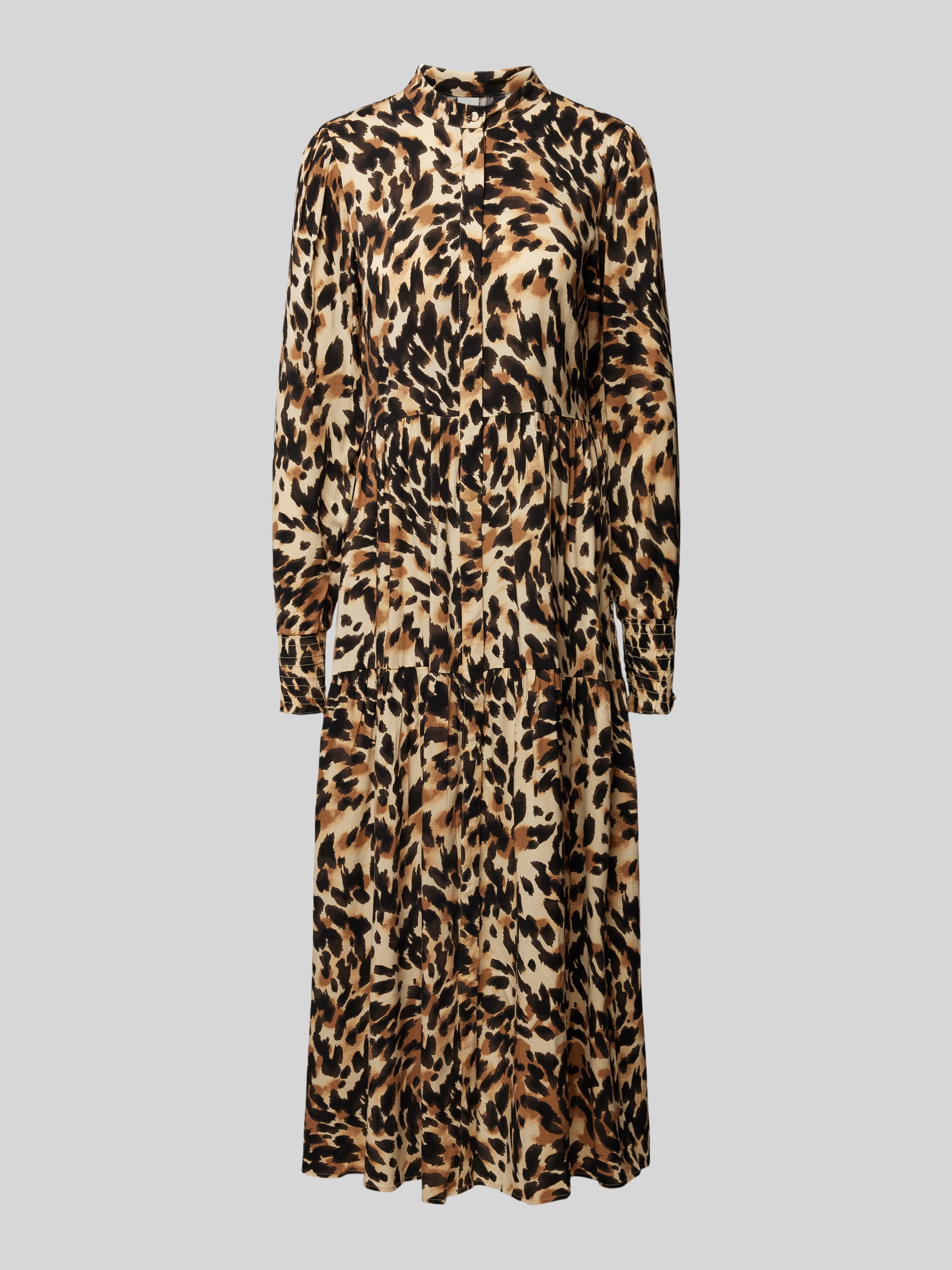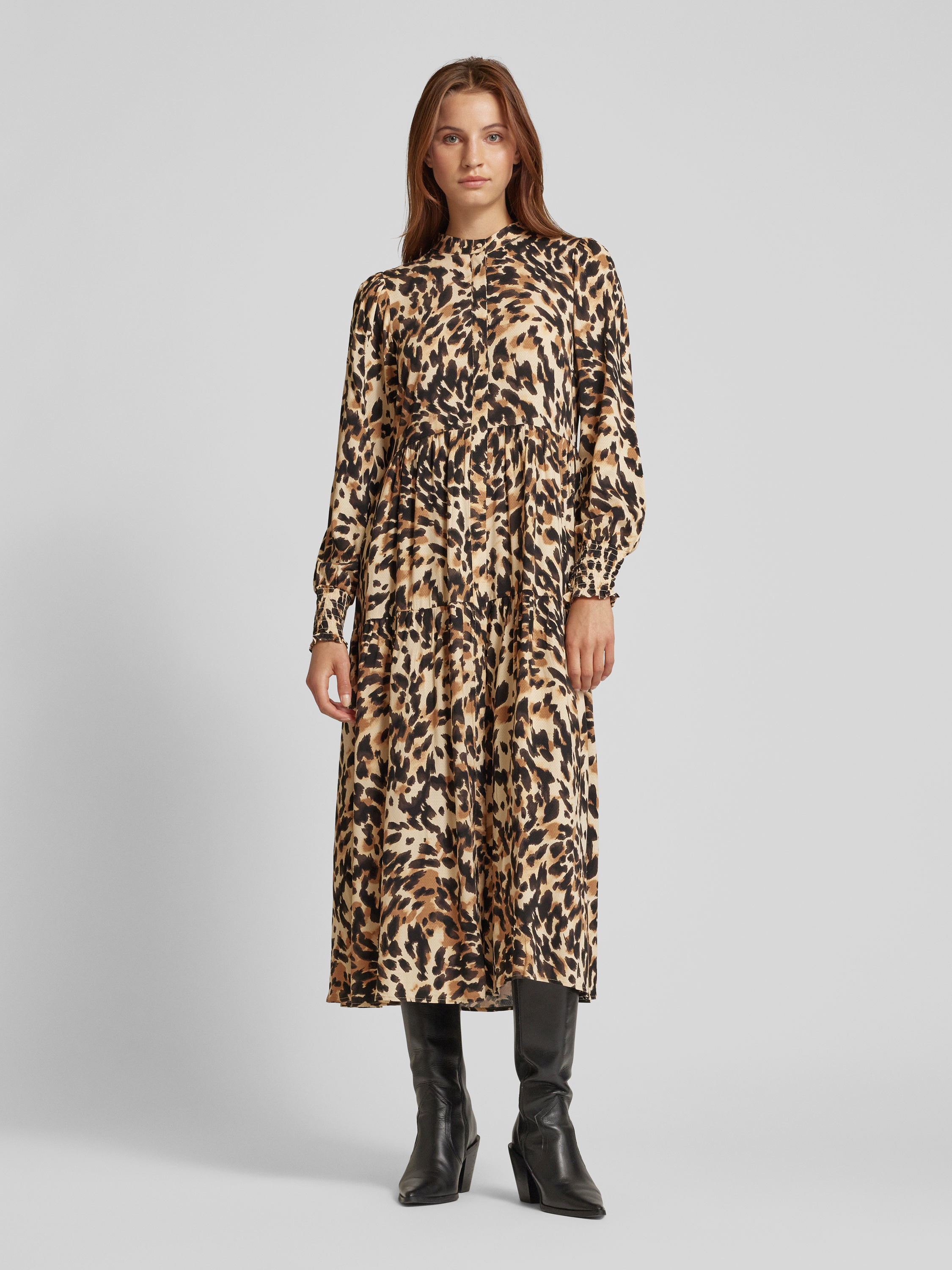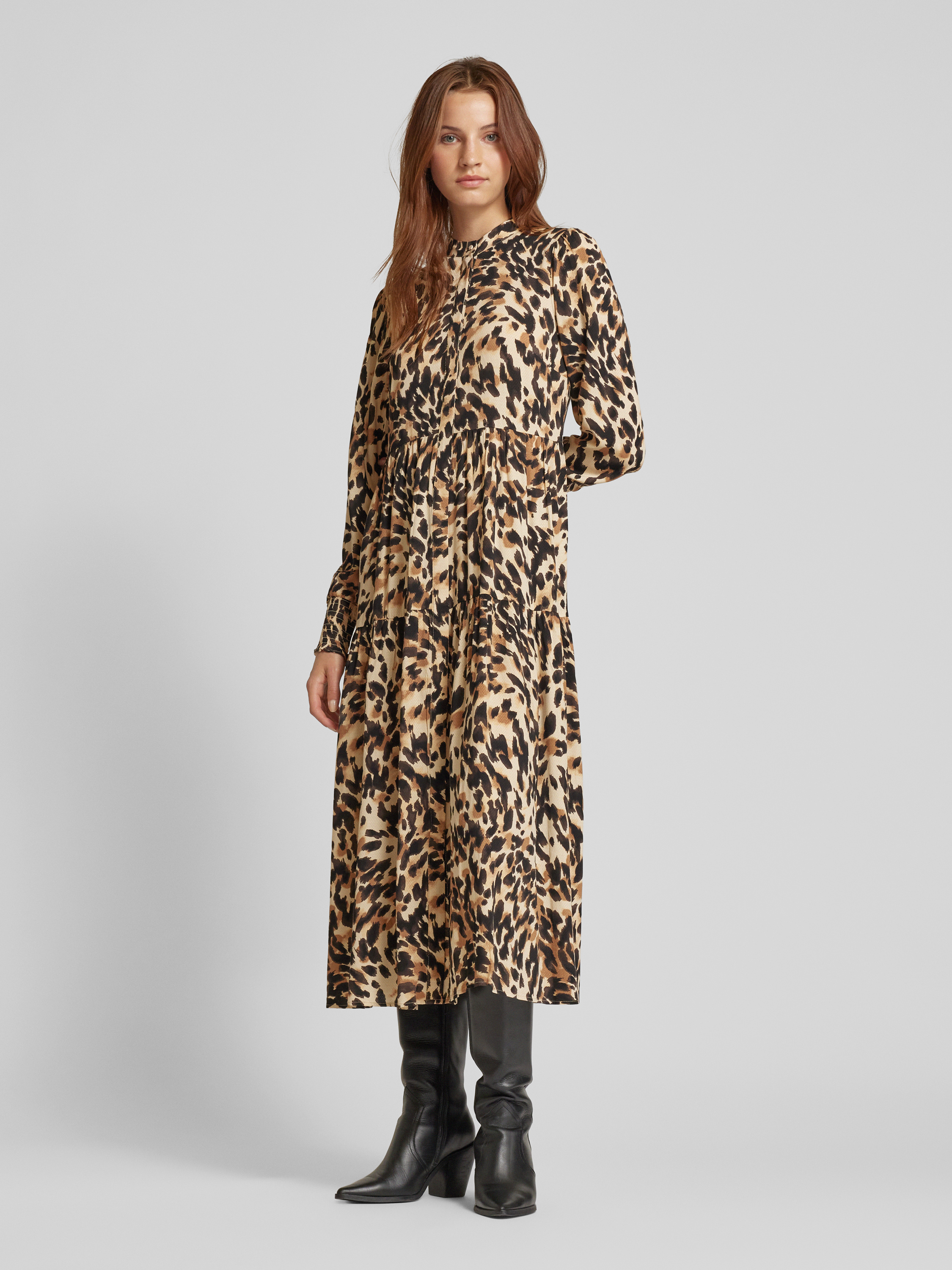 Das Midikleid von Y.A.S., Modell 'ALIRA', aus reiner Viskose, kombiniert einen leichten A-Linien-Schnitt mit einem eleganten Maokragen. Die Smok-Details verleihen dem Kleid eine besondere Struktur, während der fließende Stoff für angenehmen Tragekomfort sorgt. Ideal für vielseitige Anlässe.