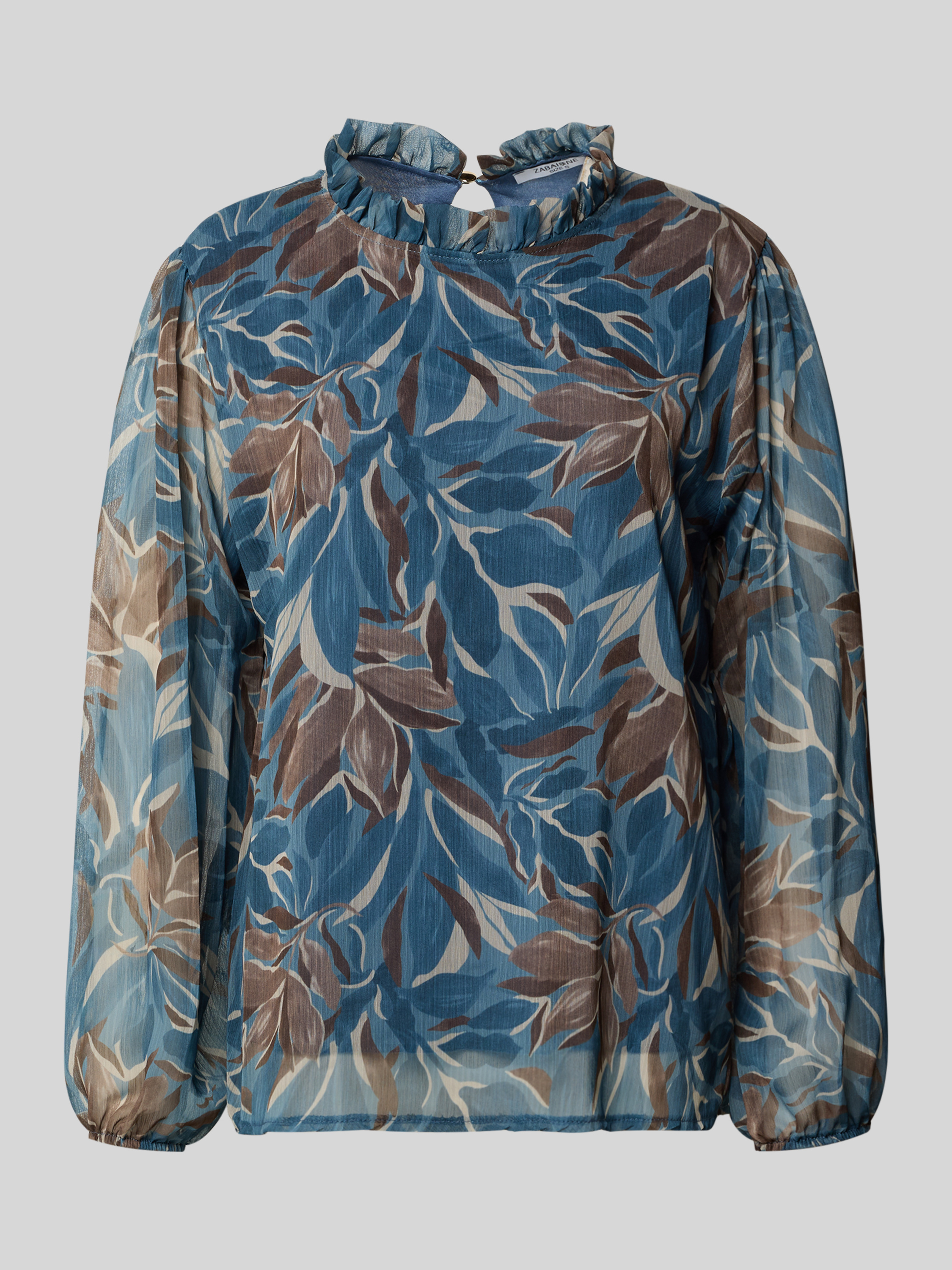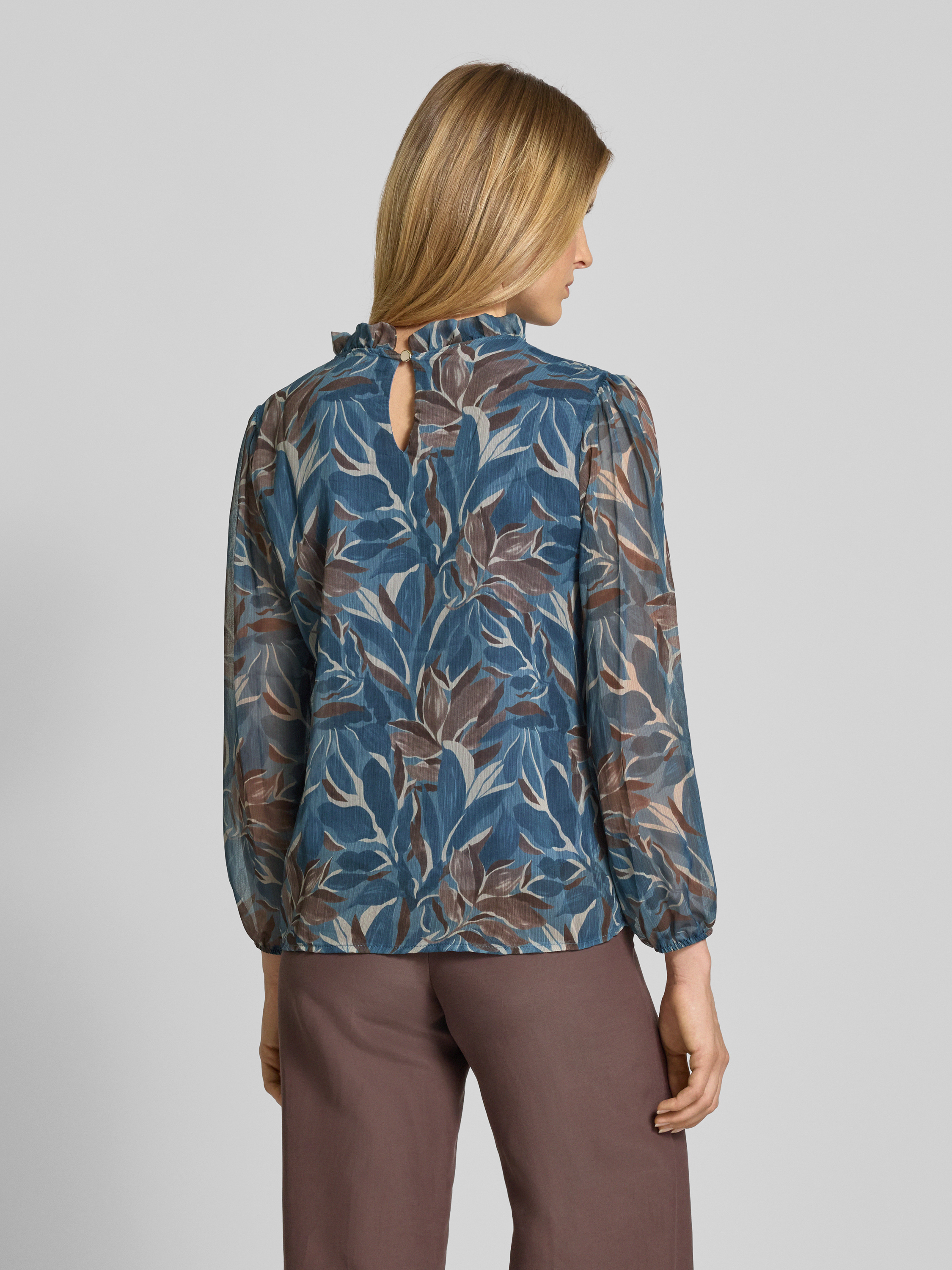 Die Damenbluse von ZABAIONE, Modell Zoe, zeigt sich mit floralen Motiven und einem lockeren Schnitt, der Bewegungsfreiheit ermöglicht. Feine Rüschen am Ausschnitt setzen einen dezenten Akzent, während das semitransparente Material durch das blickdichte Unterhemd ergänzt wird. Langärmel und schmale Ärmelabschlüsse runden das Gesamtbild harmonisch ab.
