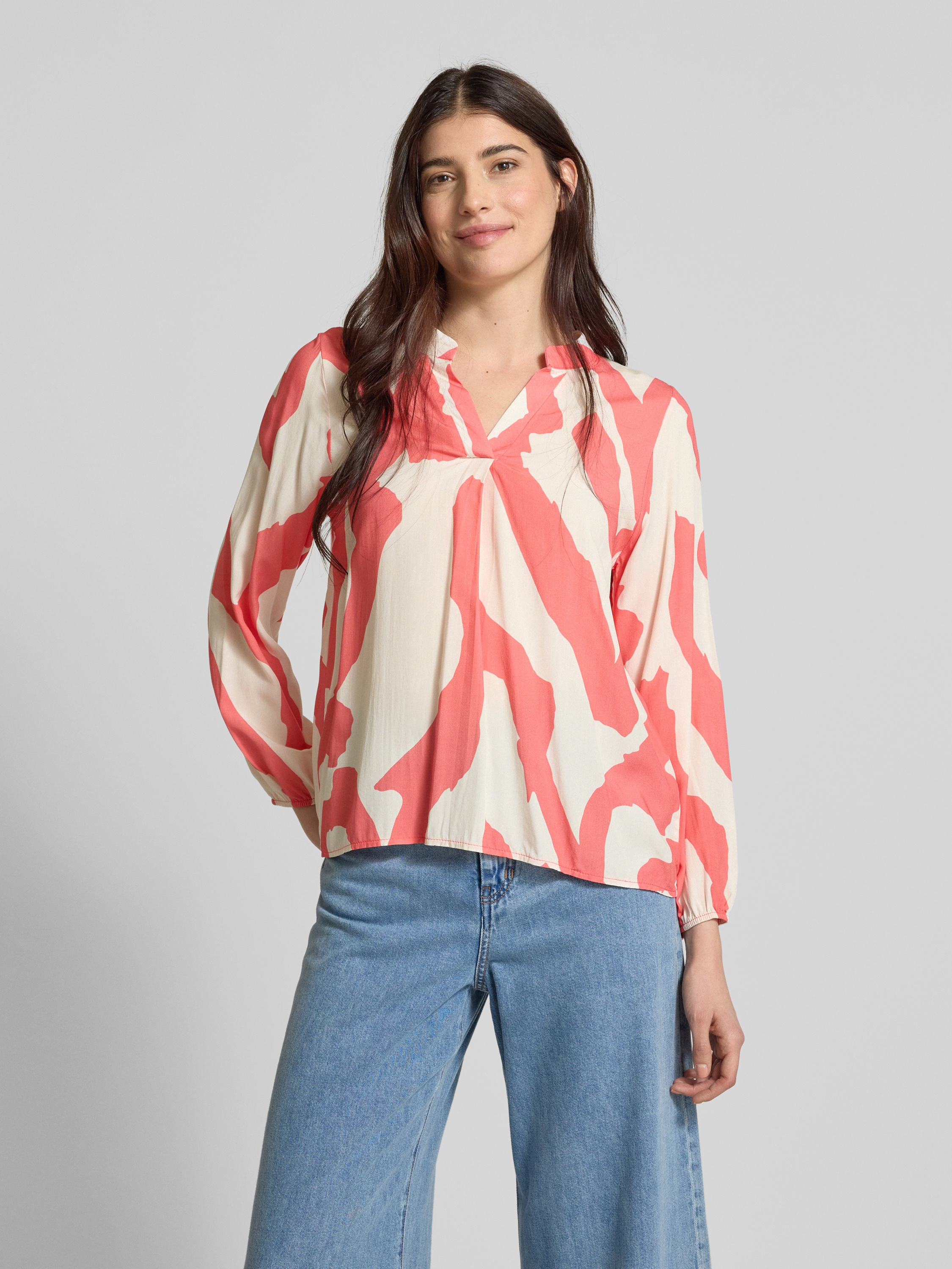 Die Relaxed Fit Bluse 'Mi44llaa' von ZABAIONE aus reiner Viskose beeindruckt durch ihren lässigen Schnitt und den eleganten Tunikakragen. Die weichen Ballonärmel verleihen dem Modell eine besondere Note und bieten dabei Bewegungsfreiheit. Ideal für entspannte Tage, an denen Komfort und Stil Hand in Hand gehen.