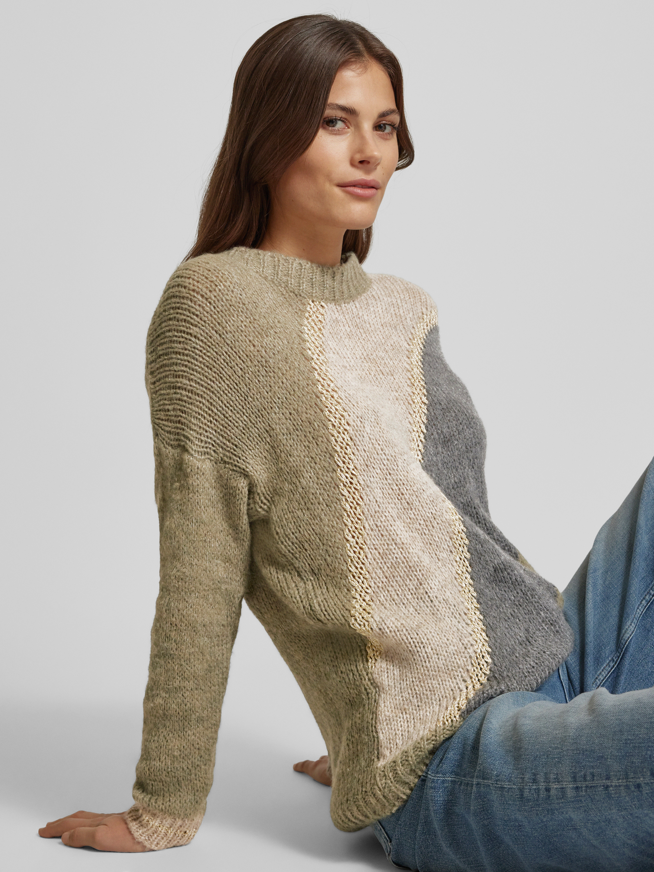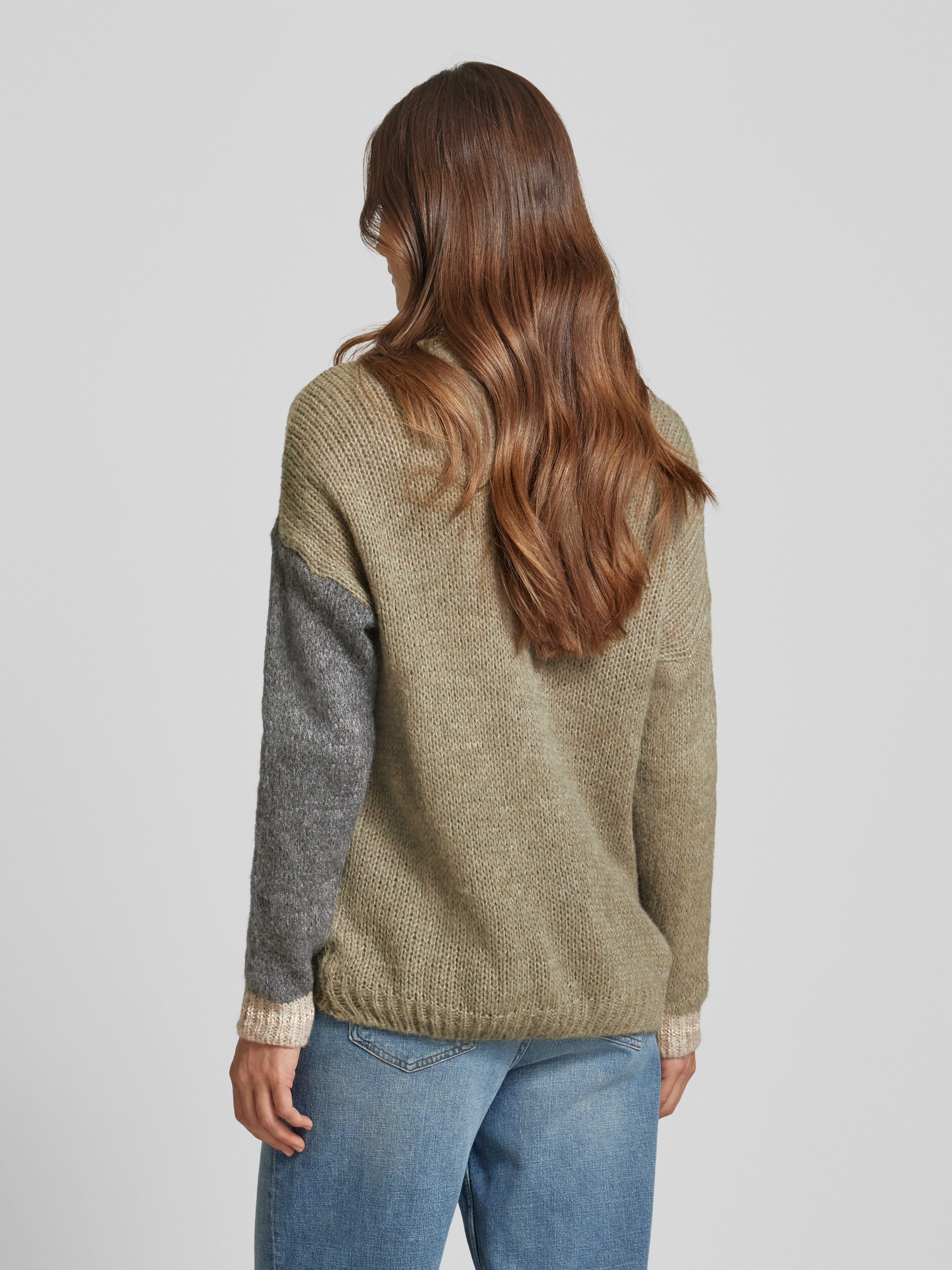 ZABAIONEStrickpullover mit gerippten Abschlüssen in khaki