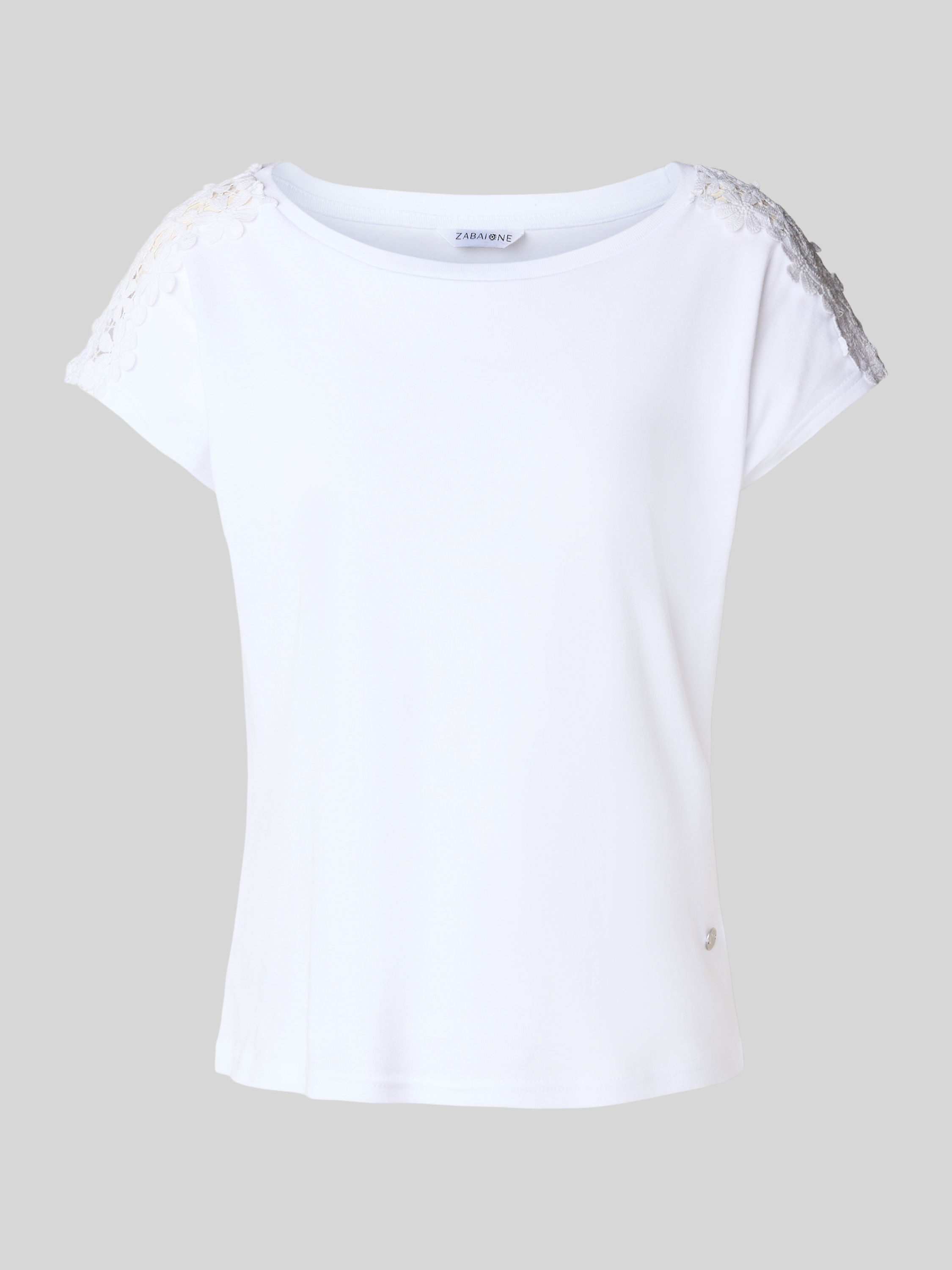 ZABAIONET-Shirt mit geripptem Rundhalsausschnitt in weiss