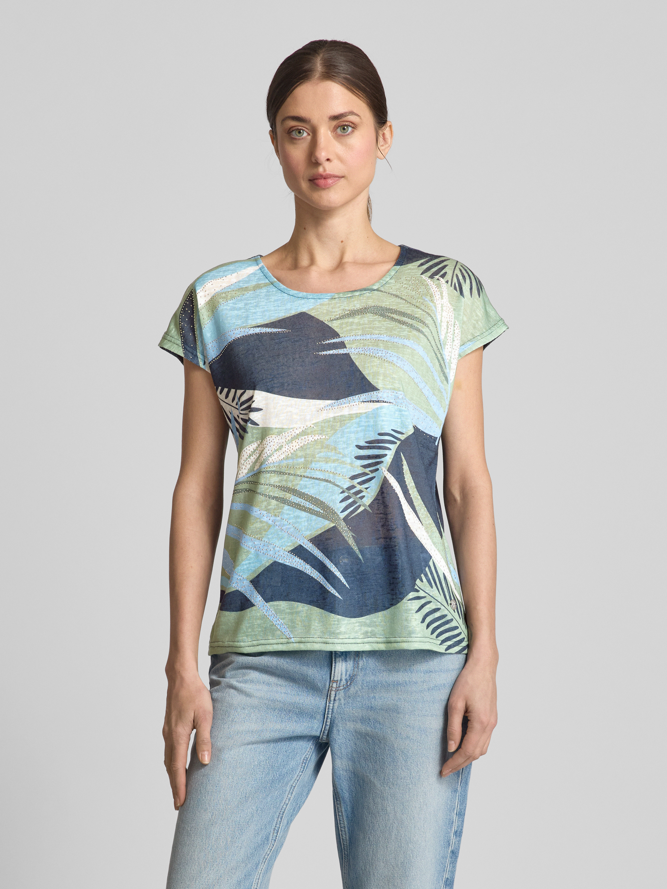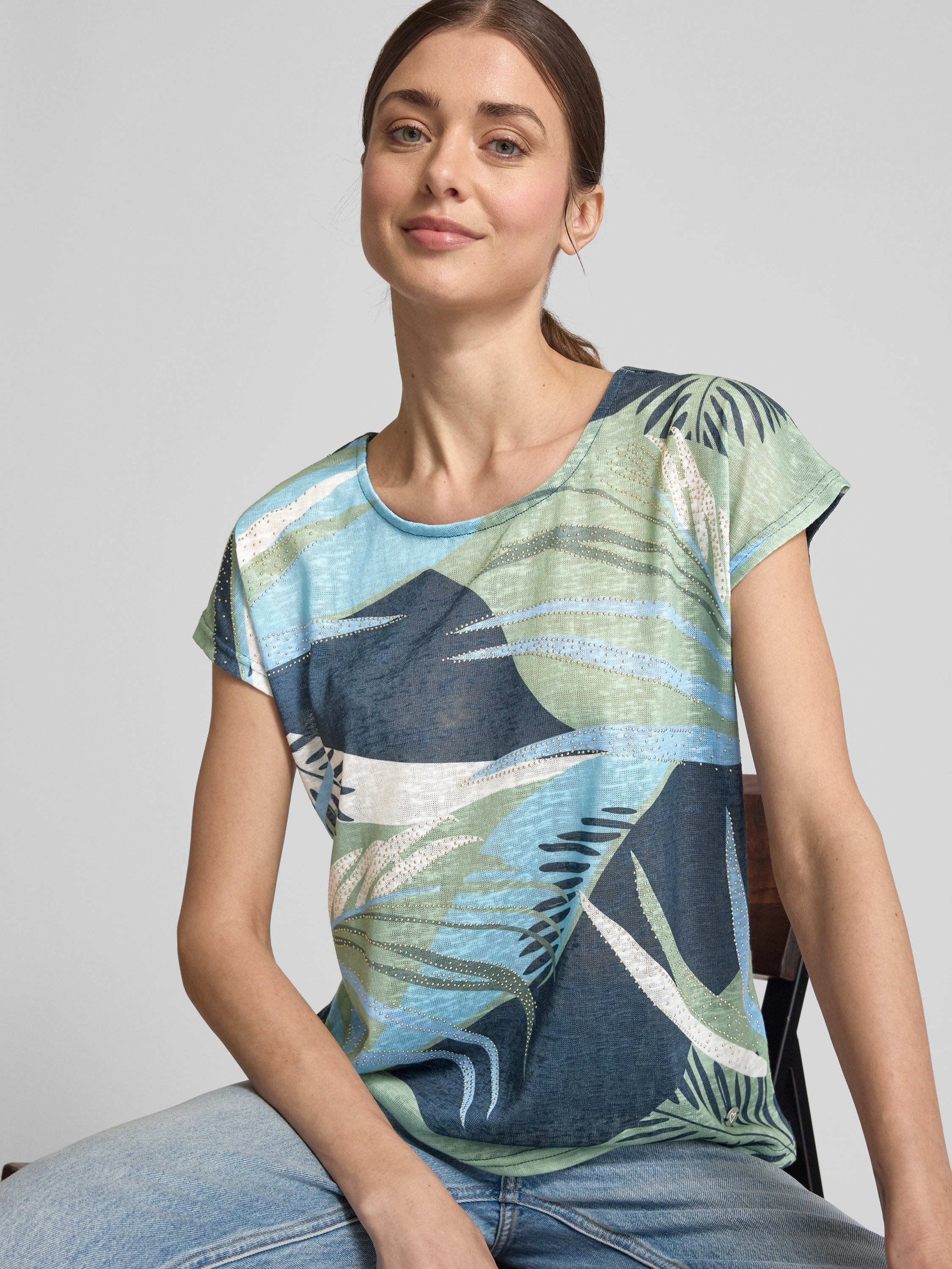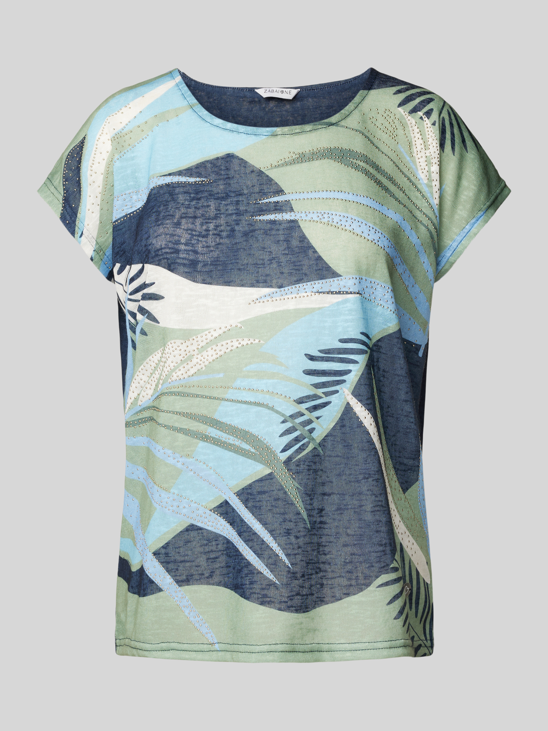 Das T-Shirt mit Kappärmeln Modell 'Ha44wai' von ZABAIONE überzeugt durch seinen geraden Schnitt und den klassischen Rundhalsausschnitt, der vielseitige Kombinationsmöglichkeiten bietet. Die Kappärmel verleihen dem Shirt eine luftige Note, ideal für entspannte Tage. Man fühlt sich rundum wohl.