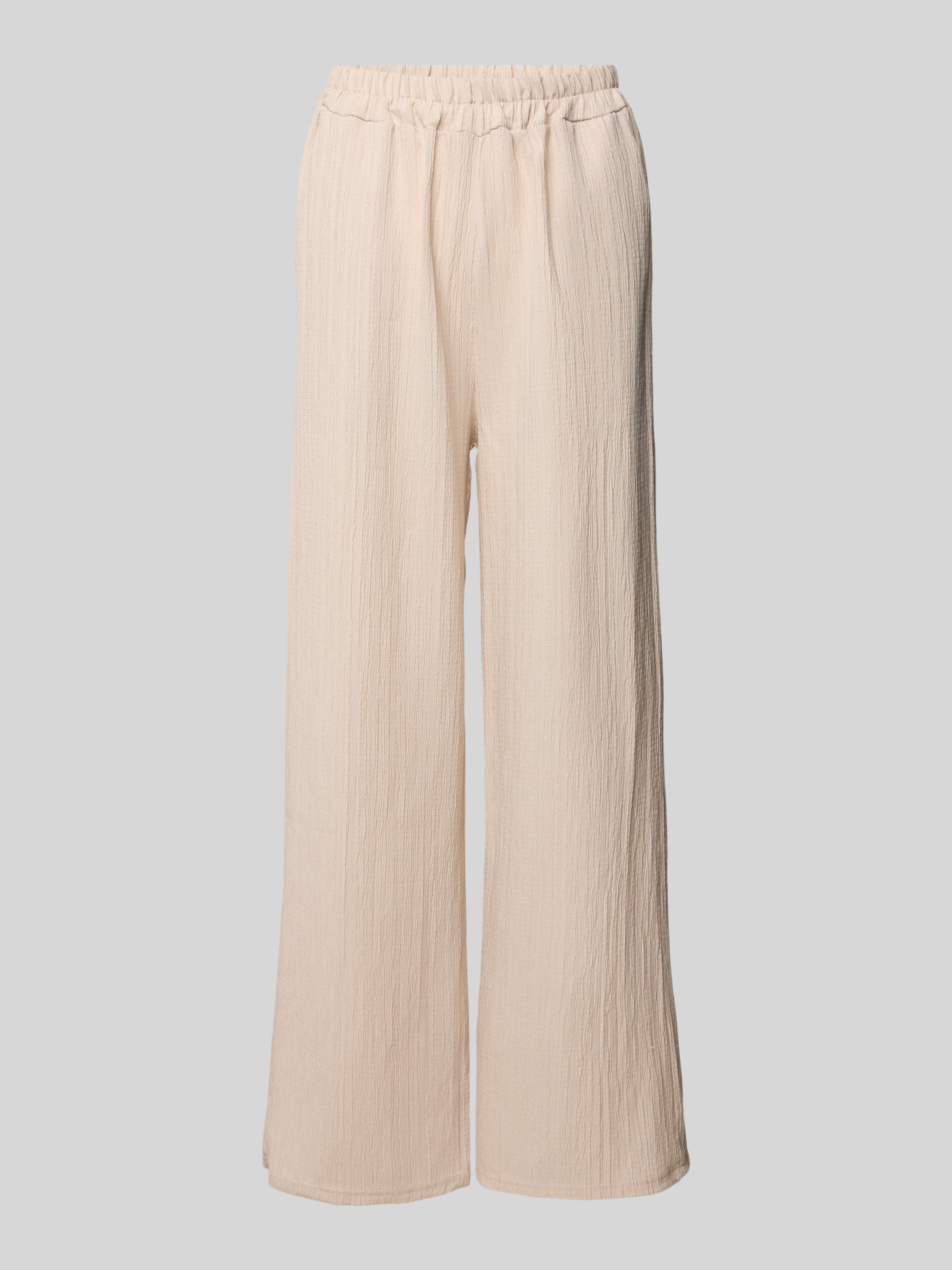 Die Wide Leg Stoffhose Modell 'Jo44laa' von ZABAIONE verbindet einen komfortablen Material-Mix mit einem eleganten Strukturmuster. Durch den weiten Schnitt bietet sie Bewegungsfreiheit, während der elastische Bund für zusätzlichen Tragekomfort sorgt. Ideal für entspannte Tage und stilvolle Auftritte.