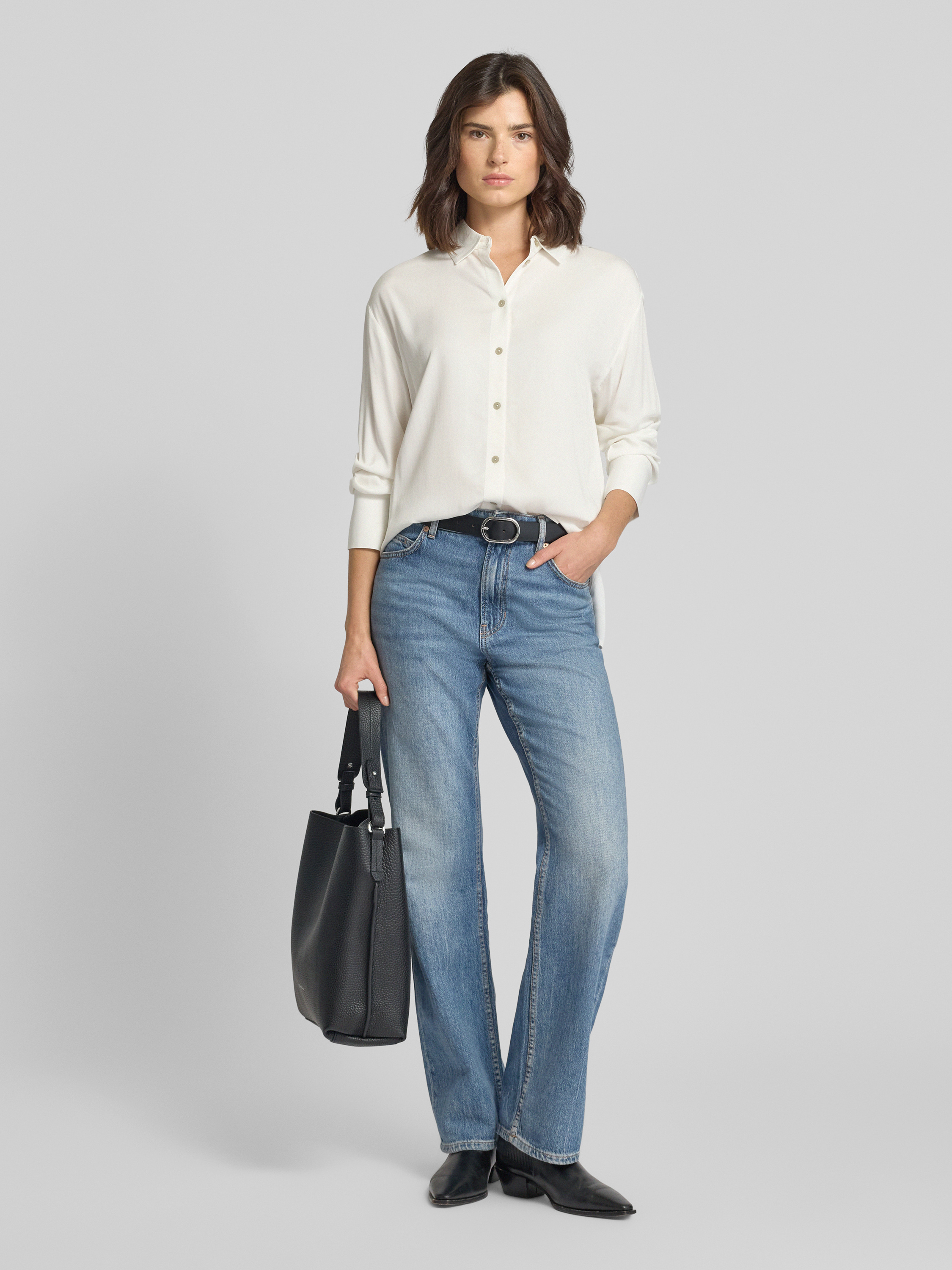Die Damen Hemdbluse von Zero aus reiner Viskose fühlt sich angenehm leicht auf der Haut an und fällt locker, was für einen entspannten Sitz sorgt. Durch den klassischen Hemdblusenkragen und die durchgehende Knopfleiste entsteht ein zeitloser Look, der vielseitig kombinierbar bleibt. Dank des lockeren Schnitts bleibt Bewegungsfreiheit erhalten, wodurch sich die Hemdbluse unkompliziert in den Alltag einfügt.