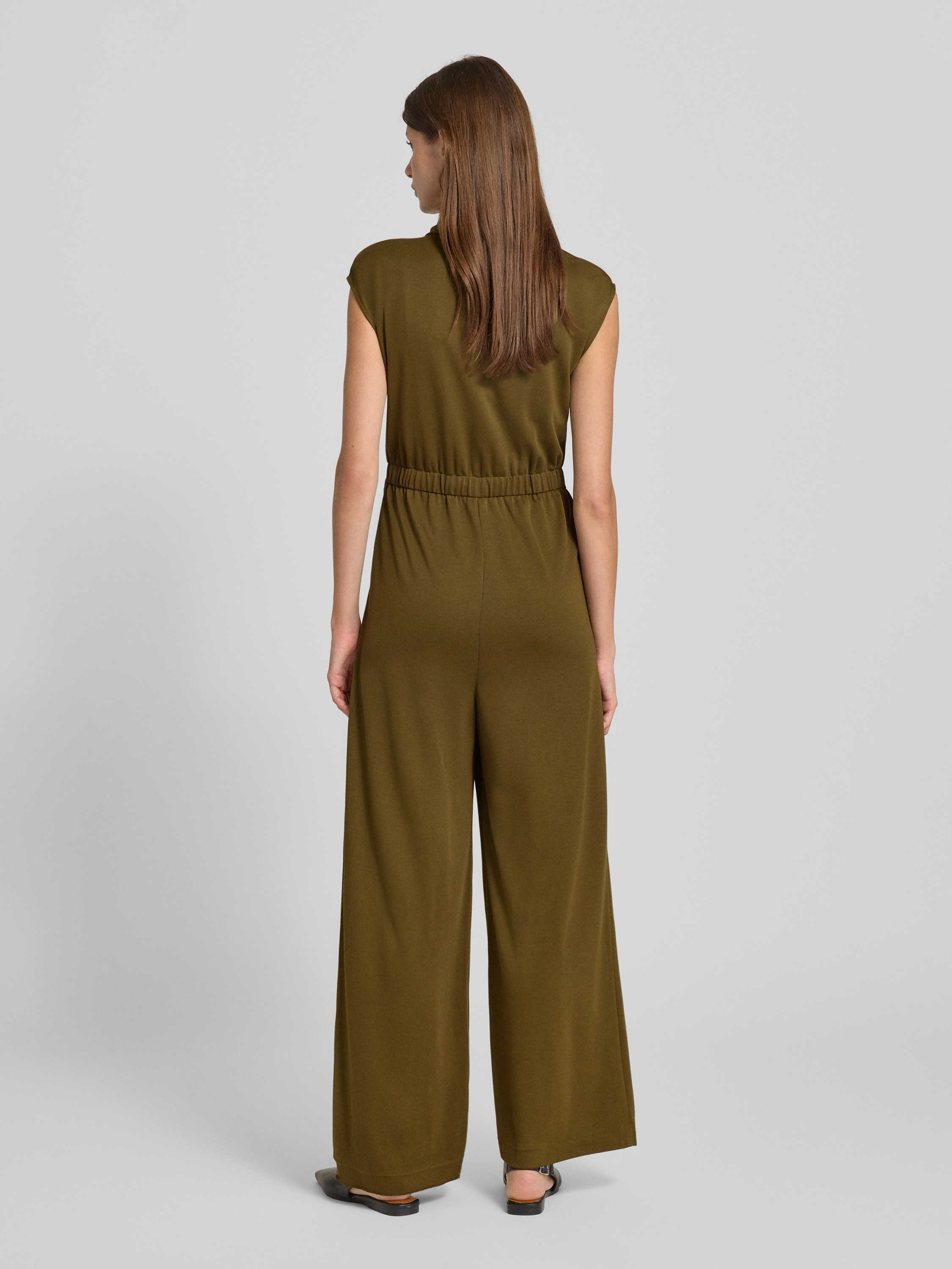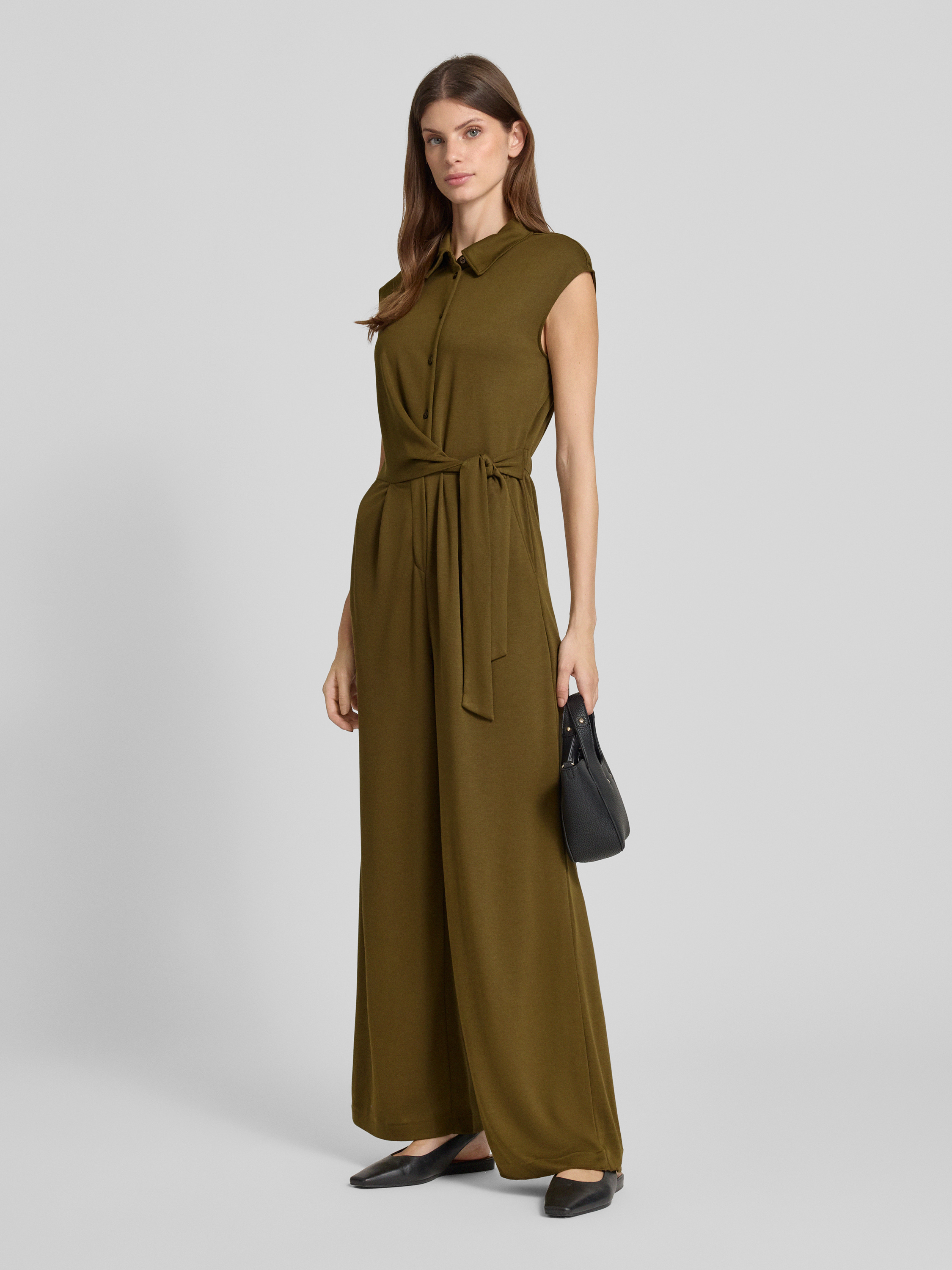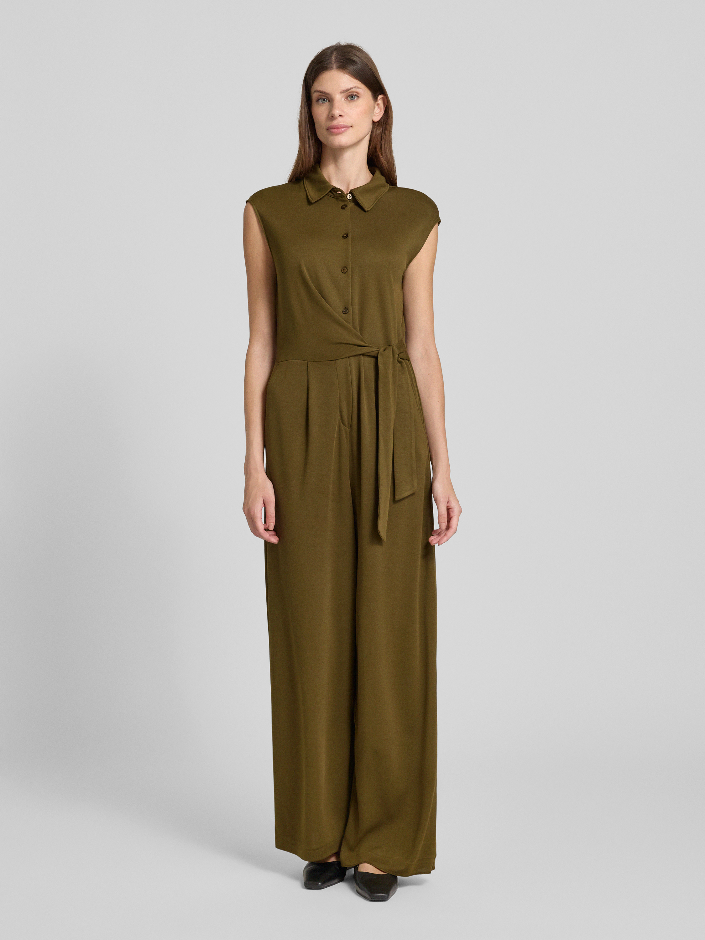 Der Damen Jumpsuit von Zero verbindet einen taillierten Schnitt mit einem Hemdblusenkragen und zeigt durch den Modal-Mix einen angenehm leichten Fall. Durch den elastischen Bund sitzt das Modell bequem, während das Schleifen-Detail eine dezente, feminine Note ergänzt. Ideal geeignet für entspannte wie gepflegte Anlässe.