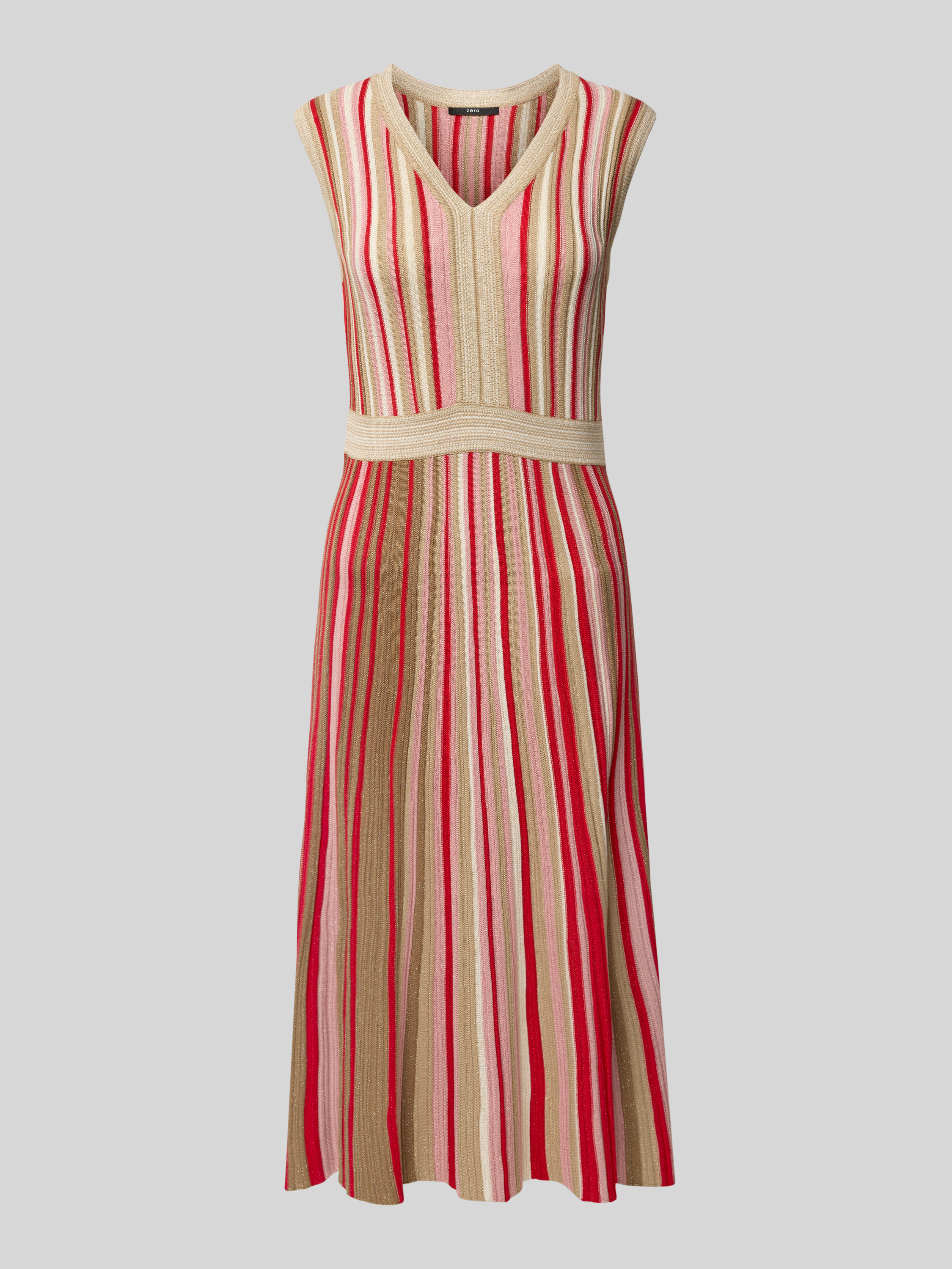 Das Strickkleid von zero präsentiert sich in einem eleganten Viskose-Mix, der angenehm auf der Haut liegt. Durch den geraden Schnitt und die Kappärmel entsteht ein luftiger Tragekomfort, der sich für verschiedene Anlässe eignet. Die Midi-Länge verleiht dem Outfit eine zeitlose Note.