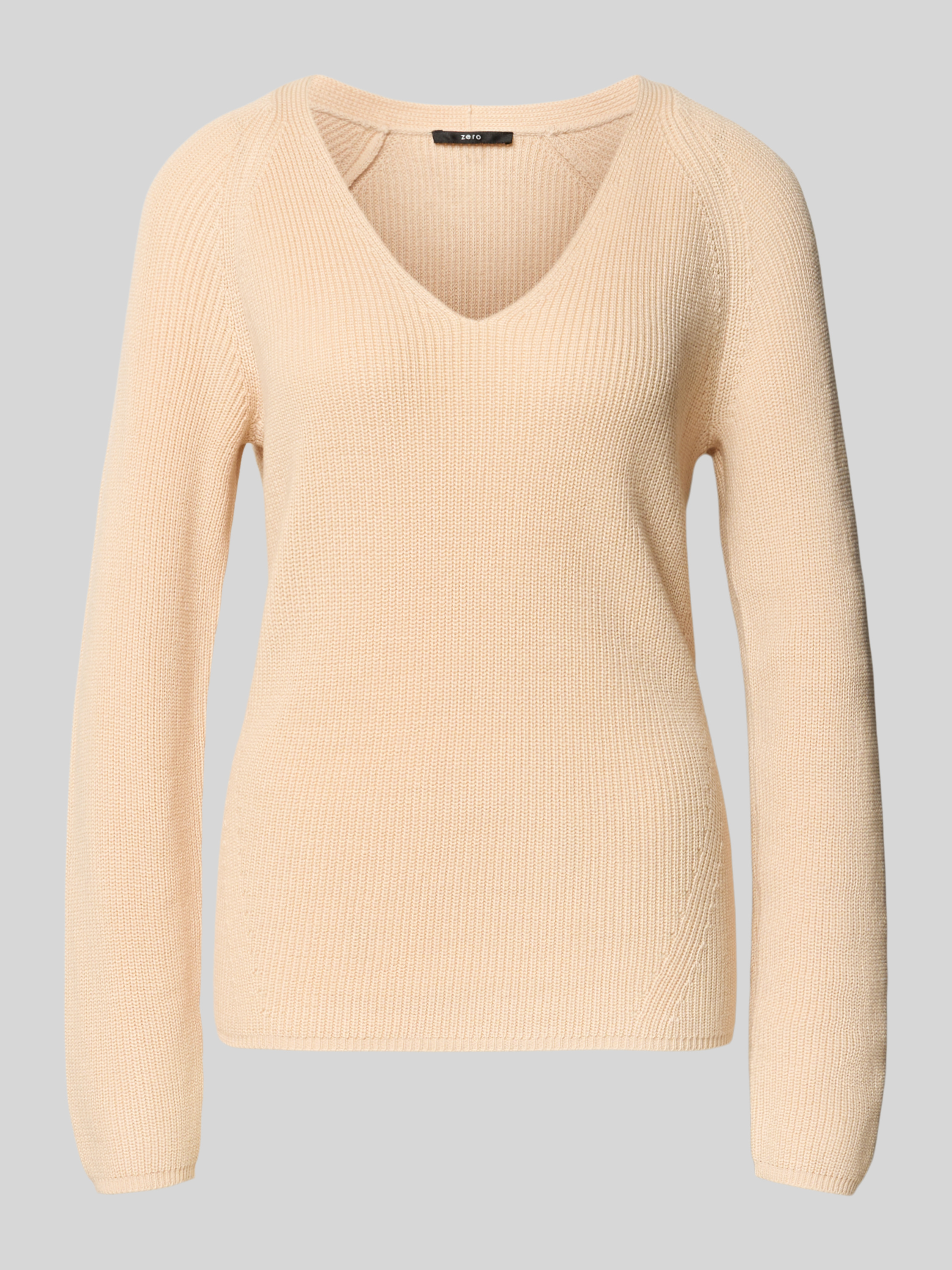 ZeroStrickpullover mit V-Ausschnitt in apricot