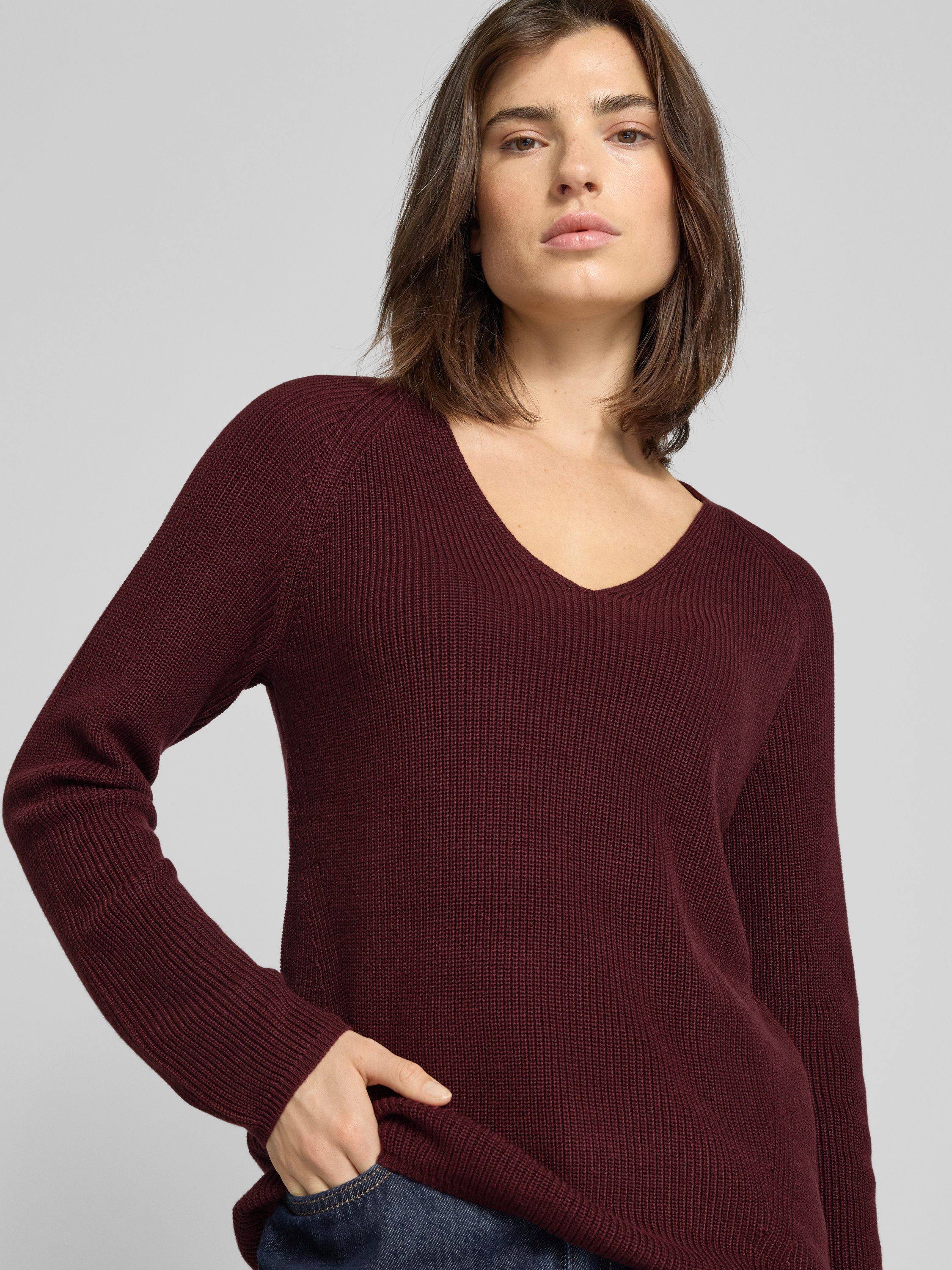 ZeroStrickpullover mit V-Ausschnitt in rot