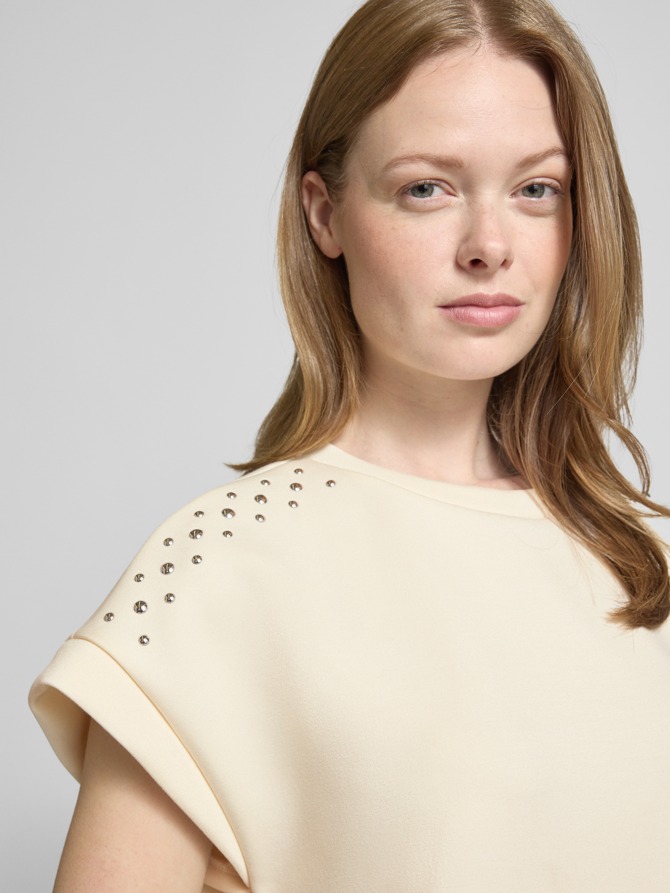 ZeroStrickshirt mit Viskose-Anteil und Nietenbesatz in beige