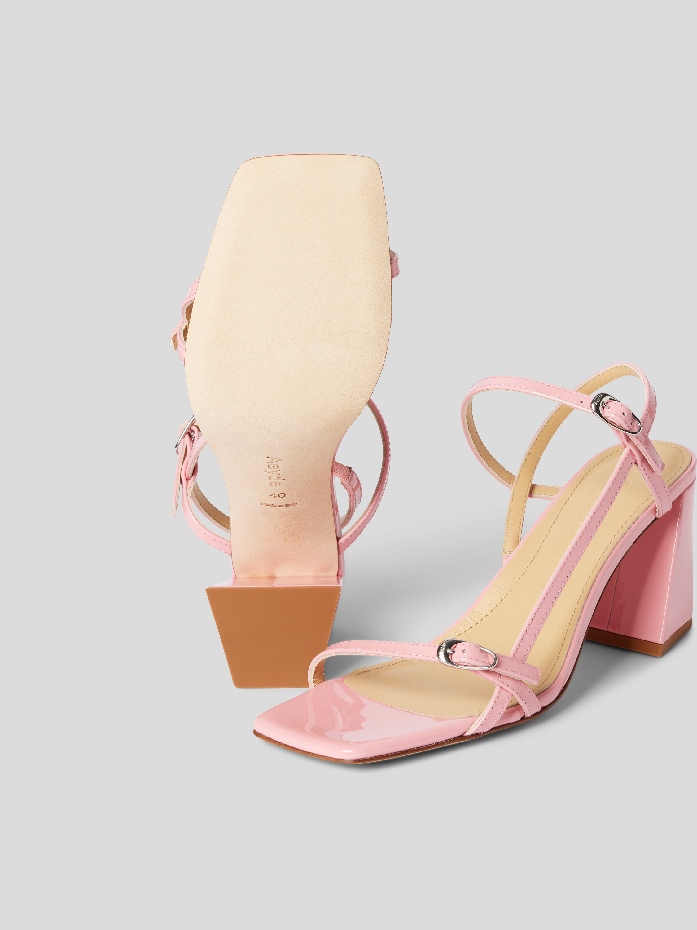Die Sandaletten aus Leder von aeyde zeichnen sich durch feine Riemchen und eine eckige Form aus, wodurch sie einen modernen Eindruck hinterlassen. Dank des Blockabsatzes erhält man einen sicheren Stand, während das hochwertige Leder für ein angenehmes Tragegefühl sorgt. Die Lack-Optik verleiht dem Modell eine elegante Note.