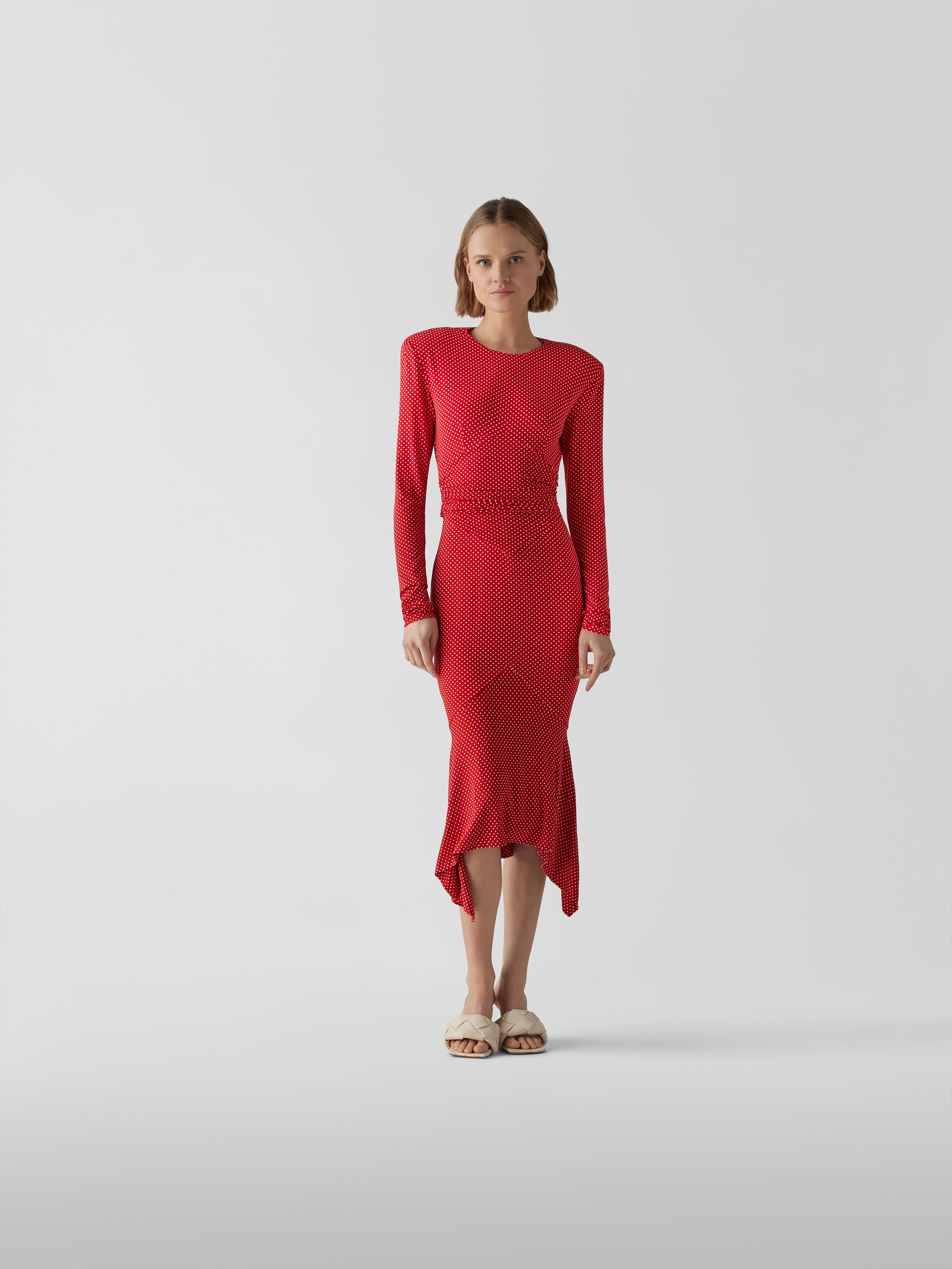 Das Cocktailkleid mit Schulterpolstern von Alexandre Vauthier legt den Fokus auf eine eng anliegende Passform, die durch das langärmelige Design und markante Schulterpartien unterstrichen wird. Durch den Viskose-Elasthan-Mix sitzt das Modell angenehm und passt sich flexibel an. Polka Dots verleihen dem Look eine lebendige Note.
