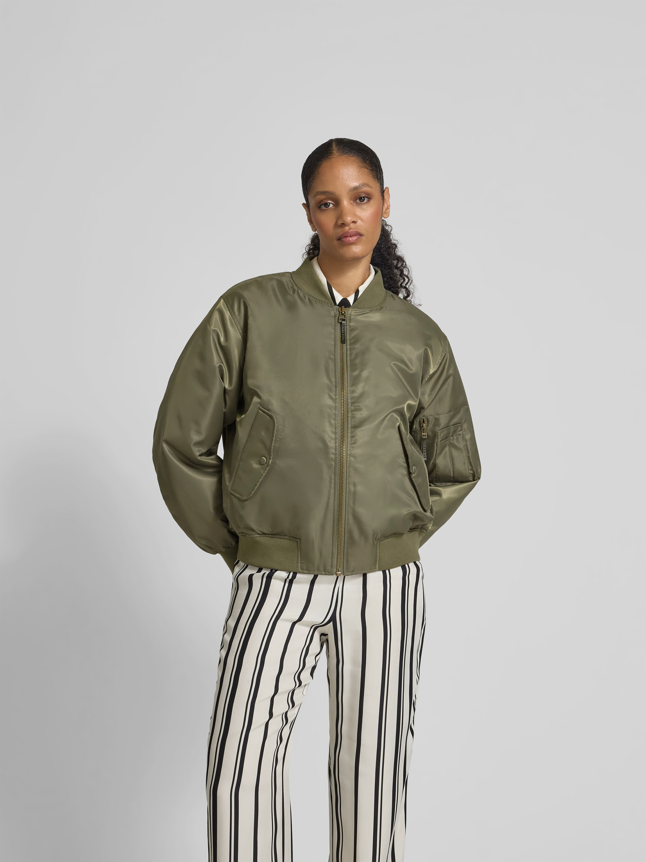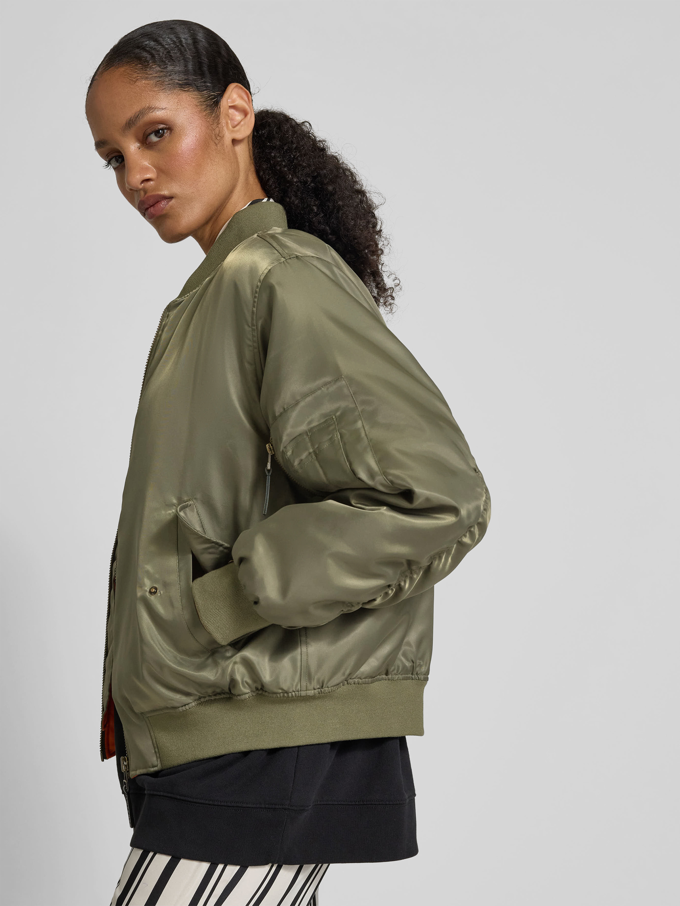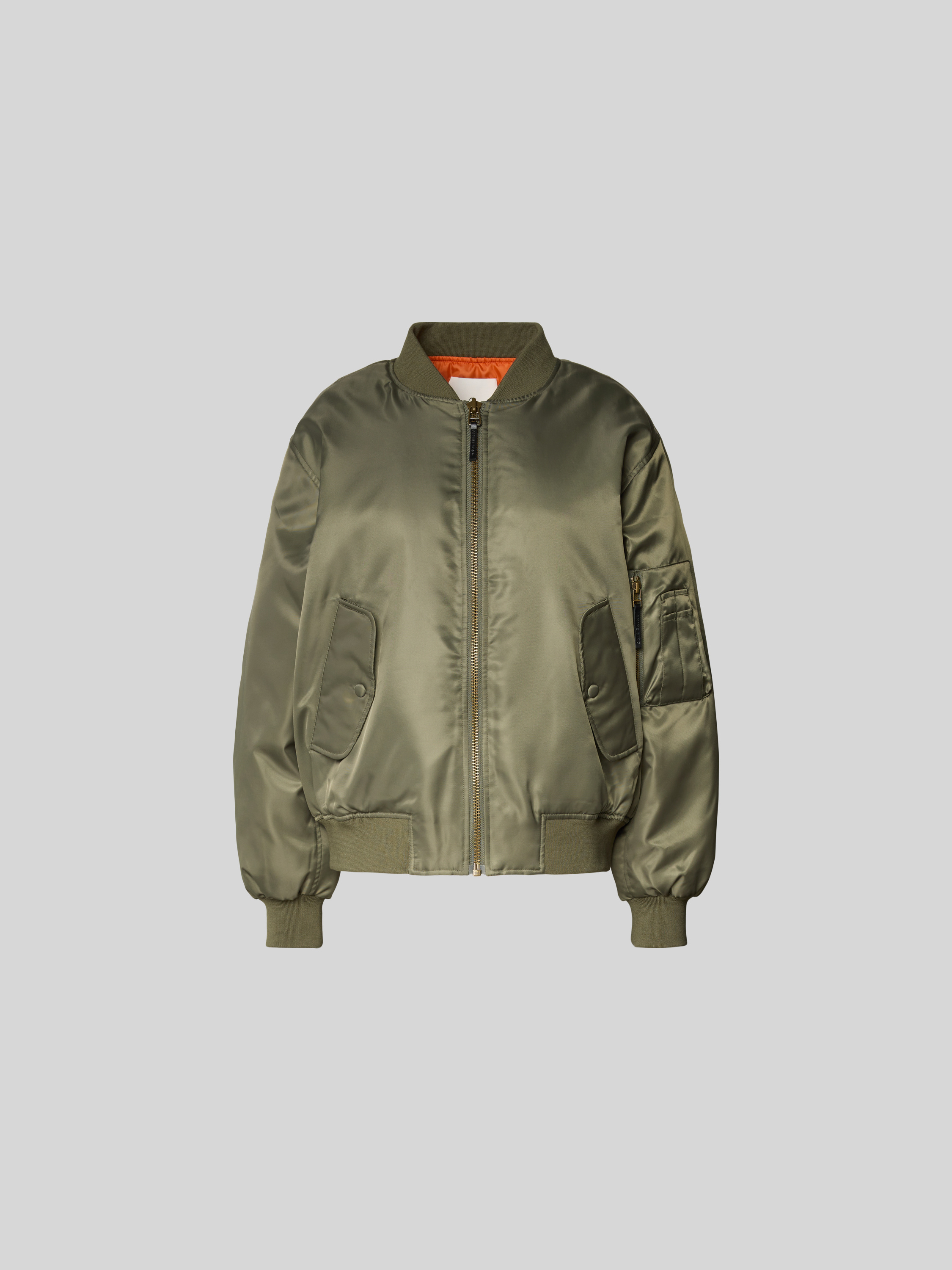 Die Damen Bomberjacke von Anine Bing kombiniert einen lässigen, lockeren Schnitt mit einem praktischen Stehkragen. Pattentaschen bieten Platz für Kleinigkeiten, während die gerippten Abschlüsse für eine angenehme Passform sorgen. Ideal für einen entspannten, stilvollen Auftritt.