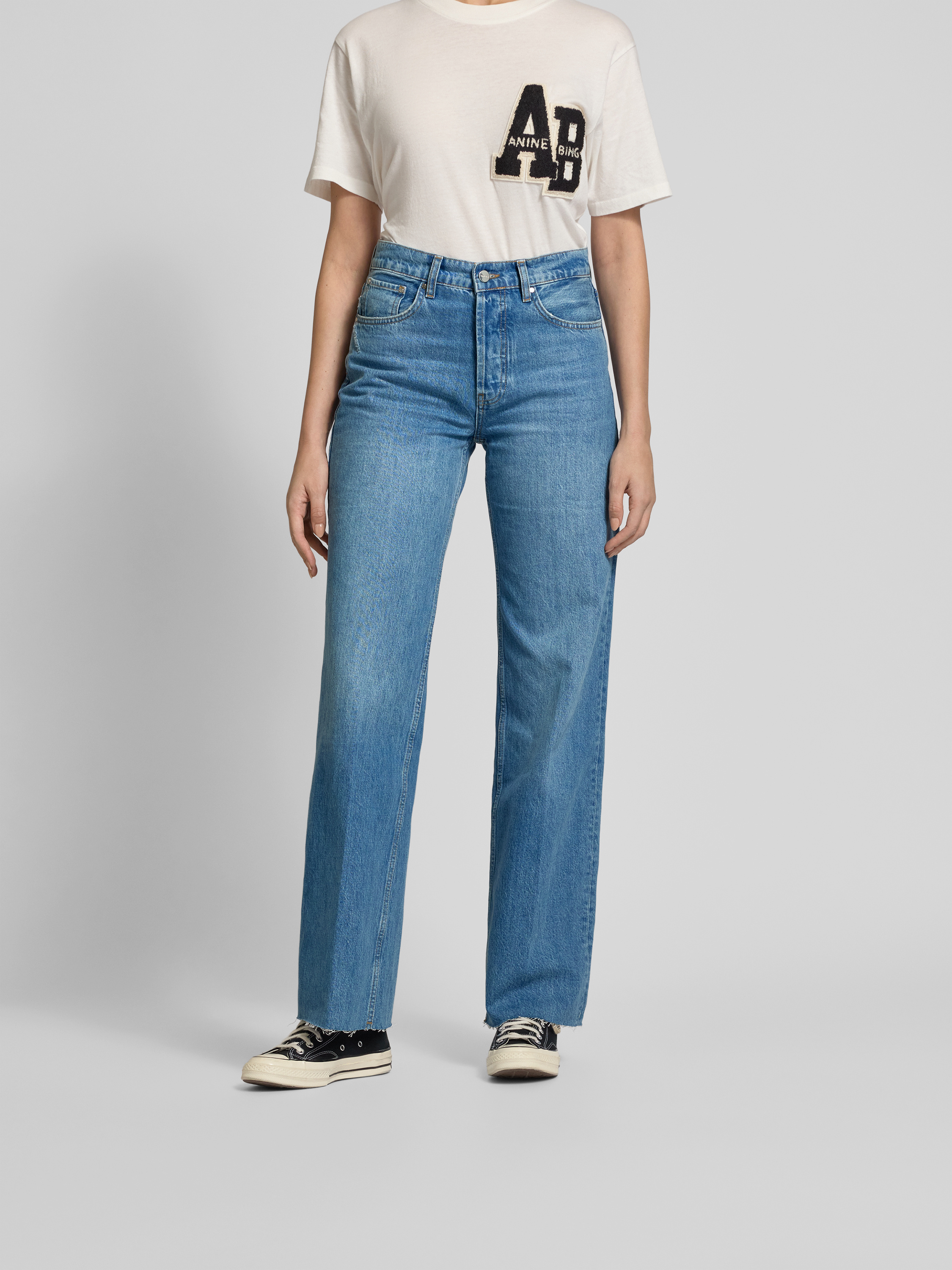 Die Damen Jeans von ANINE BING aus reiner Baumwolle präsentiert sich mit geradem Schnitt und klassischem 5-Pocket-Design. Durch die angenehme Passform lässt sich der Alltag entspannt gestalten, während das robuste Material zuverlässig Struktur verleiht. So entsteht ein vielseitiger Begleiter für verschiedenste Kombinationen.