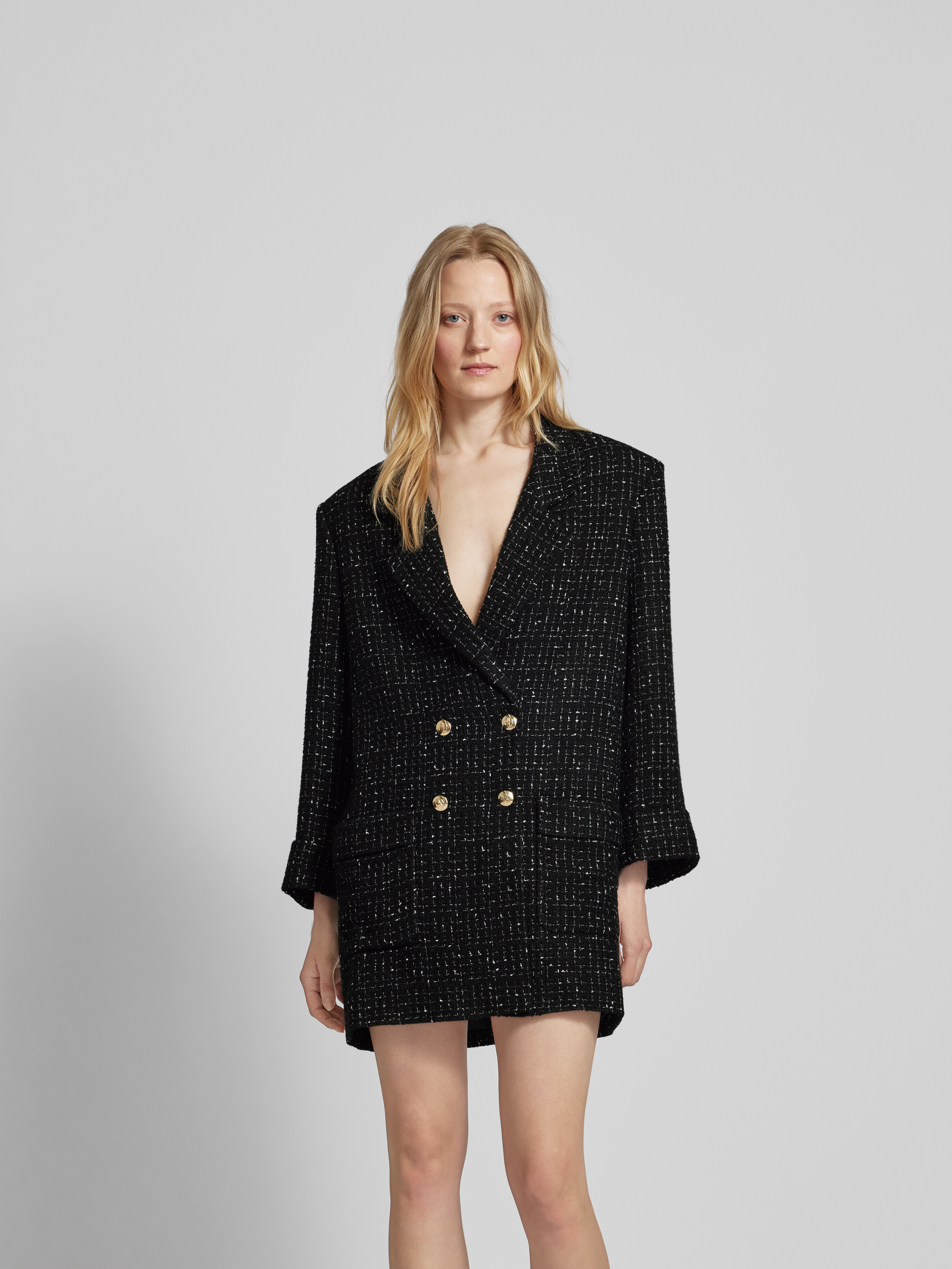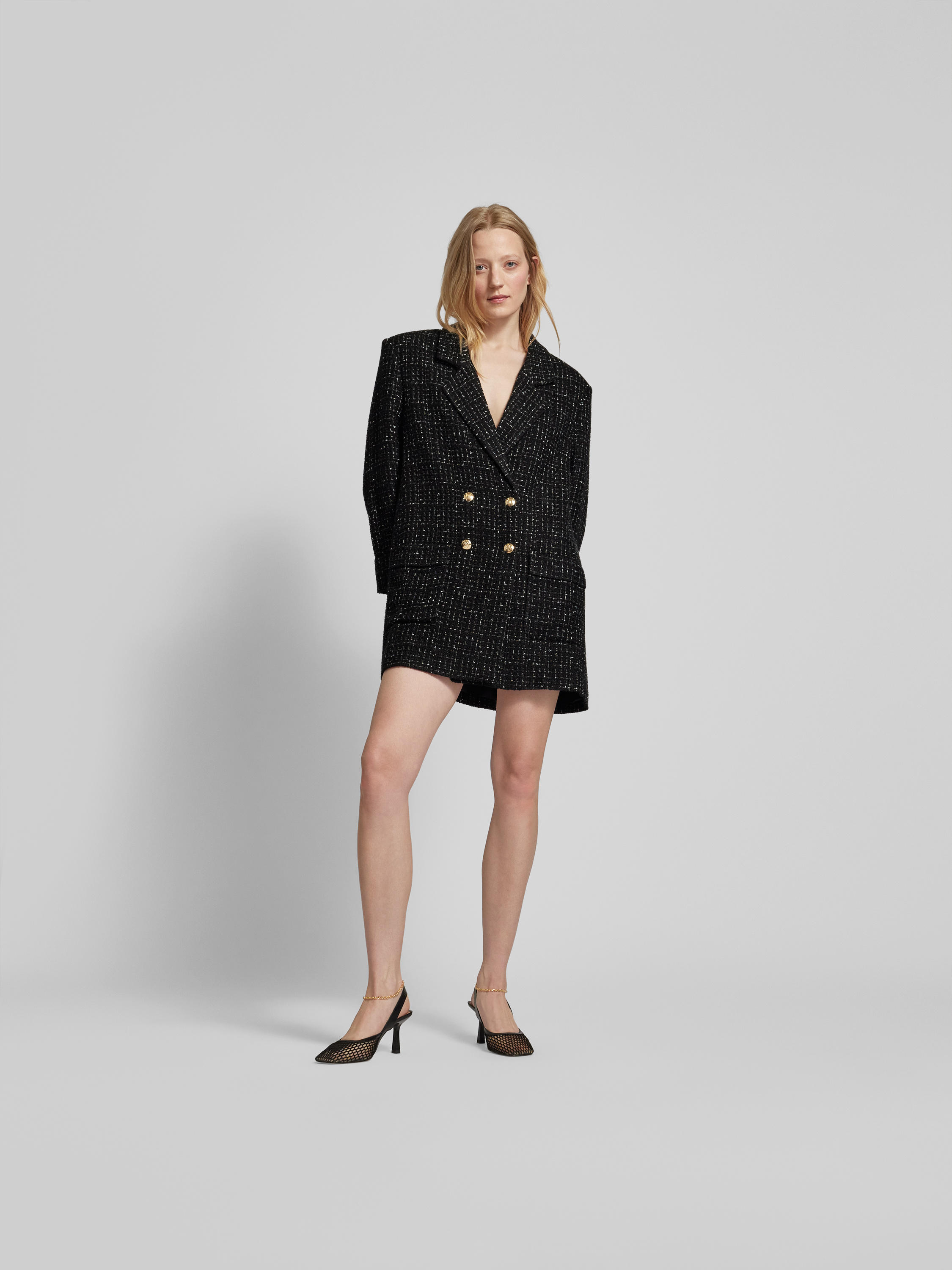 Das Minikleid mit Allover-Muster von ANINE BING verbindet einen geraden Schnitt mit einem dezenten Lanawoll-Anteil, der für ein angenehmes Tragegefühl sorgt. Durch das durchgehende Muster und den klassischen Reverskragen erhält das Modell einen frischen, vielseitigen Charakter. So eignet sich das Kleid sowohl für entspannte Anlässe als auch für stilvolle Auftritte.