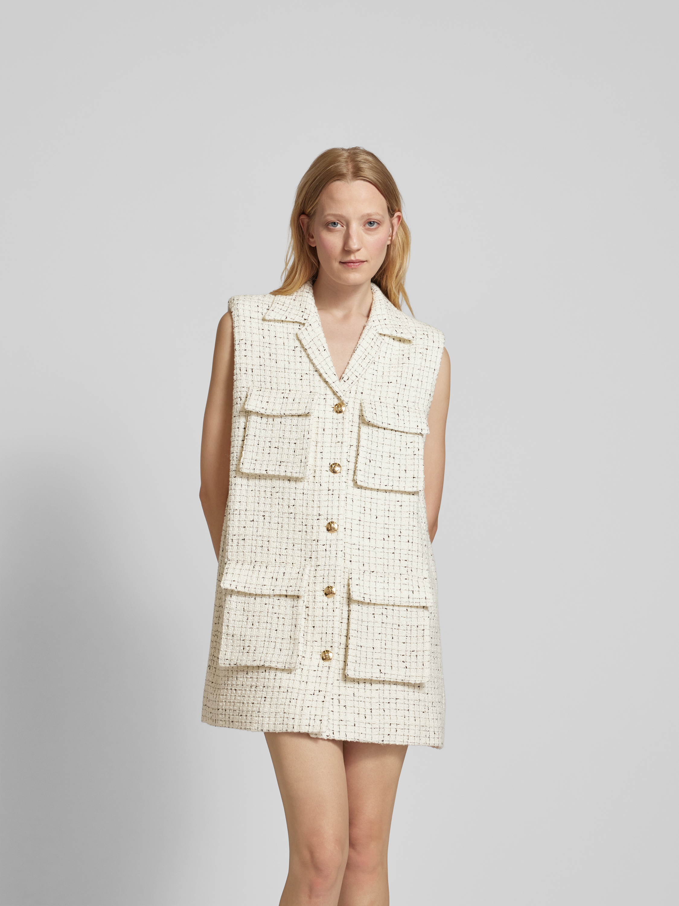 Das Minikleid mit Allover-Muster von ANINE BING verbindet einen geraden Schnitt mit angenehm leichtem Material-Mix und einem Lanawoll-Anteil, wodurch es sich weich auf der Haut anfühlt. Das ärmellose Design lässt Bewegungsfreiheit zu, während aufgesetzte Pattentaschen praktische Details hinzufügen. So eignet sich dieses Kleid vielseitig für verschiedene Anlässe.