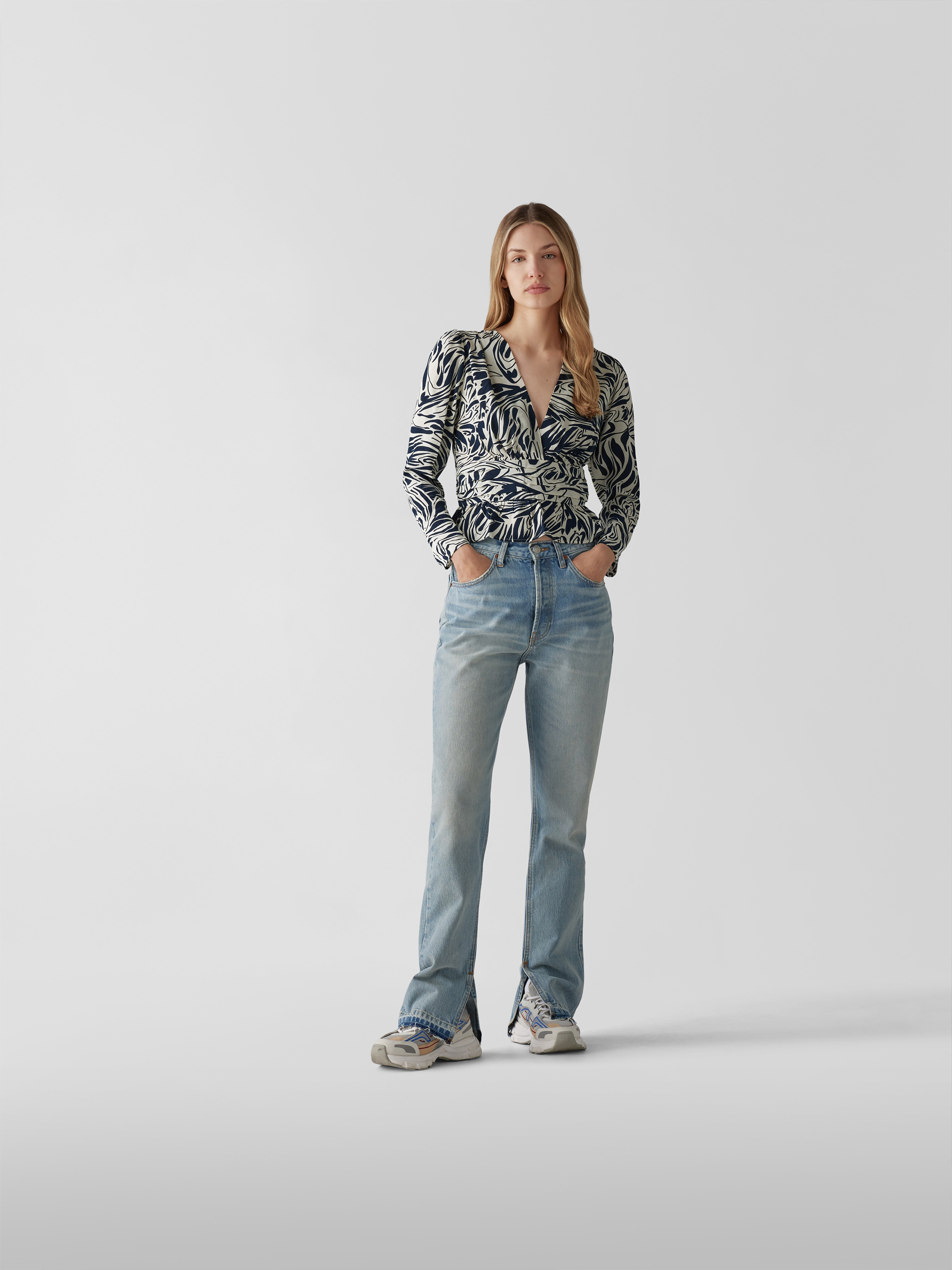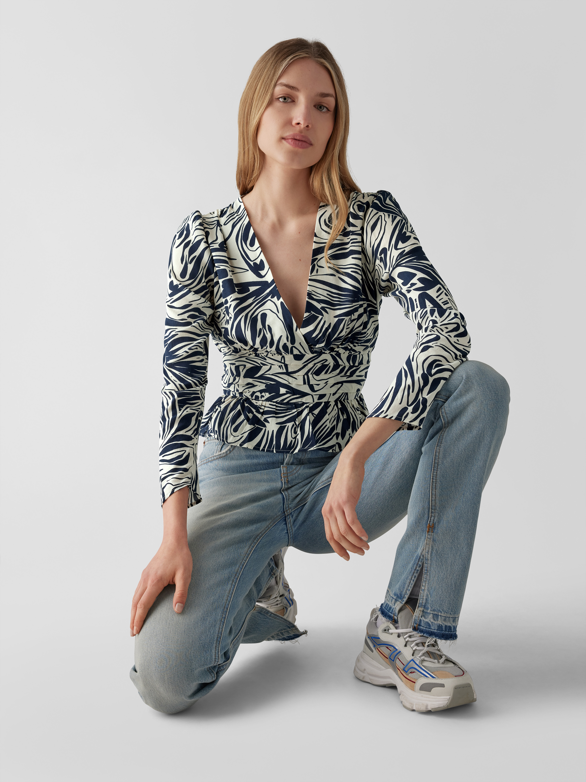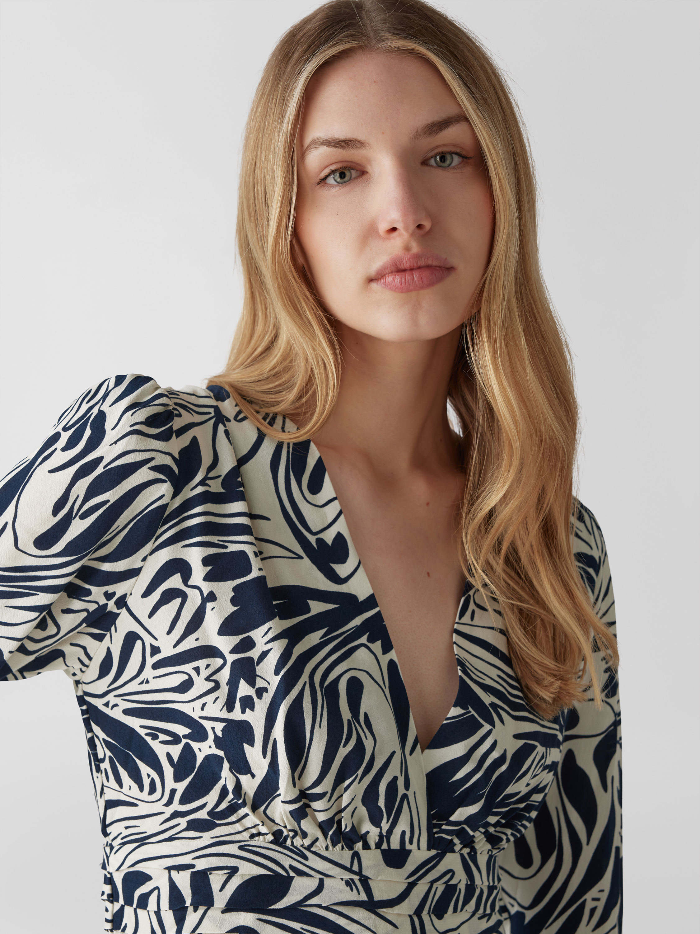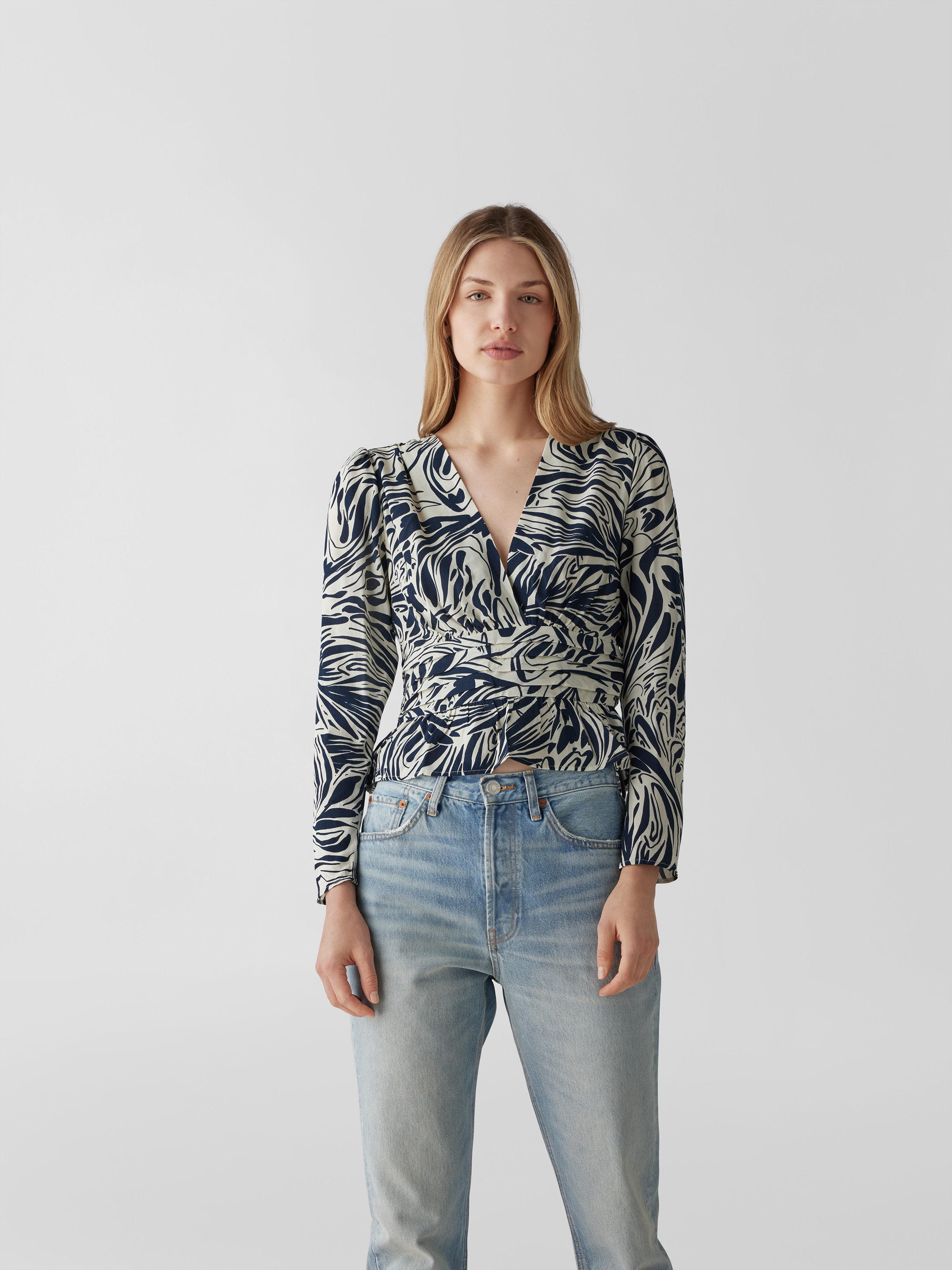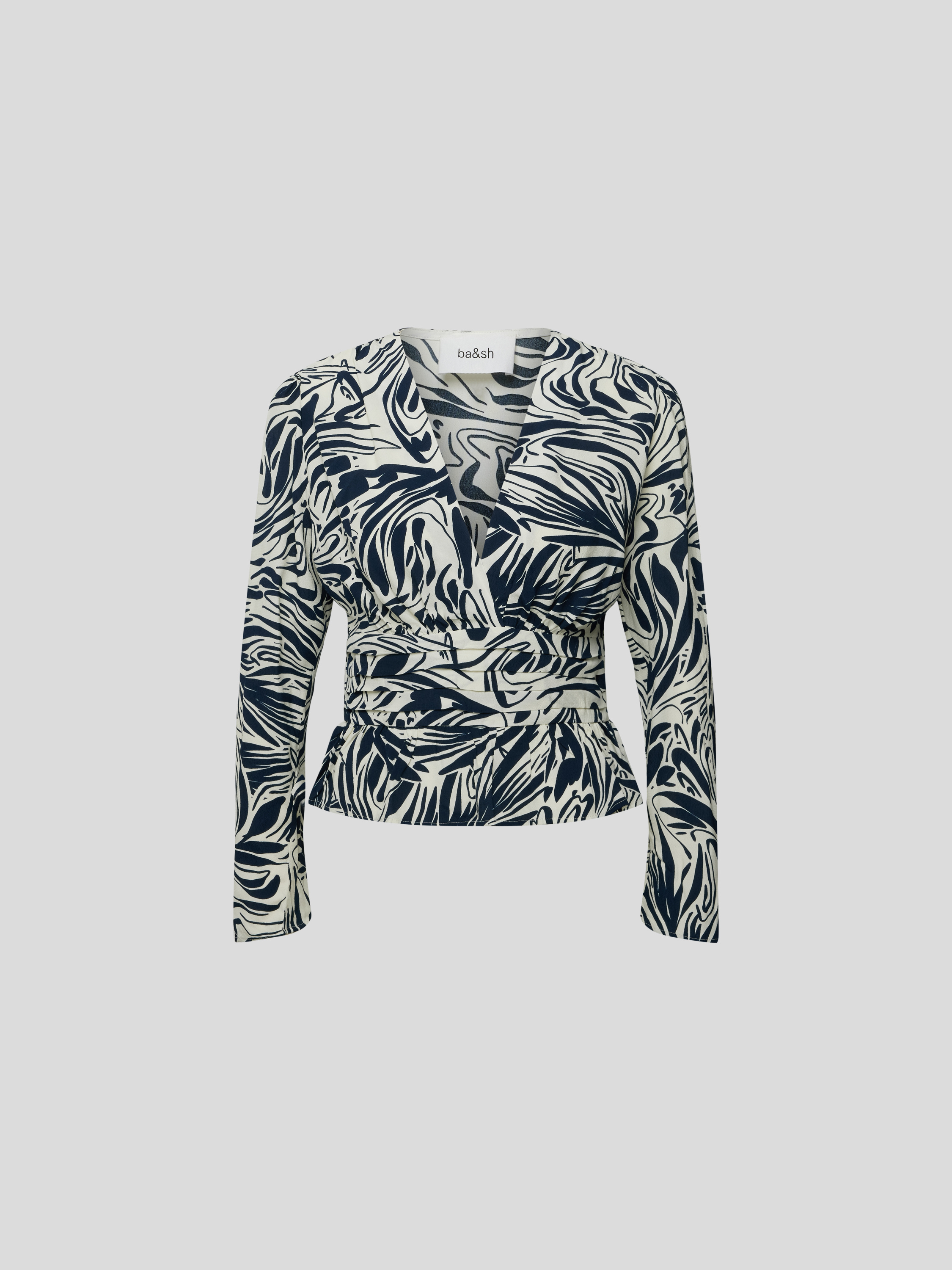 Das Damen Blusenshirt von ba&sh zeigt mit taillierter Passform und grafischem Allover-Muster eine moderne Silhouette. Durch den V-Ausschnitt entsteht ein luftiger Eindruck, während das langärmelige Design angenehm durch verschiedene Jahreszeiten begleitet. Reine Viskose trägt sich leicht und sorgt für ein angenehmes Gefühl.