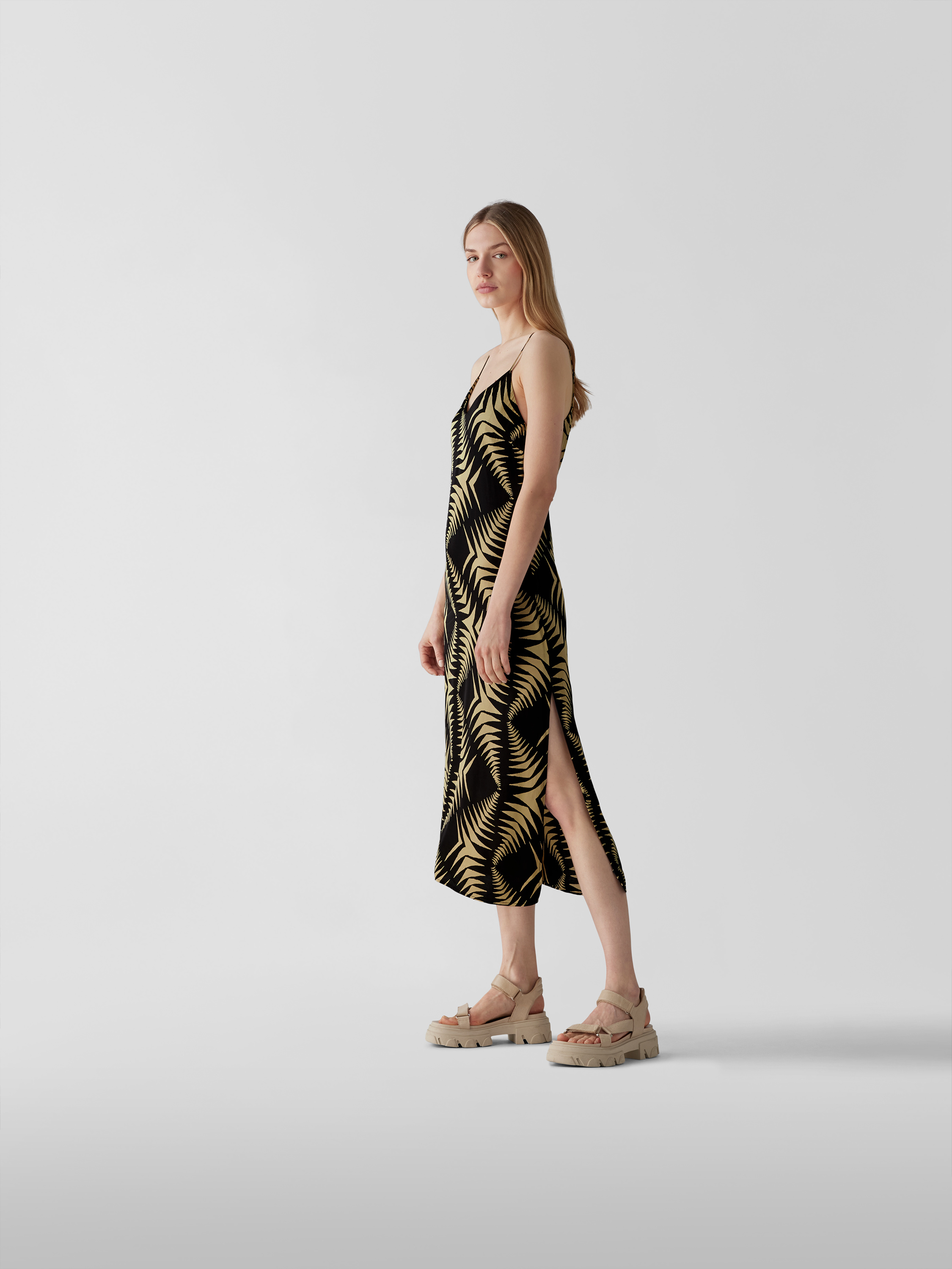Das Damen Kleid von ba&sh zeigt sich mit taillierter Passform und betont durch den tiefen Rückenausschnitt eine feminine Silhouette. Die knielange Ausführung mit Spaghettiträgern sorgt für Leichtigkeit, während reine Viskose ein angenehmes Tragegefühl im Alltag unterstützt. So lässt sich das Modell vielseitig kombinieren.
