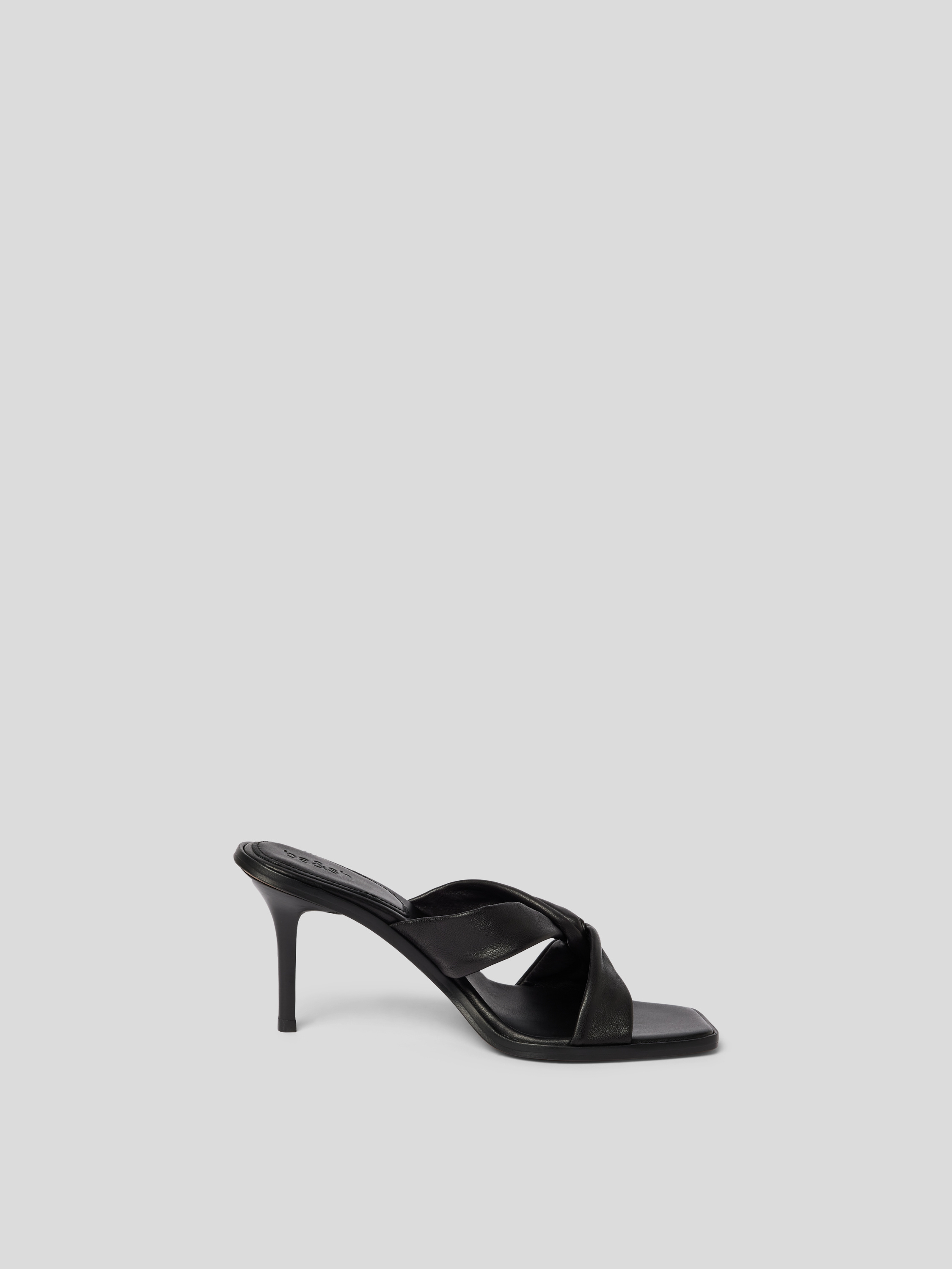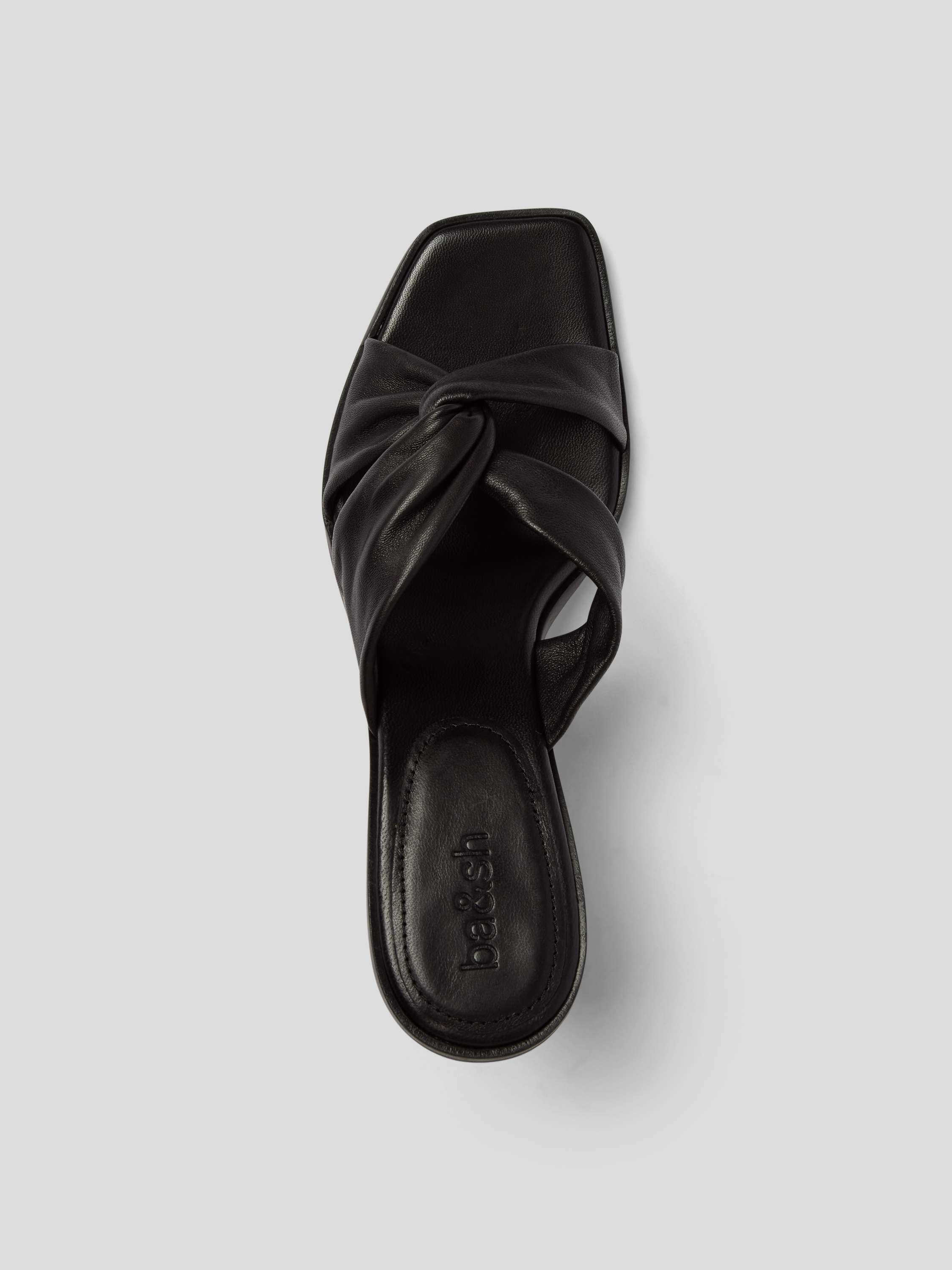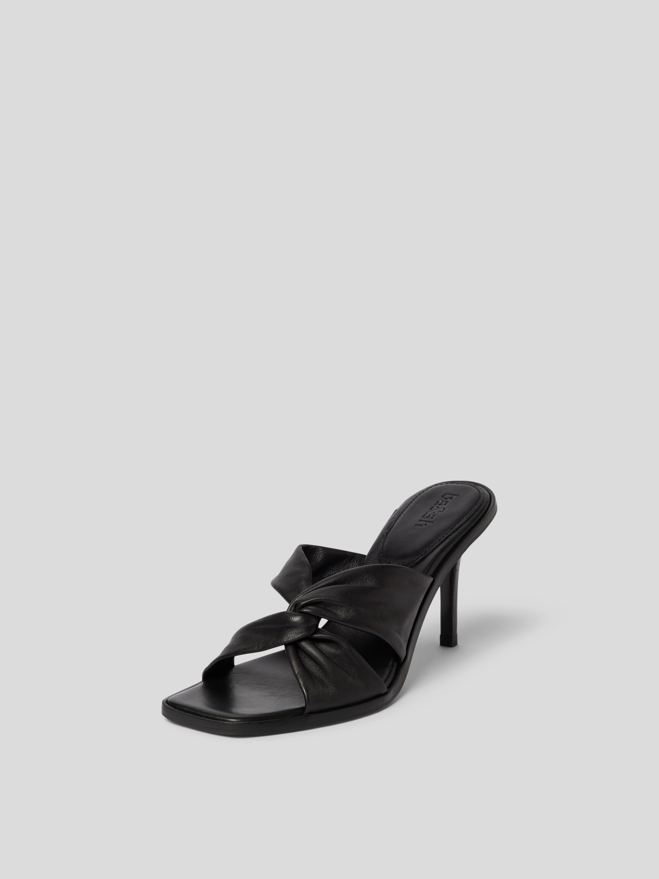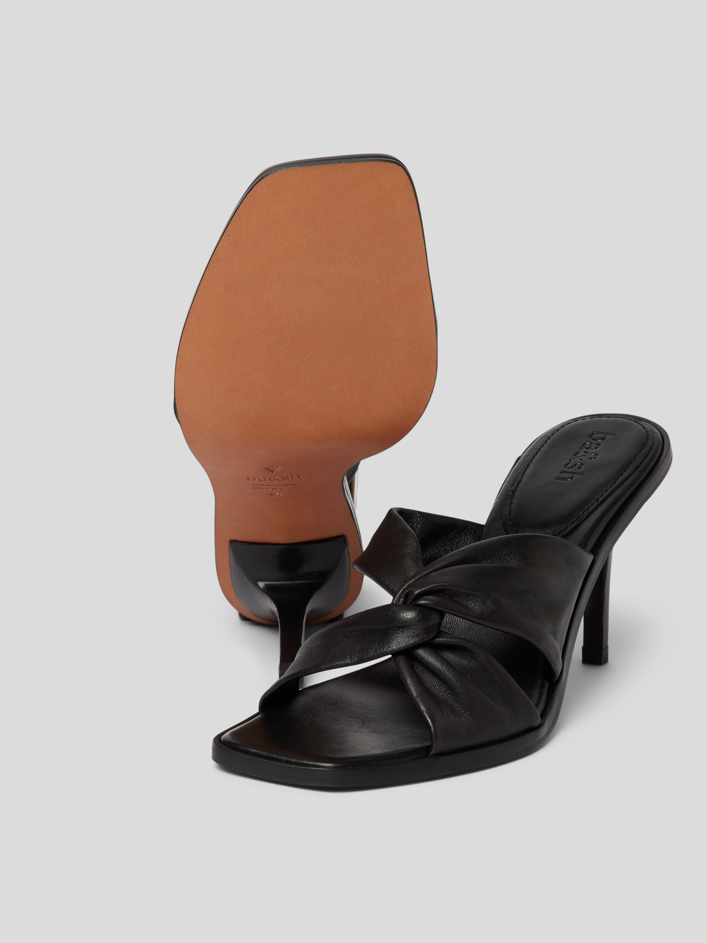 Dank der unifarbenen Gestaltung und des hohen Pfennigabsatzes bestechen diese Mules der Premiumbrand ba&sh mit einem eleganten Erscheinungsbild. Ein angenehmes Tragegefühl wird durch die breiten Riemen in gekreuzter Form sowie die offene Ferse garantiert. Die hochwertige Verarbeitung des echten Leders und die glatte Sohle komplettieren die Designerstücke stilvoll.