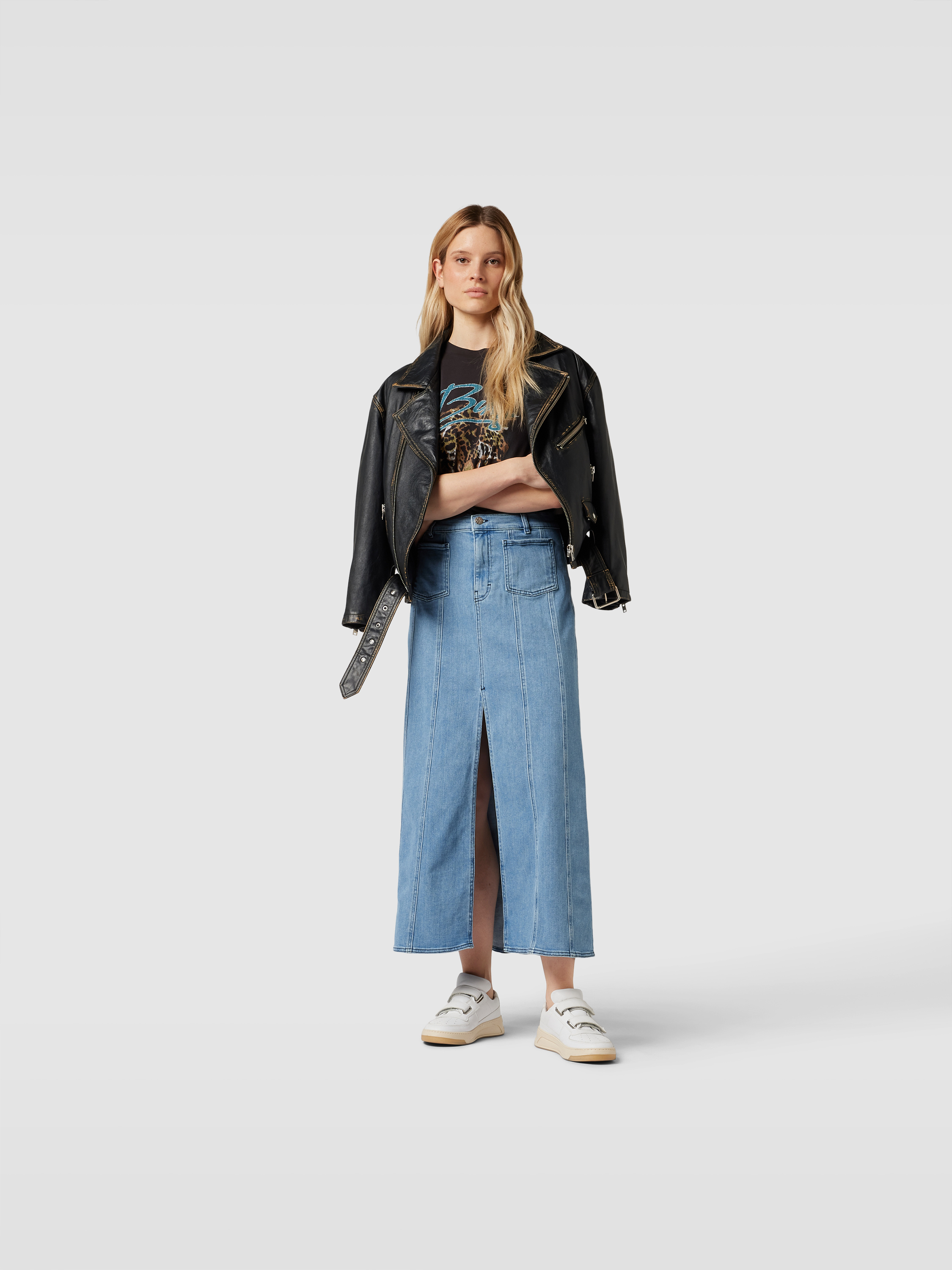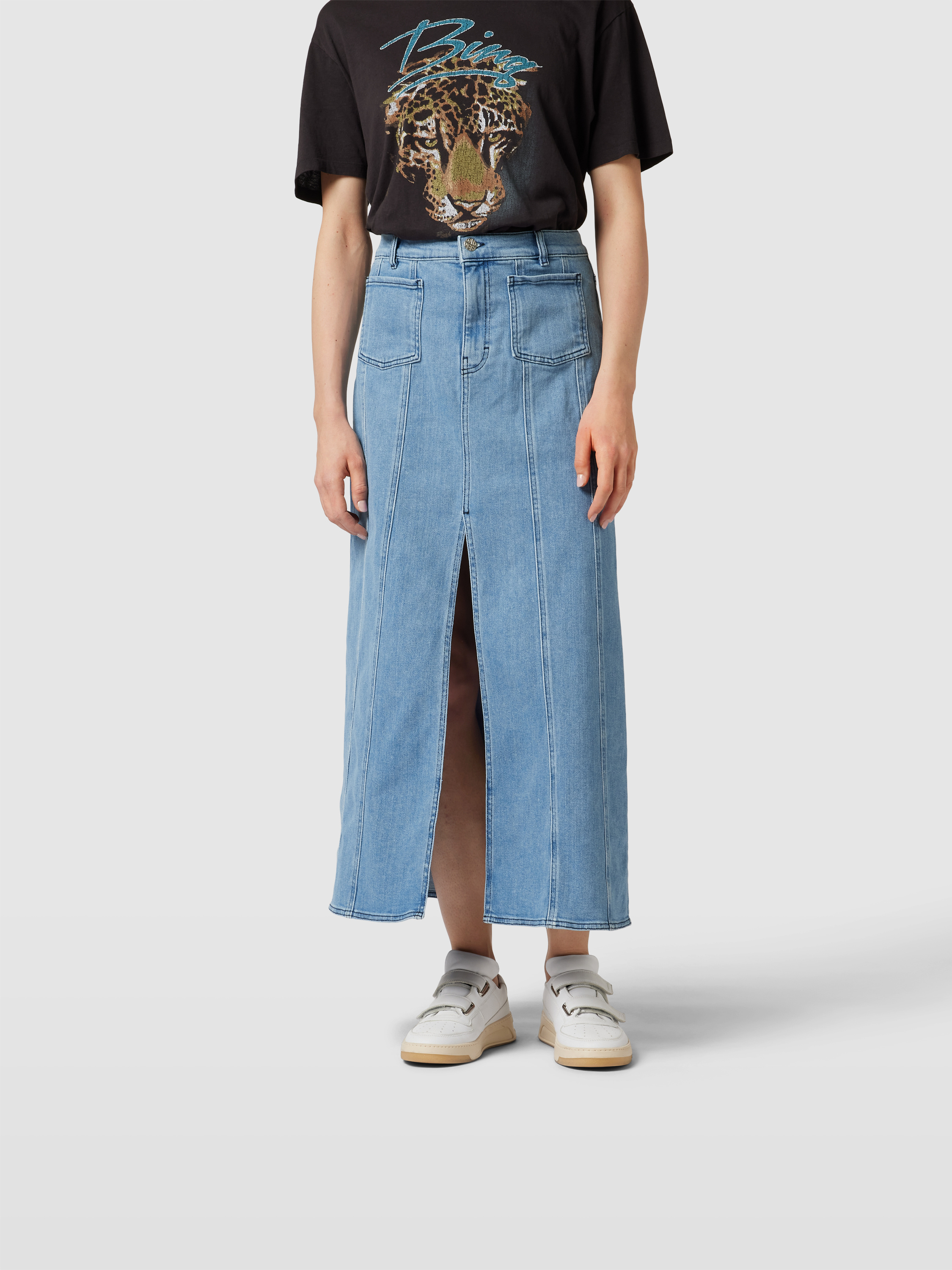 Der Damen Jeansrock von Baum und Pferdgarten zeigt sich in einem Baumwoll-Elasthan-Mix, wodurch Bewegungsfreiheit und angenehmes Tragegefühl entstehen. Durch die lockere Passform lässt sich dieser Jeansrock mit Knopfverschluss vielseitig kombinieren. Praktische Eingrifftaschen und ein Gehschlitz unterstützen den Alltag.
