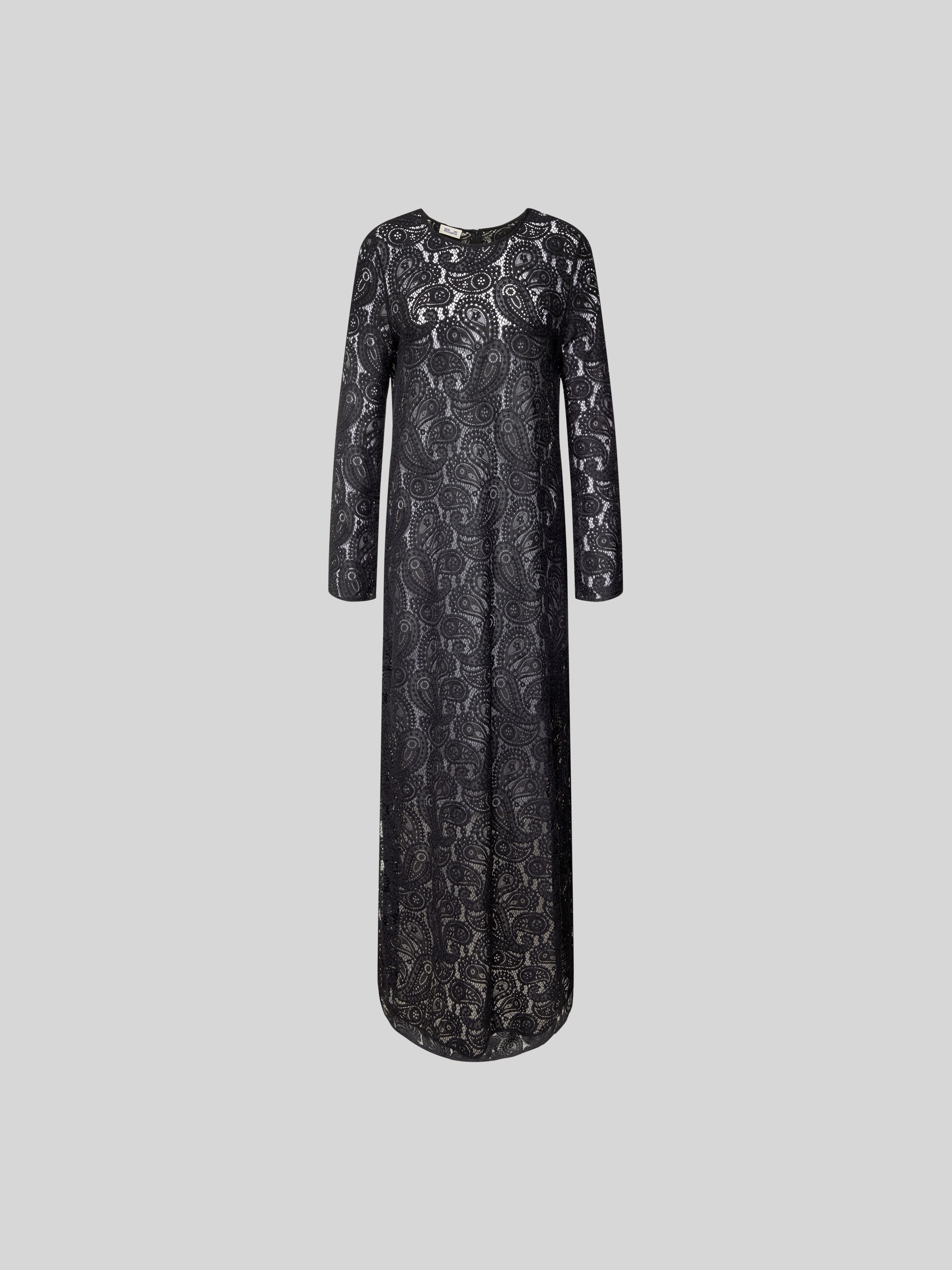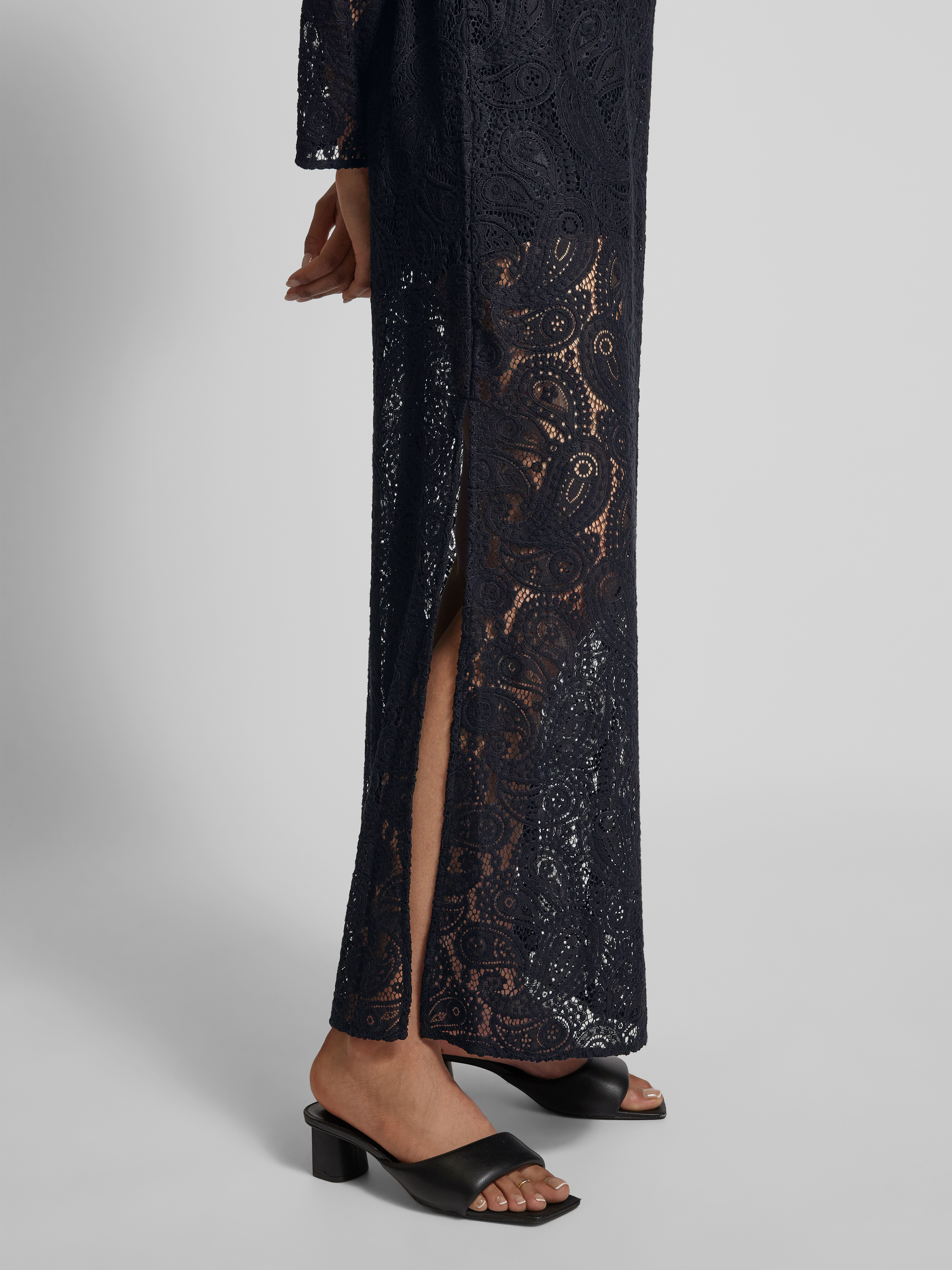 Das Maxikleid mit Lochmuster von Baum und Pferdgarten fällt durch seinen lockeren Schnitt angenehm fließend und gewährt viel Bewegungsfreiheit. Das langärmelige Design mit Rundhalsausschnitt sorgt für eine entspannte Silhouette, während das filigrane Muster dezent Akzente setzt. So eignet sich dieses Kleid für verschiedenste Anlässe.