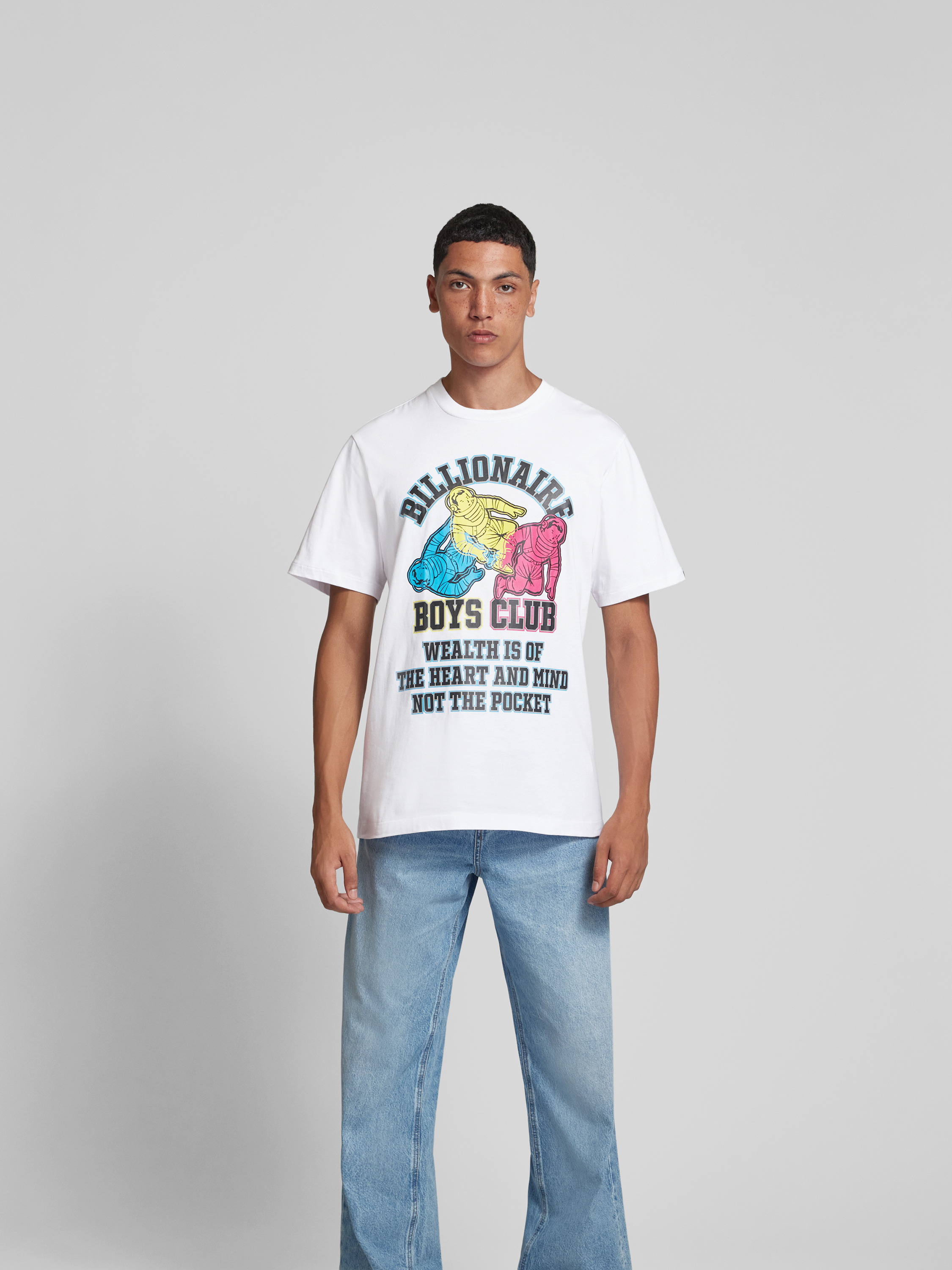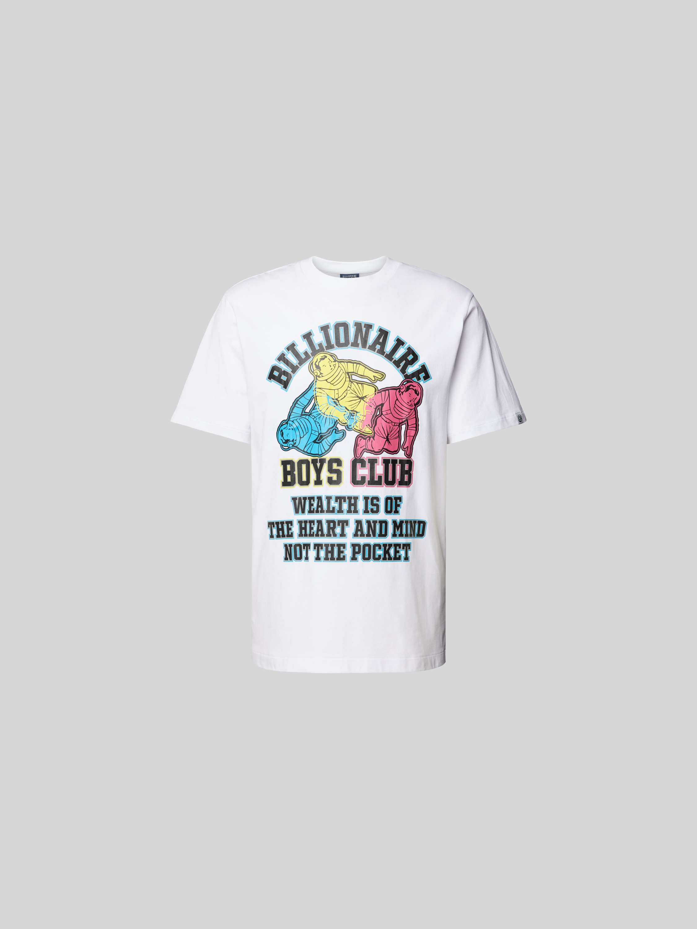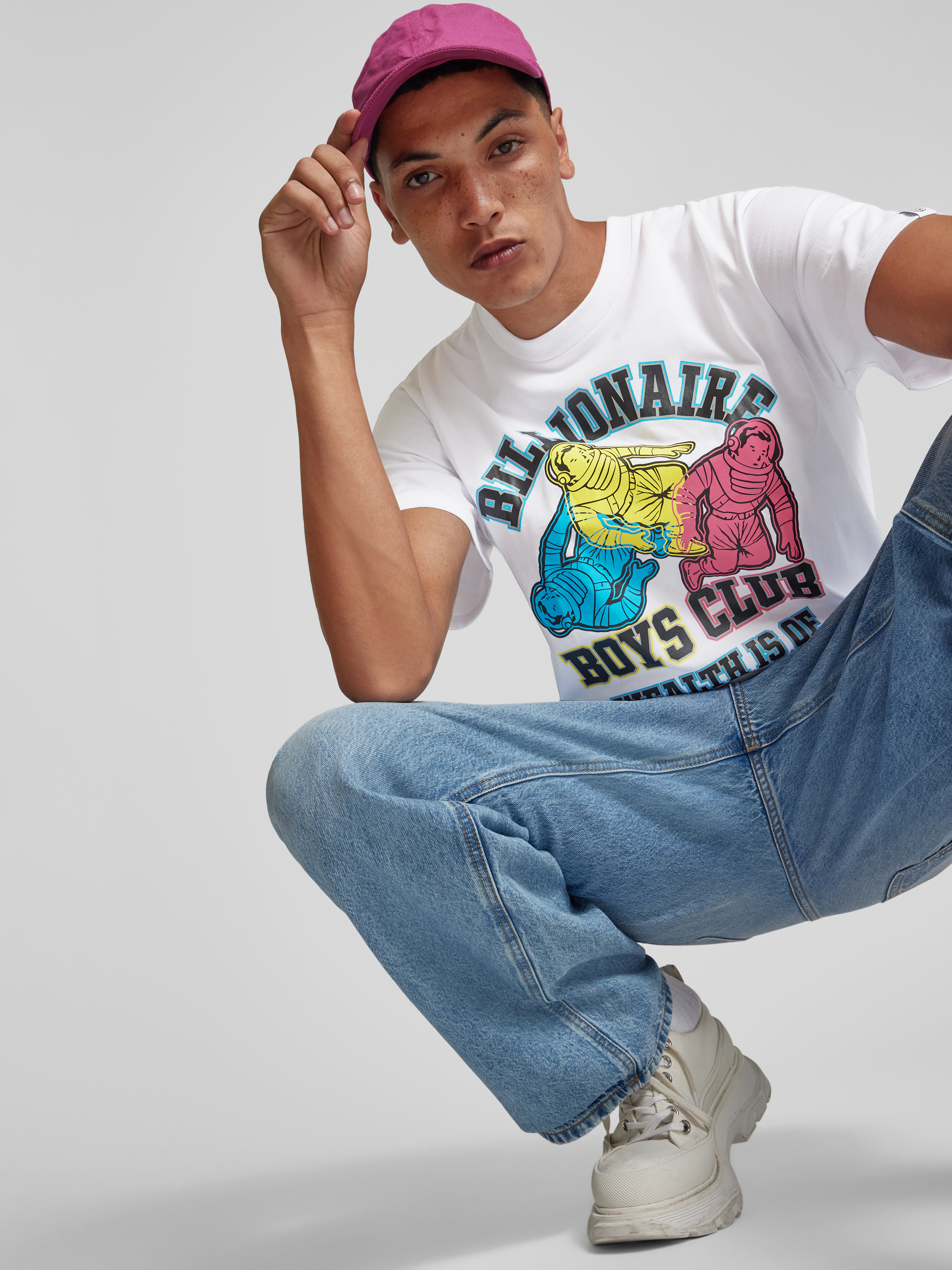 Das Herren T-Shirt von Billionaire Boys Club zeichnet sich durch reine Baumwolle und einen angenehm geraden Schnitt aus, wodurch es vielseitig tragbar bleibt. Ein markanter Statement-Print setzt einen modernen Akzent, während der klassische Rundhalsausschnitt für bequemen Sitz sorgt. Dezente Label-Details runden das Gesamtbild ab.