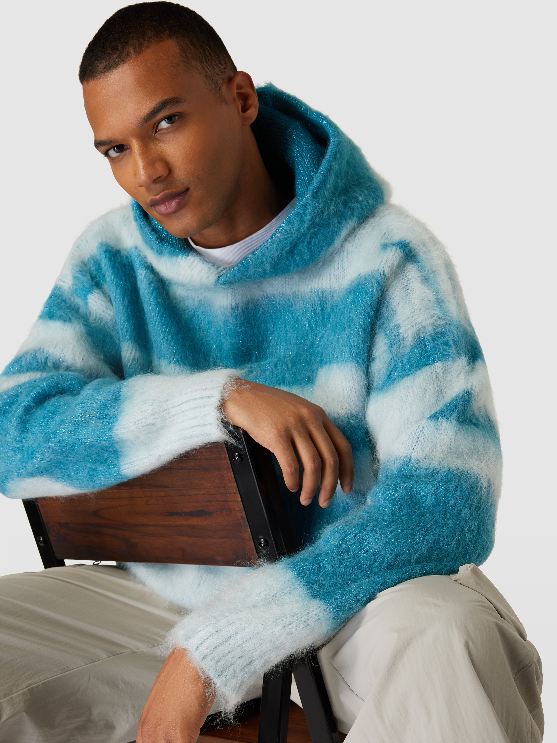 Der Herren Hoodie von Bonsai fällt durch seine lockere Oversized-Form auf und bringt mit seiner Fell-Optik einen angenehmen Akzent in den Alltag. Dank Mohair-Mix fühlt sich das Material besonders weich an. Mit Kapuze und gerippten Abschlüssen lässt sich unkompliziert ein entspannter Look gestalten.
