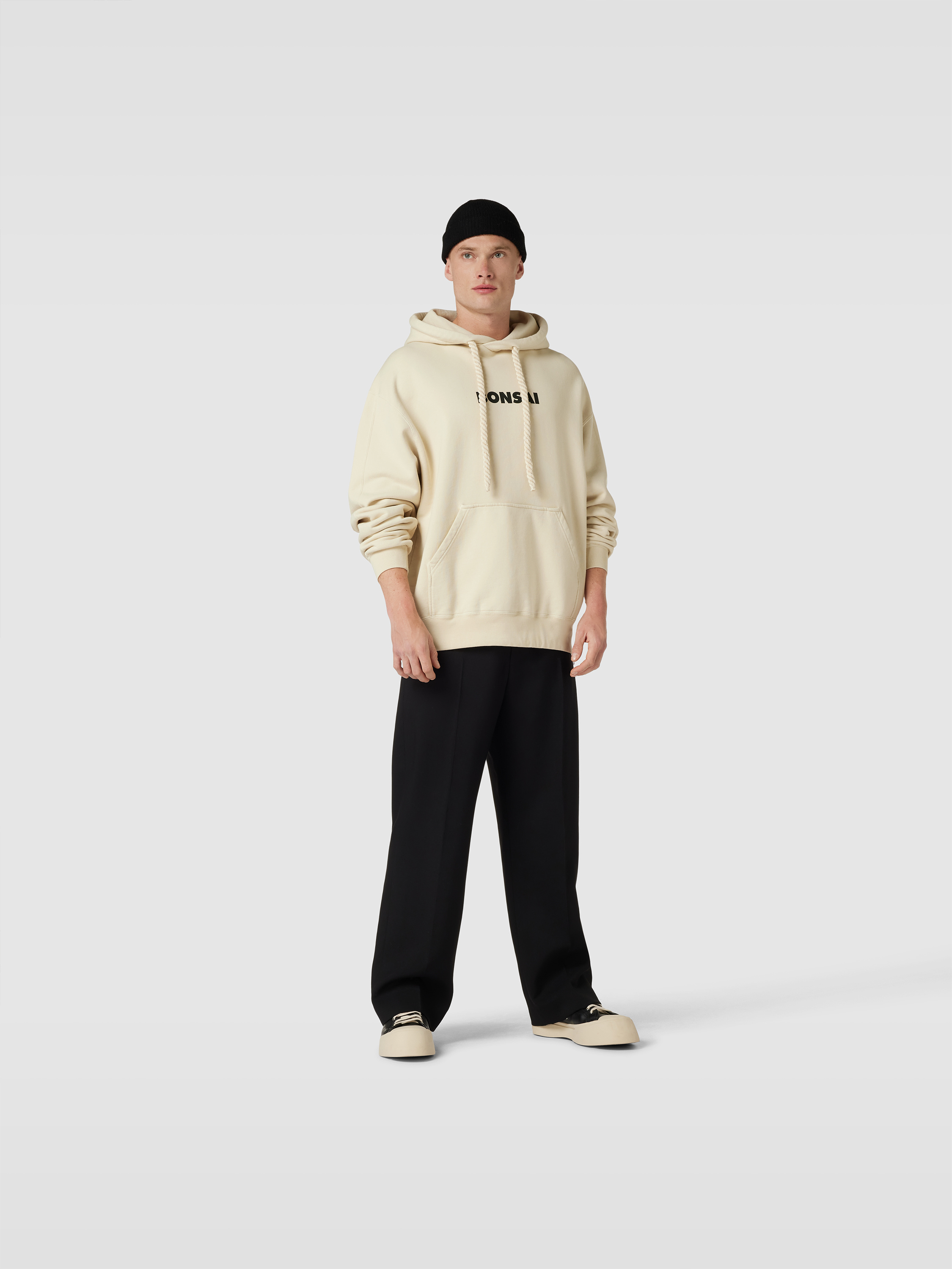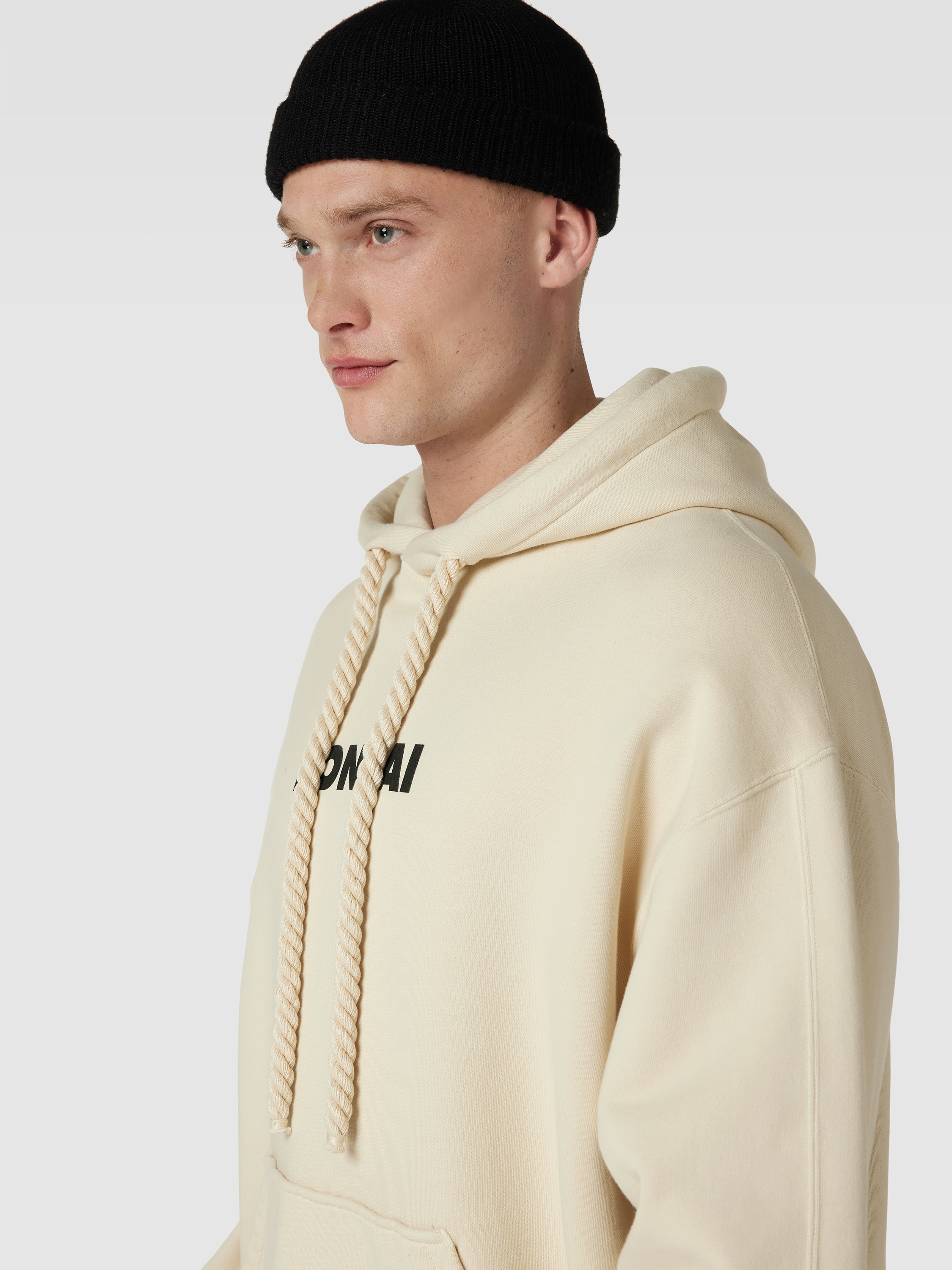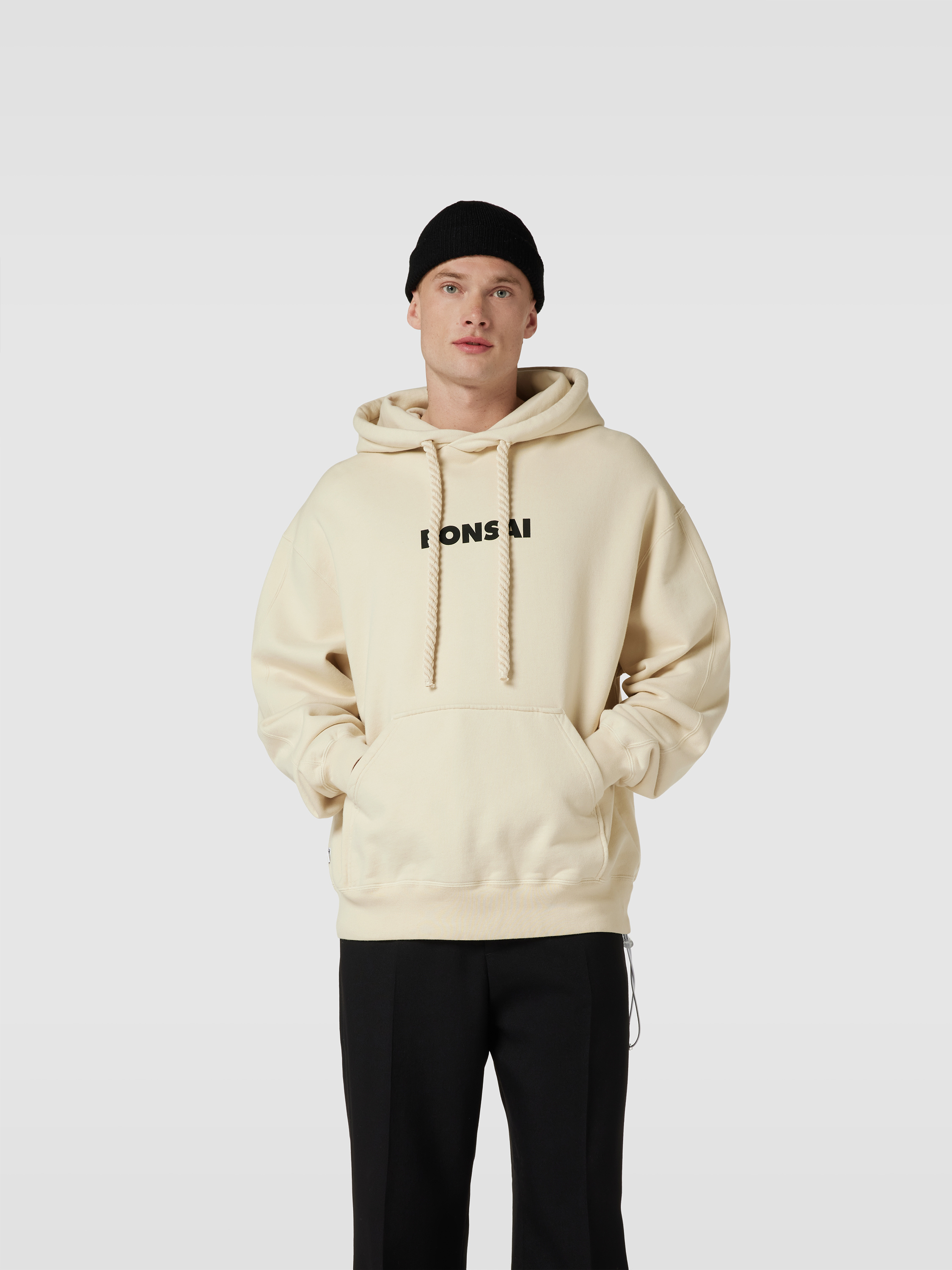 Der Herren Oversized Hoodie von Bonsai aus reiner Baumwolle legt sich angenehm auf die Haut und sorgt mit großzügigem Schnitt für Bewegungsfreiheit im Alltag. Ein auffälliger Label-Print setzt dezente Akzente, während die Kapuze praktisch vor Wind schützt. In der Känguru-Tasche lassen sich Kleinigkeiten bequem verstauen.