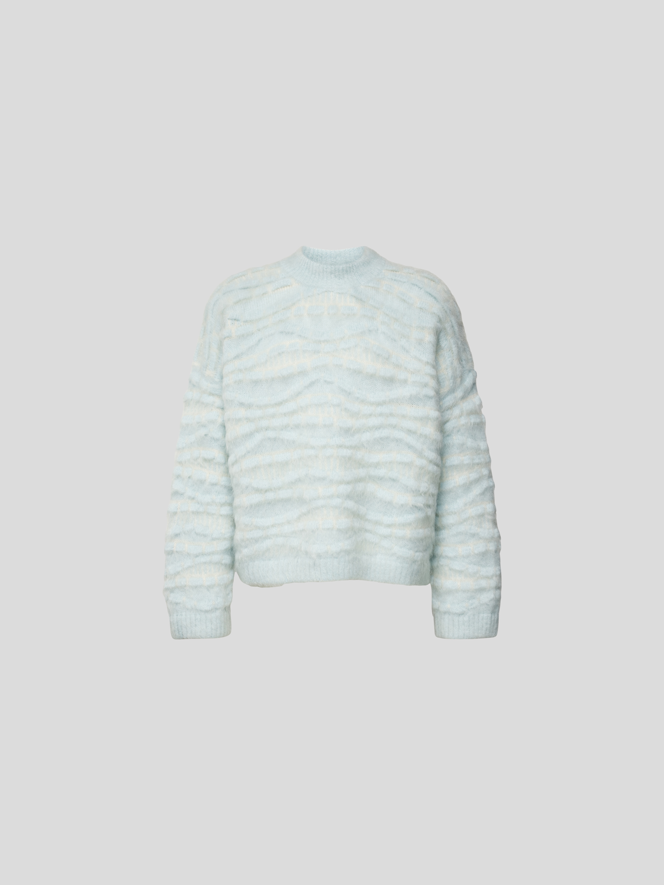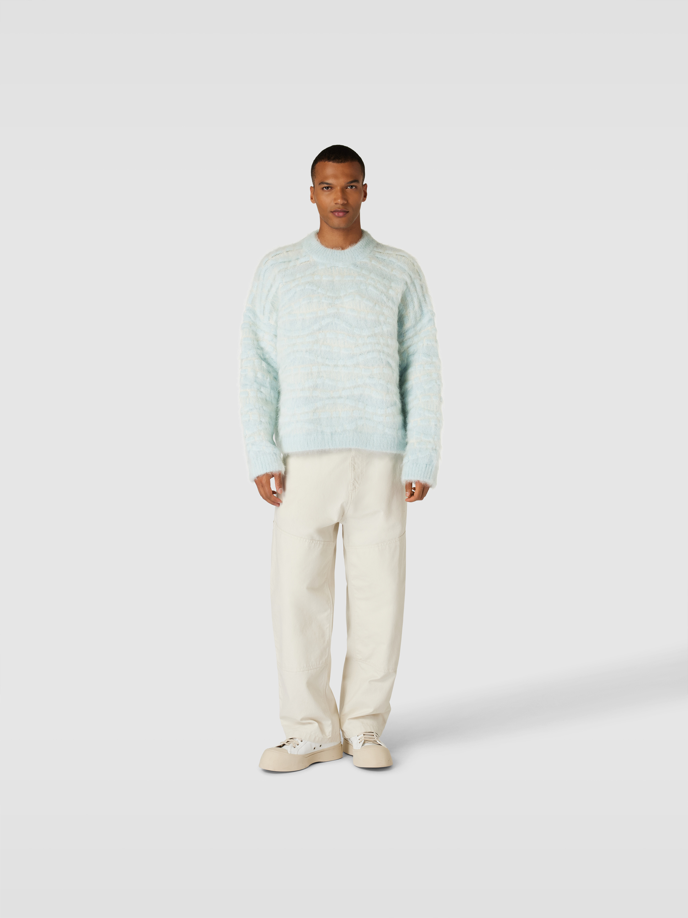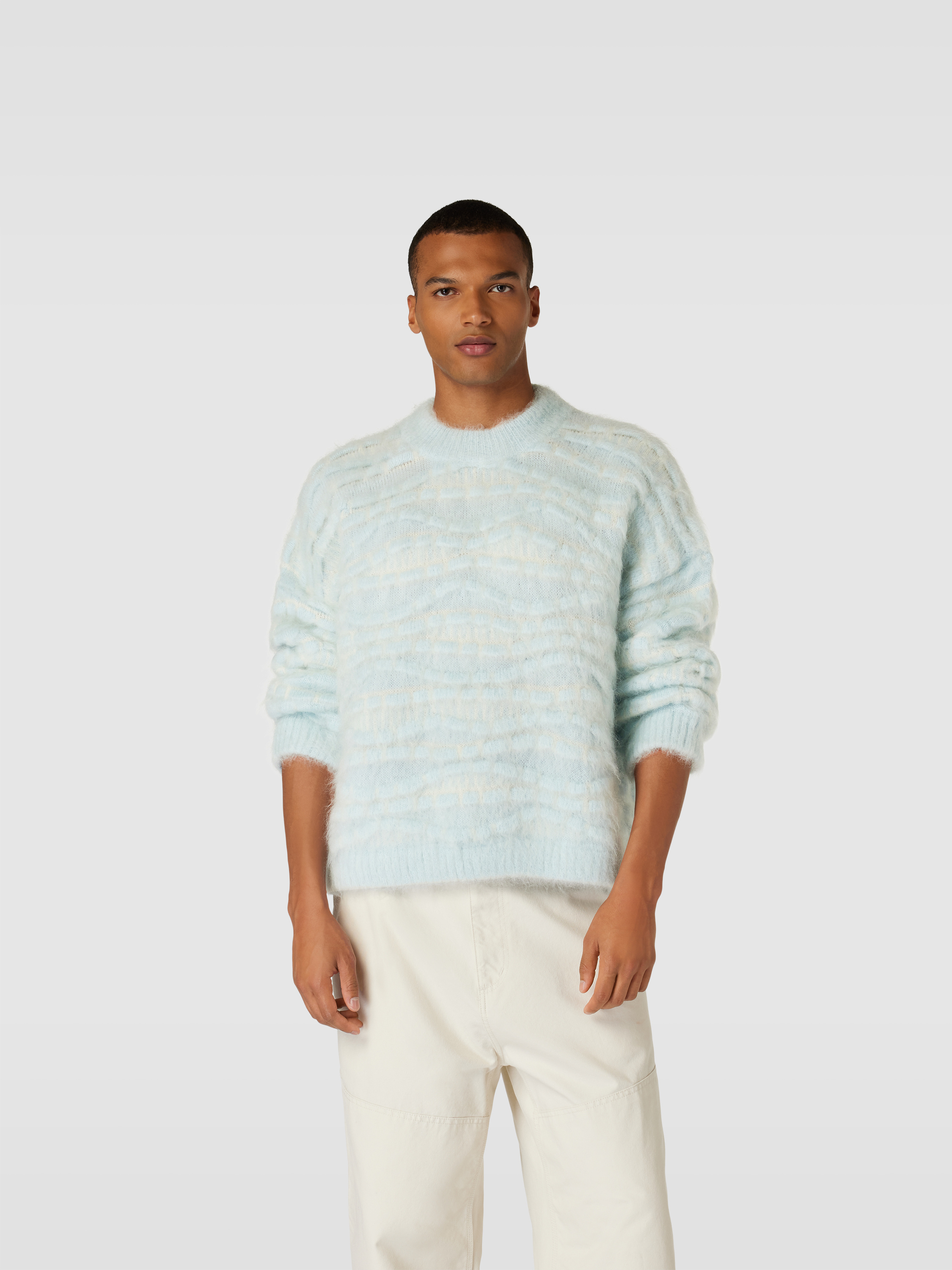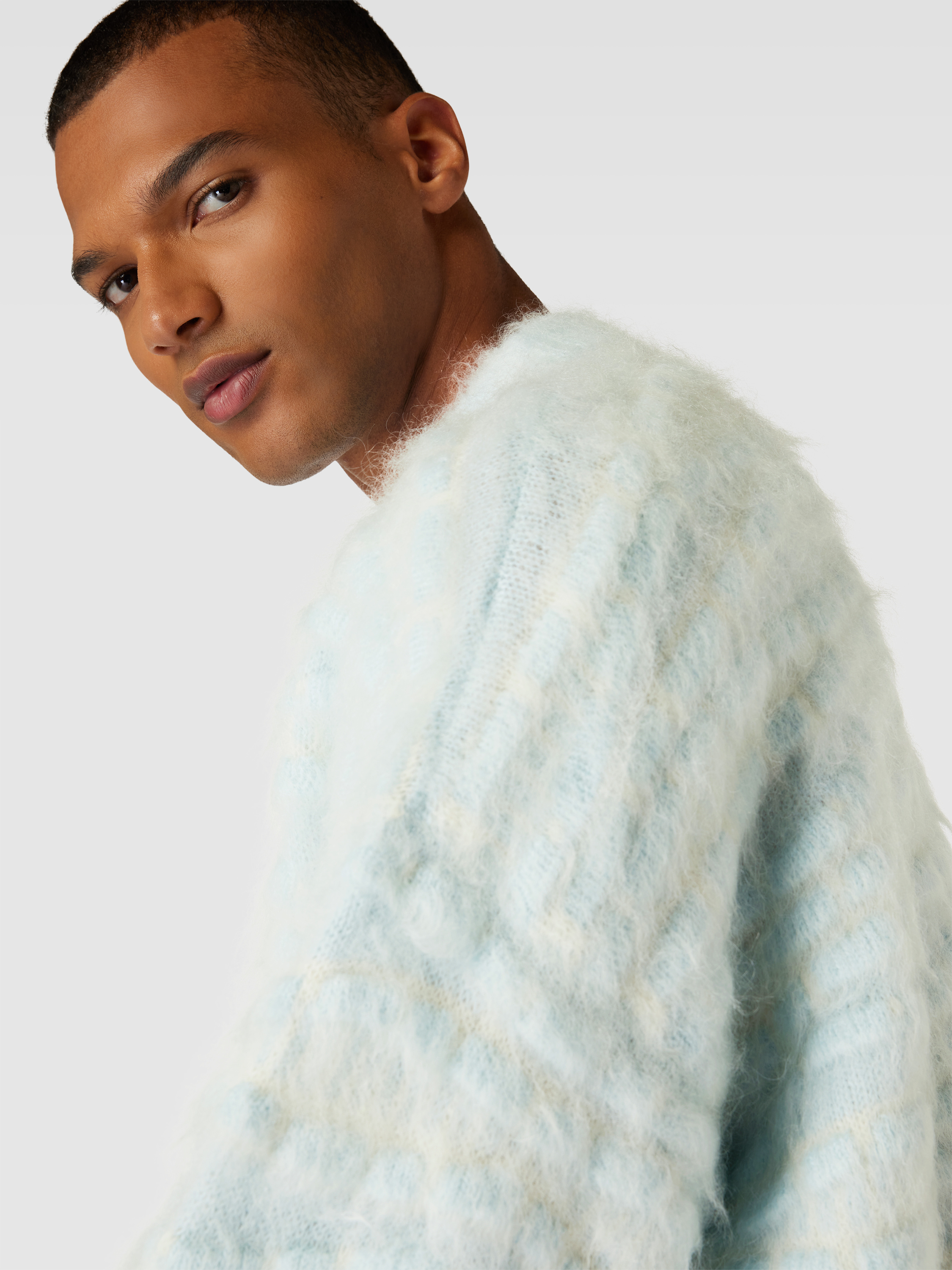 Der Herren Oversized Pullover von Bonsai fällt durch seinen Mohair-Woll-Mix angenehm weich aus und legt sich locker um den Körper. Mit Stehkragen und markanter Fell-Optik sorgt das Modell für eine entspannte Silhouette, während gerippte Abschlüsse den Look dezent abrunden.