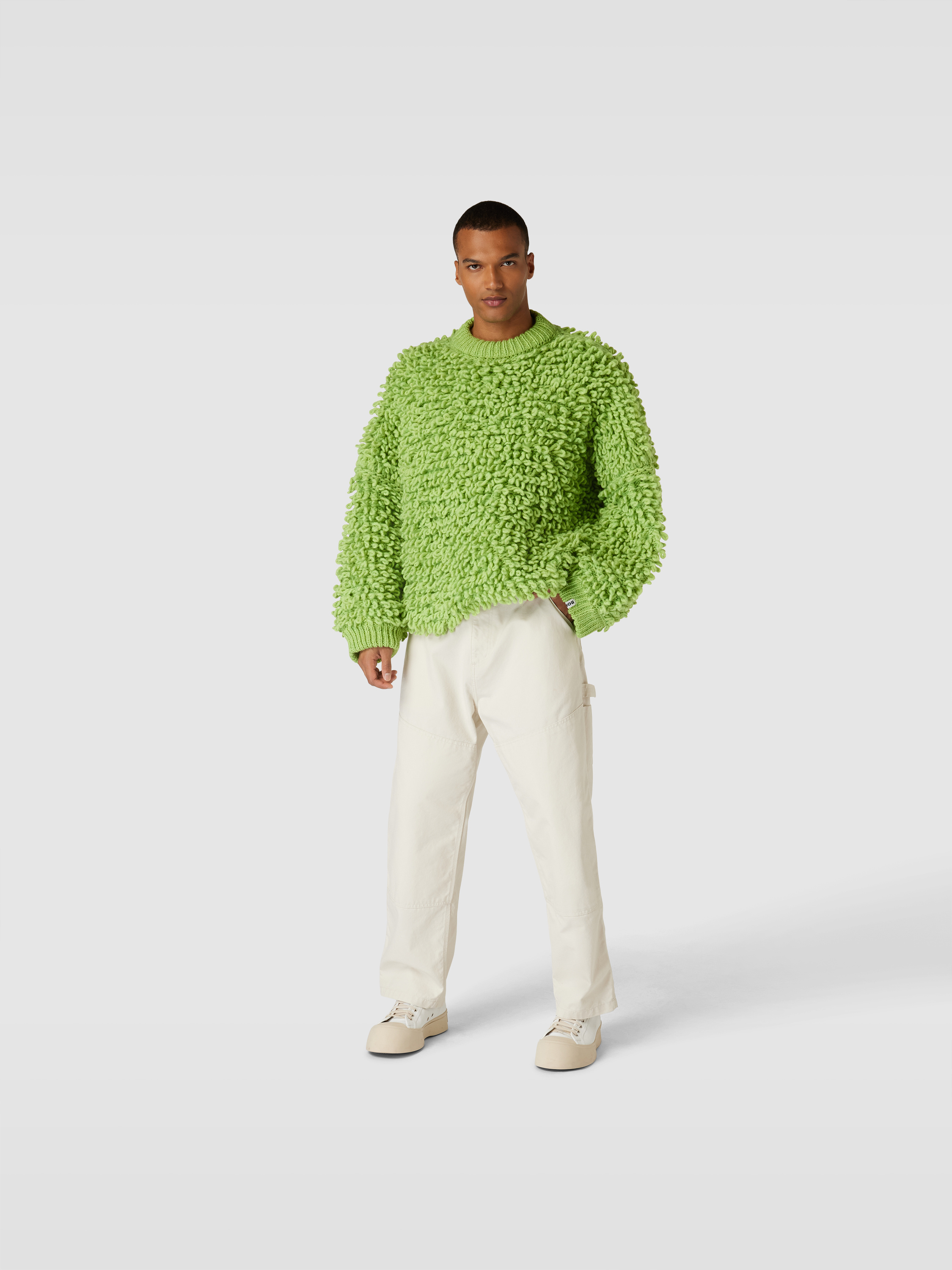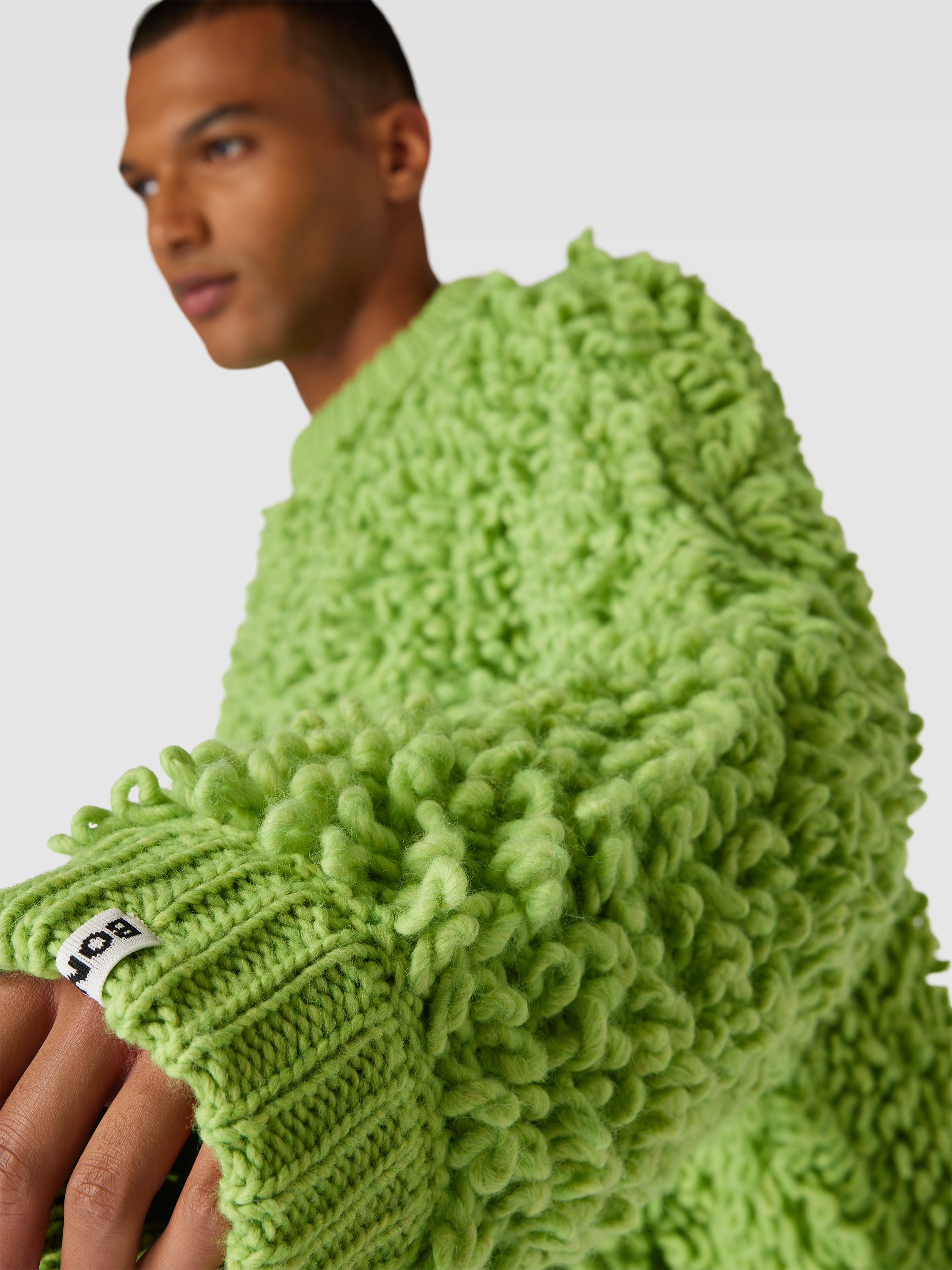 Der Herrenpullover von Bonsai im Oversized-Schnitt liegt durch den Woll-Mix angenehm auf der Haut und sorgt an kühleren Tagen für angenehme Wärme. Ein markantes Strukturmuster und ein Stehkragen setzen dezente Akzente, während gerippte Abschlüsse den entspannten Look abrunden.