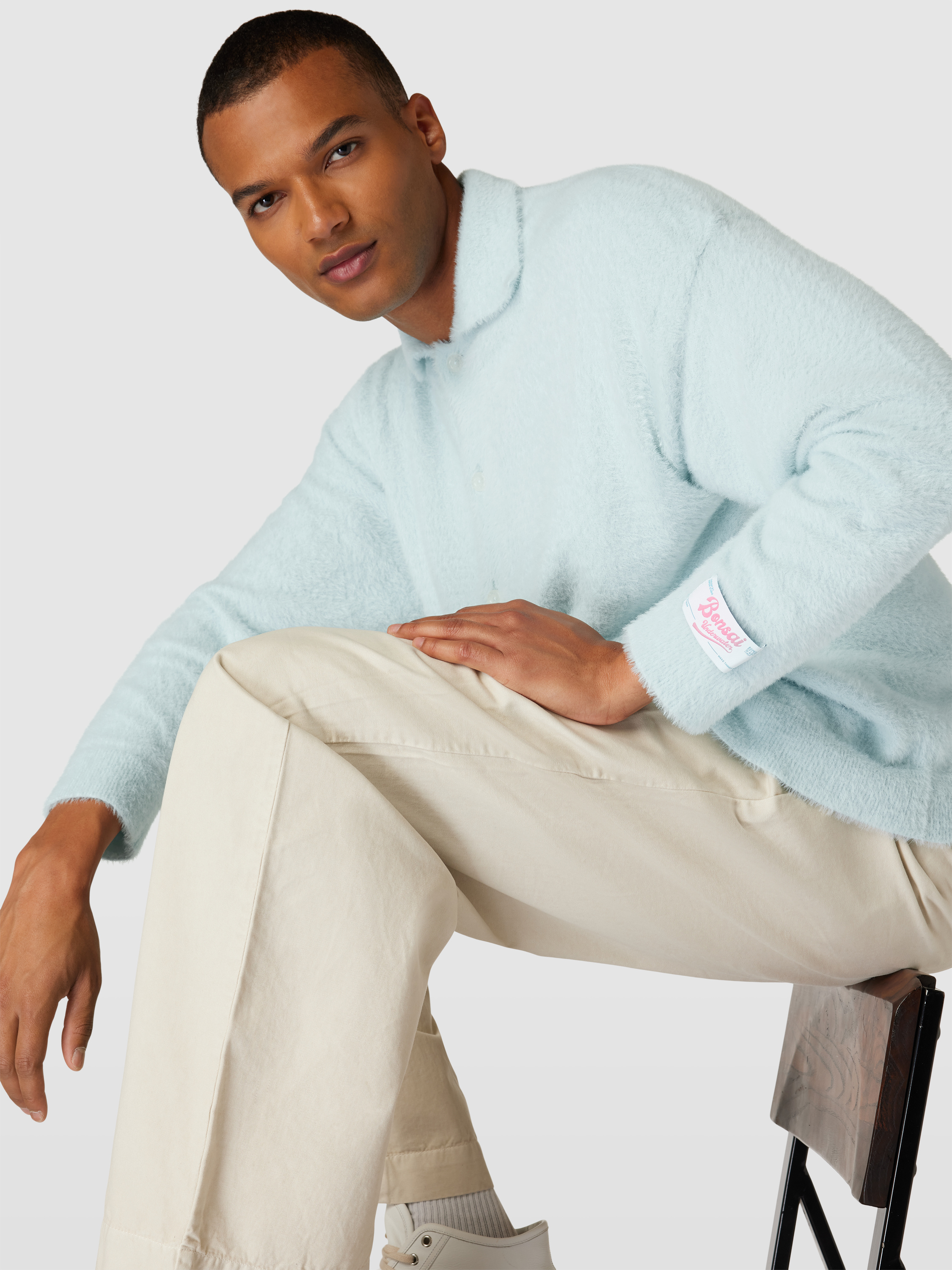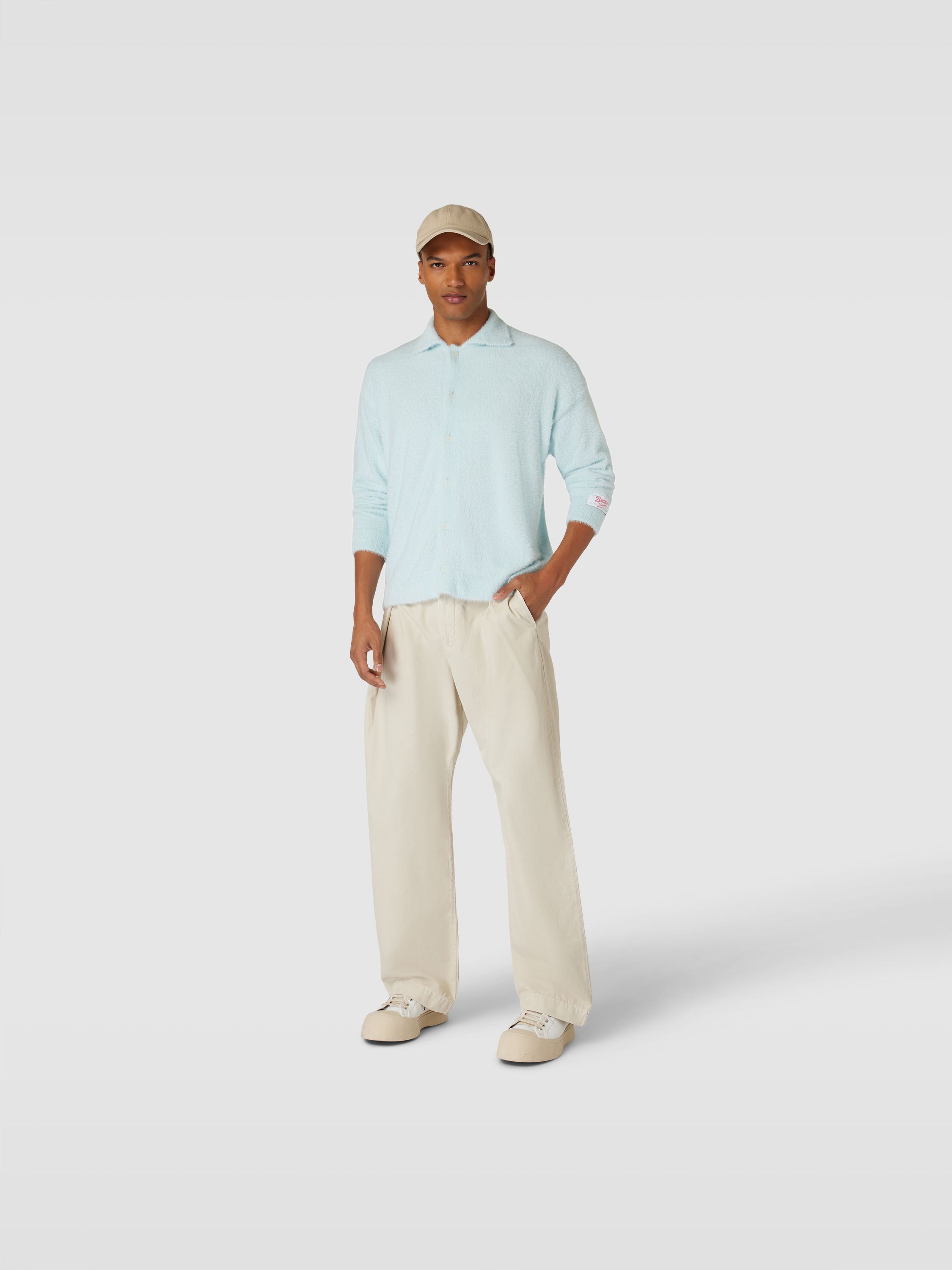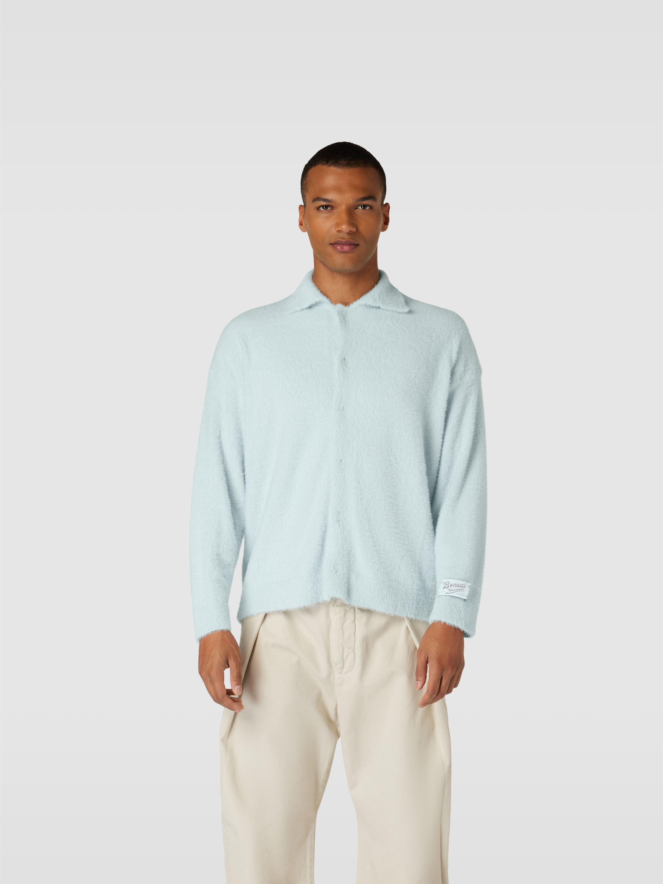 Die Herren Strickjacke von Bonsai fällt durch ihre lockere Passform und den markanten Haifischkragen auf, wodurch sie vielseitig kombinierbar bleibt. Durch die Teddyfell-Optik erhält das Outfit eine angenehme, weiche Note. Mit Knopfleiste und Label-Patch entsteht ein entspannter, moderner Look.